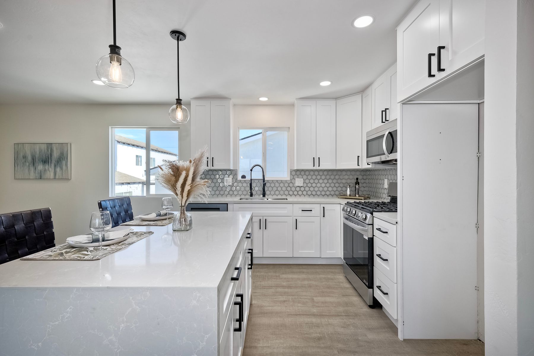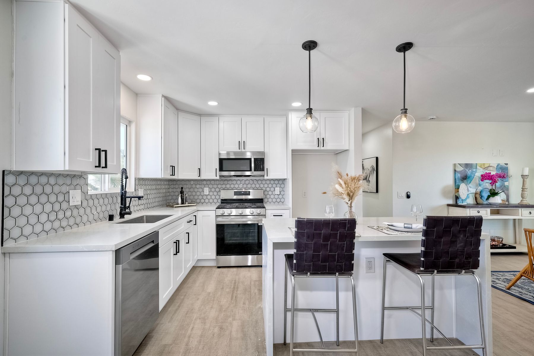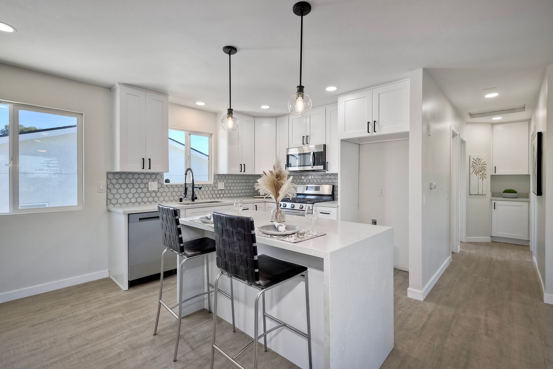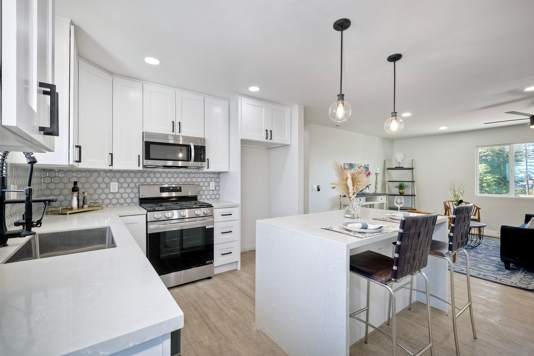 Welcome to this versatile and charming main house with brand new ADU! This unique home features two separate units, each with its own private yard space, making it ideal for multi-generational living, rental income, or extended family. Upstairs Main Unit: The spacious 2-bedroom, 2-bathroom upper unit boasts a great room perfect for entertaining. Large windows fill the space with natural light, creating an inviting atmosphere throughout. Downstairs unit: The brand new downstairs Accessory Dwelling Unit (ADU) offers 2 bedrooms and 1 bathroom, with a cozy living room, a full kitchen, and its own laundry closet. This self-contained space is perfect for guests, tenants, or family members seeking privacy. Fully permitted and inspected by the city of IB, this ADU is gorgeous! Additional features include a one-car garage (with laundry) and plenty of off-street parking for multiple vehicles. Each unit has its own dedicated outdoor patio space for lounging. Don't miss the opportunity to own this incredible property with "dual living spaces"—a rare find in a desirable location!