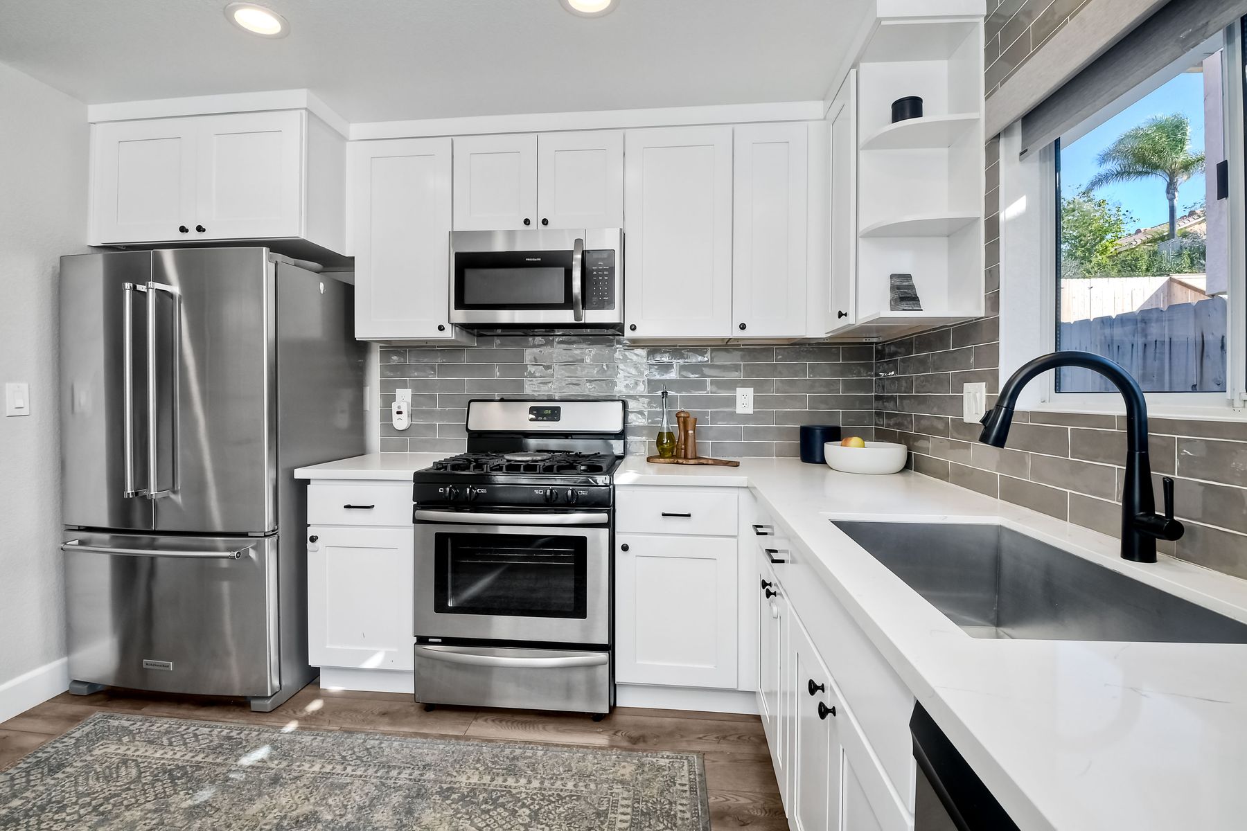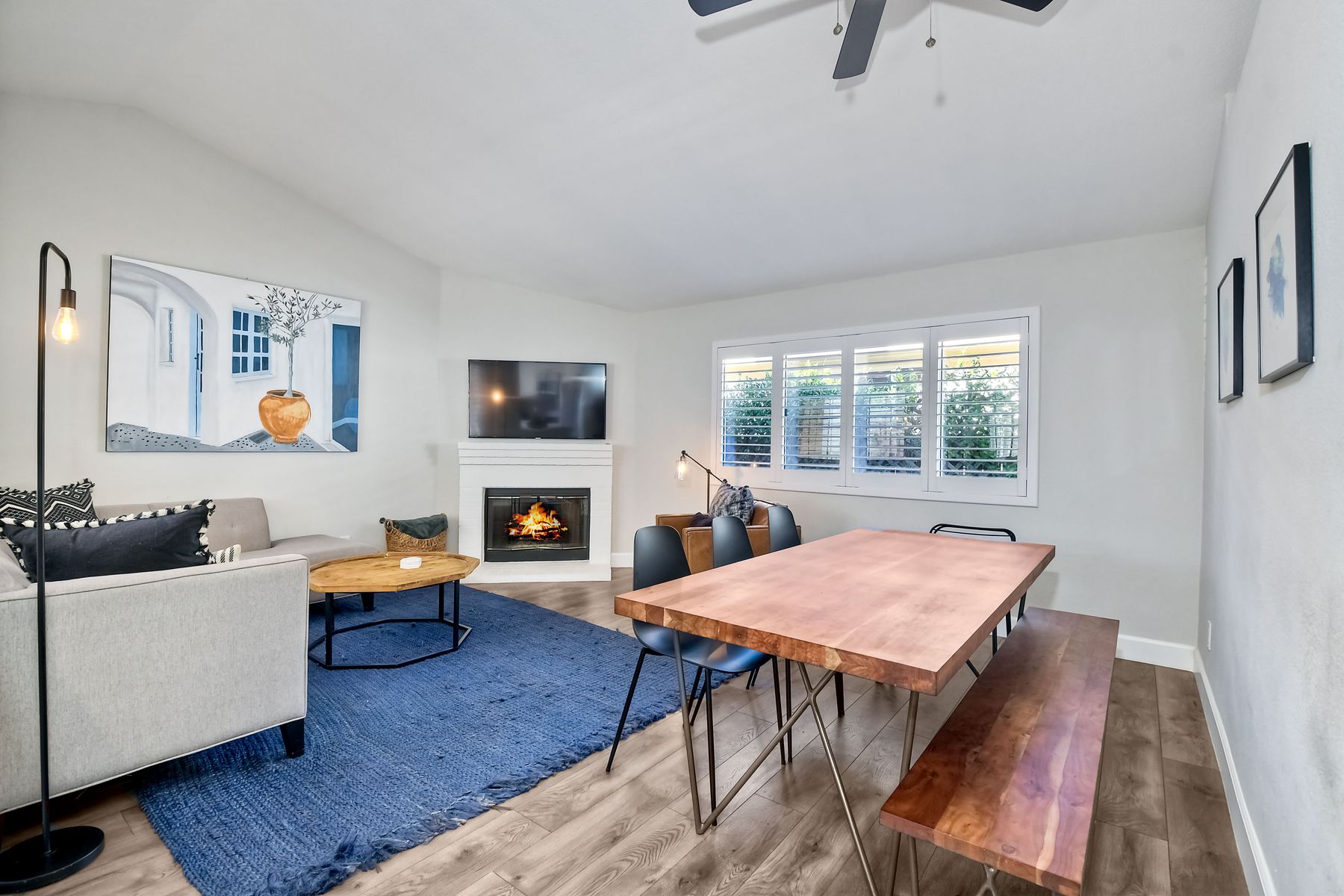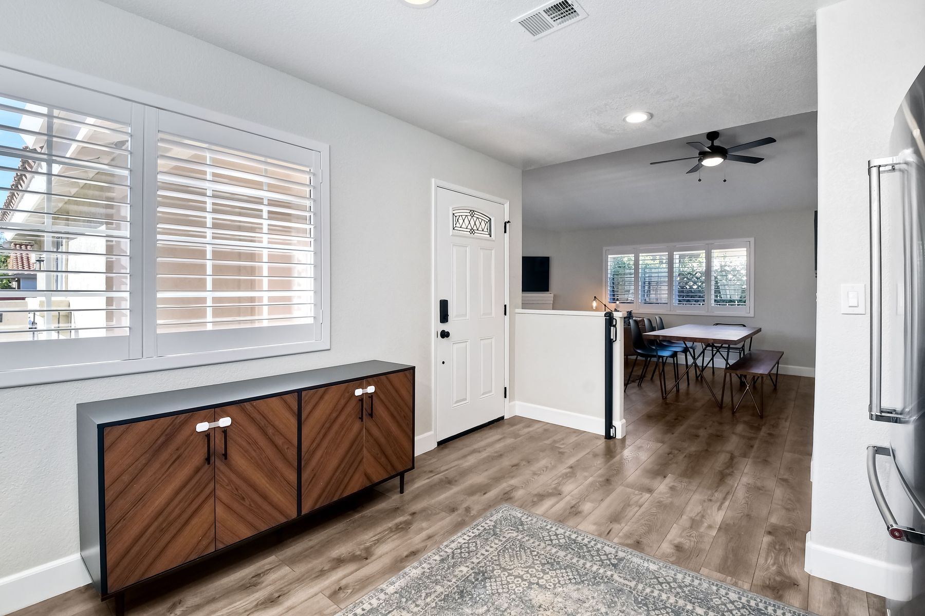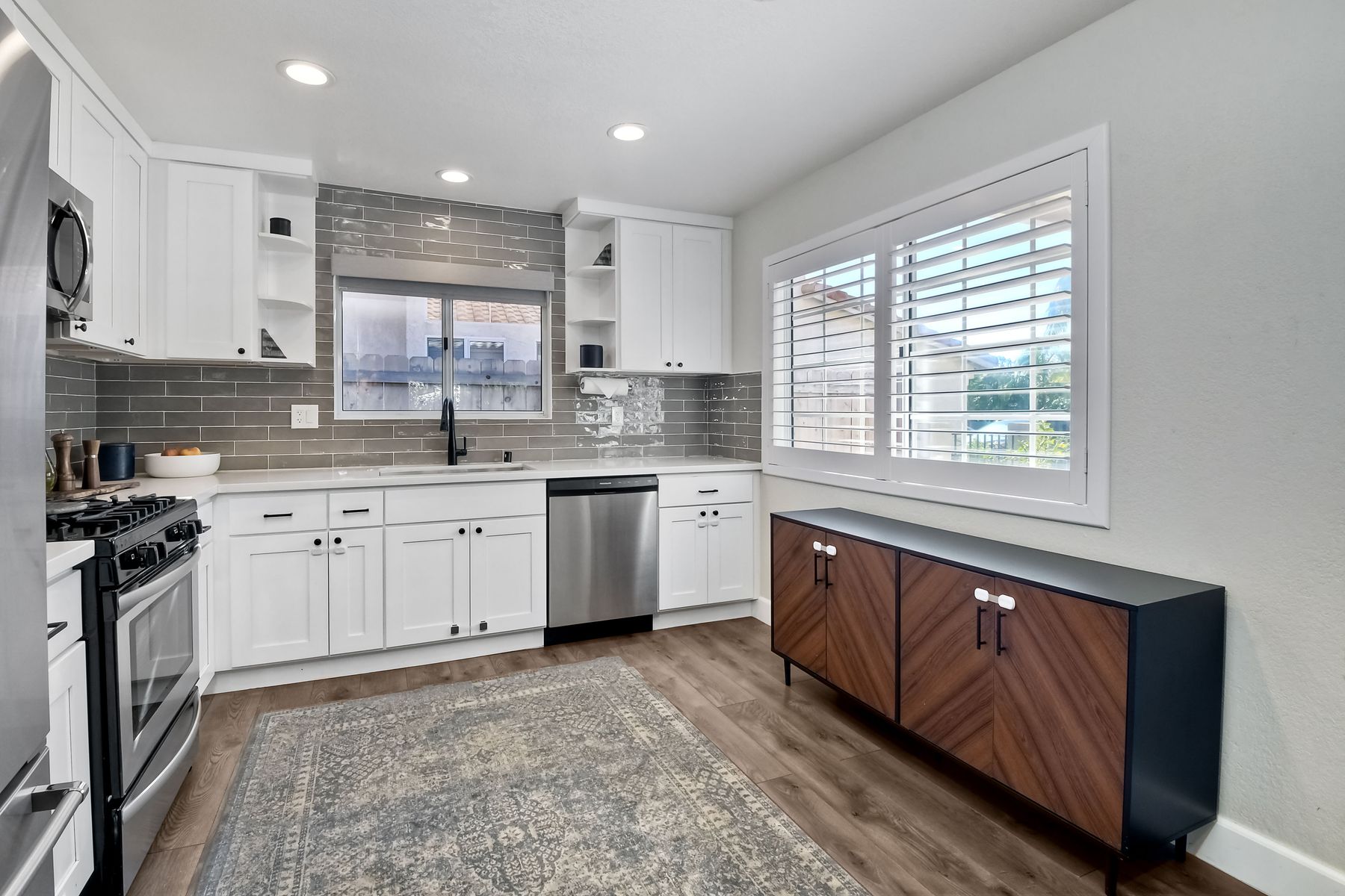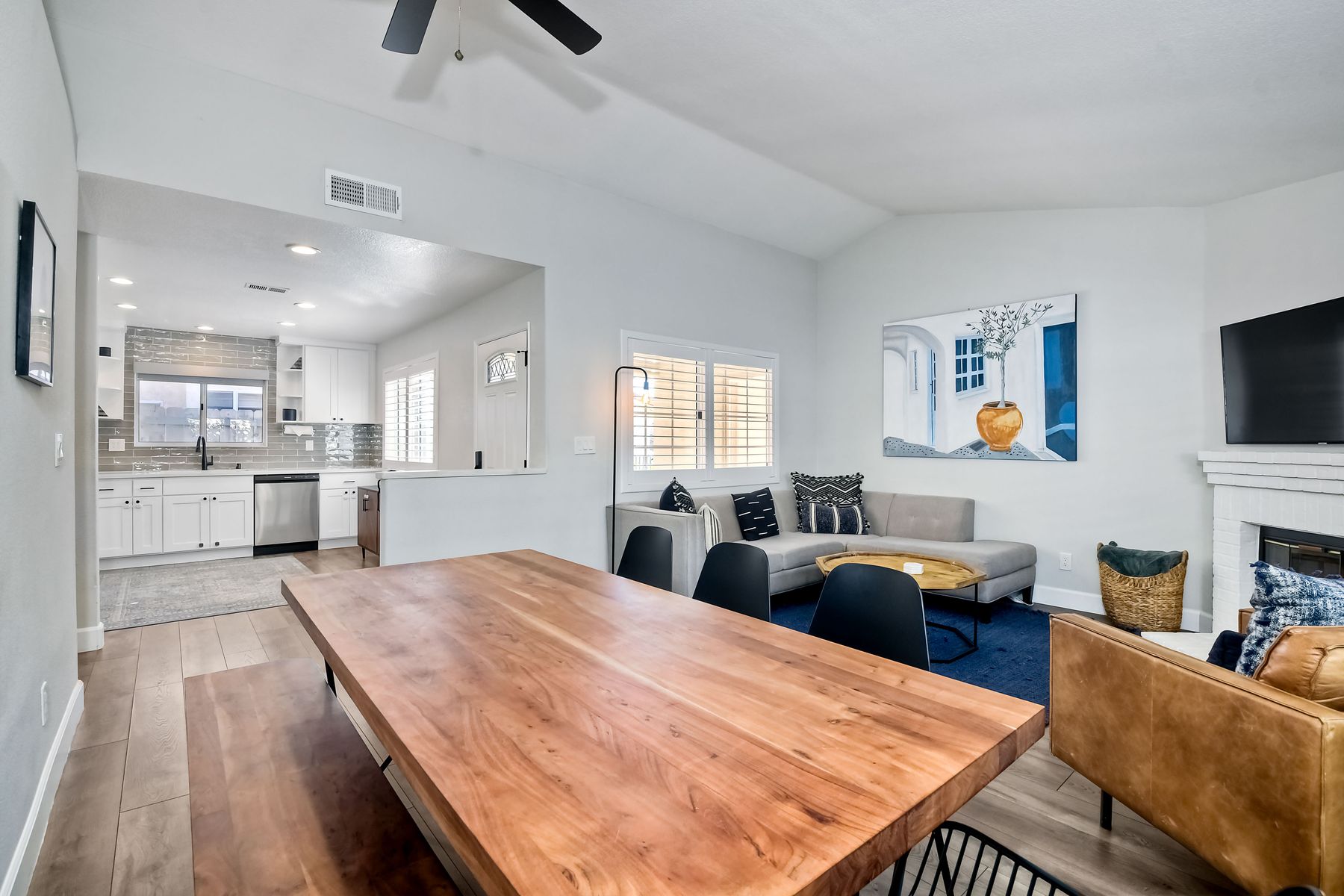 A must see single story home! Come see this meticulously maintained, recently upgraded, light and bright, home in the highly desired Santa Fe Hills community! You'll enjoy cooking in this designer kitchen with beautiful quartz countertops, tile backsplash, white shaker cabinets with the soft close feature, and stainless steel appliances. Cuddle up by the fireplace in the family room on cool evenings. Heading to the primary suite, enjoy the tastefully remodeled bathroom that enjoys dual vanities gorgeous shower and soaking bathtub, all with soothing trendy finishes. The generous primary suite enjoys dual closets with organizers, ceiling fan and access to the beautiful backyard. Enjoy a glass of wine on either the front or rear patios with the recently installed pavers. Have a mini garden in the raised area in the private backyard. The secondary bedroom is generous, has a closet organizer and ceiling fan. Your family and guests will enjoy the hall bathroom that is fresh and trendy. Enjoy our San Diego sun and keep your privacy with the nearly new split shutters! This home is MOVE IN READY! Both the front yard and the backyard have irrigation for efficiency and ease of maintenance. The entire family can enjoy the nearby Cerro Las Posas Park which features an aquatic facility, sports fields, tennis courts and playgrounds with NO HOA fees! As you visit the neighborhood enjoy the mature tree covered pathways and great trails in the beautiful community of Santa Fe Hills.