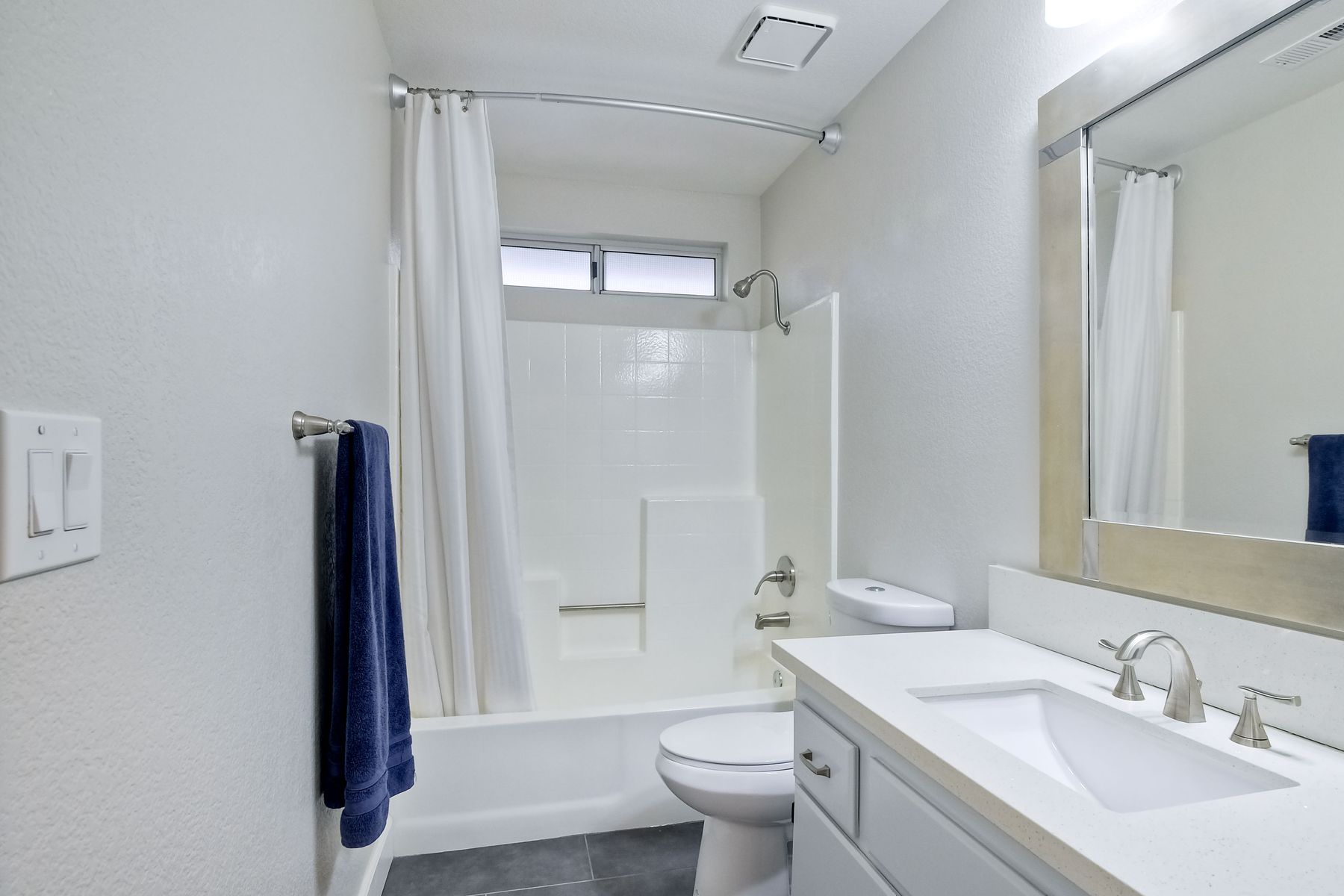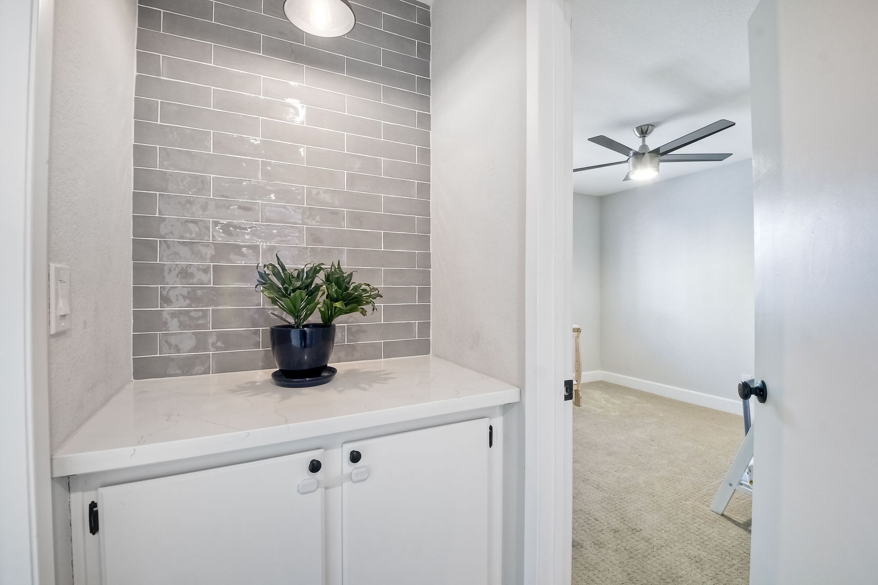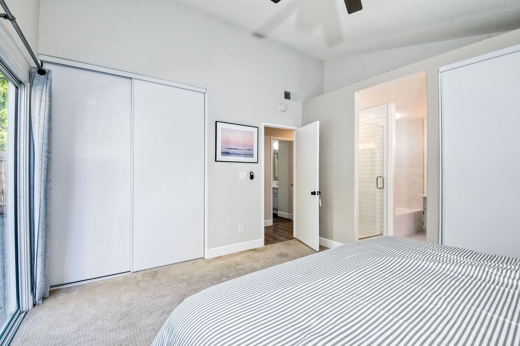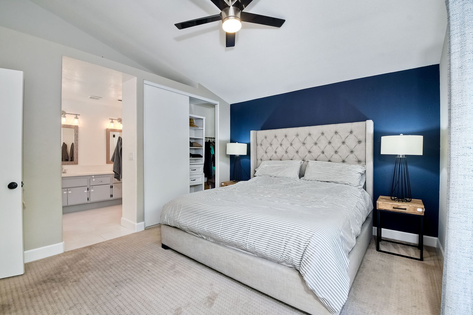 A must see single story home! Come see this meticulously maintained, recently upgraded, light and bright, home in the highly desired Santa Fe Hills community! You'll enjoy cooking in this designer kitchen with beautiful quartz countertops, tile backsplash, white shaker cabinets with the soft close feature, and stainless steel appliances. Cuddle up by the fireplace in the family room on cool evenings. Heading to the primary suite, enjoy the tastefully remodeled bathroom that enjoys dual vanities gorgeous shower and soaking bathtub, all with soothing trendy finishes. The generous primary suite enjoys dual closets with organizers, ceiling fan and access to the beautiful backyard. Enjoy a glass of wine on either the front or rear patios with the recently installed pavers. Have a mini garden in the raised area in the private backyard. The secondary bedroom is generous, has a closet organizer and ceiling fan. Your family and guests will enjoy the hall bathroom that is fresh and trendy. Enjoy our San Diego sun and keep your privacy with the nearly new split shutters! This home is MOVE IN READY! Both the front yard and the backyard have irrigation for efficiency and ease of maintenance. The entire family can enjoy the nearby Cerro Las Posas Park which features an aquatic facility, sports fields, tennis courts and playgrounds with NO HOA fees! As you visit the neighborhood enjoy the mature tree covered pathways and great trails in the beautiful community of Santa Fe Hills.