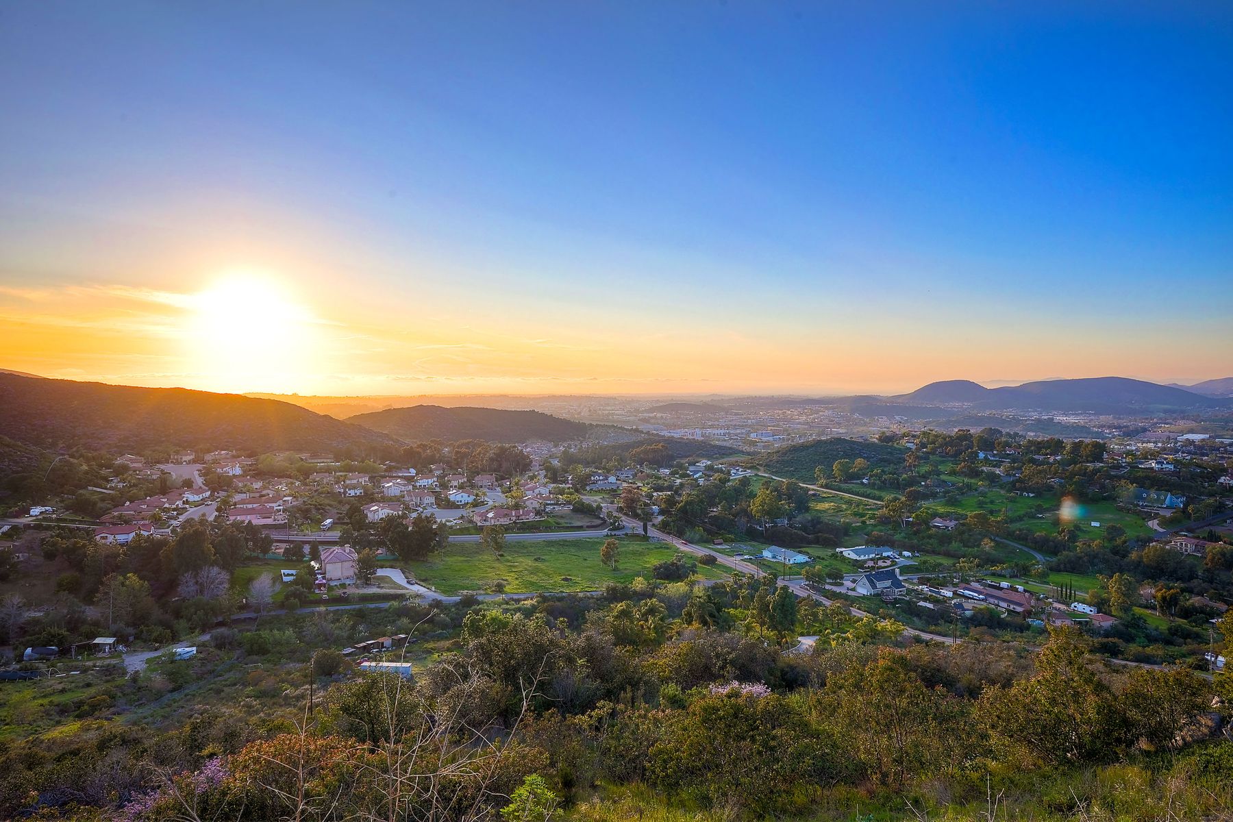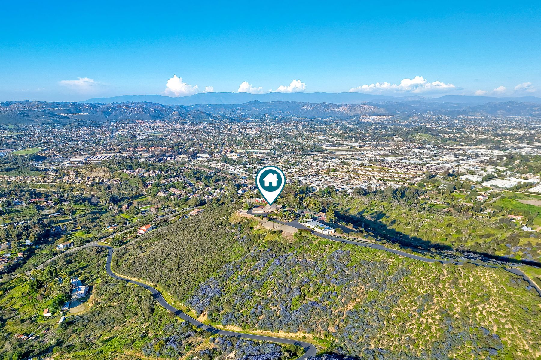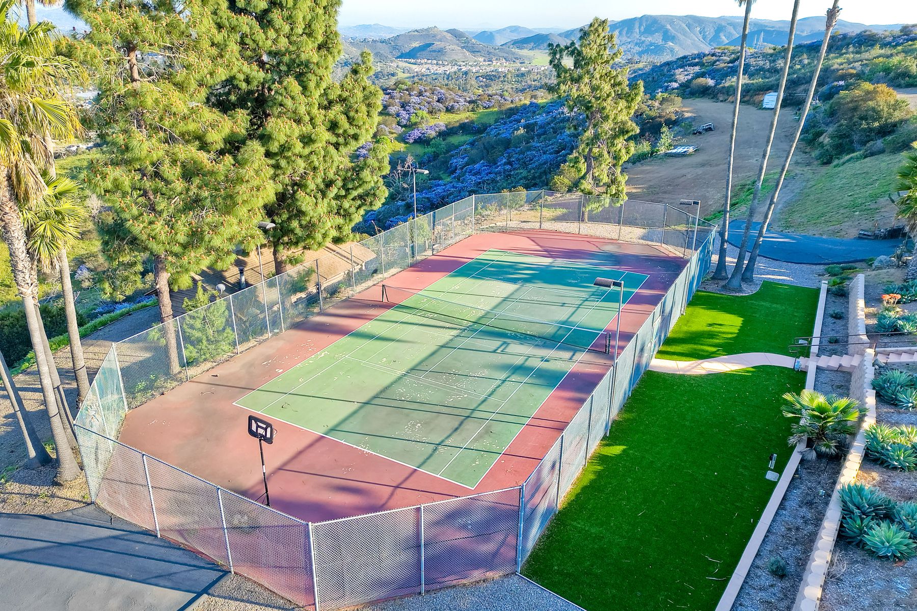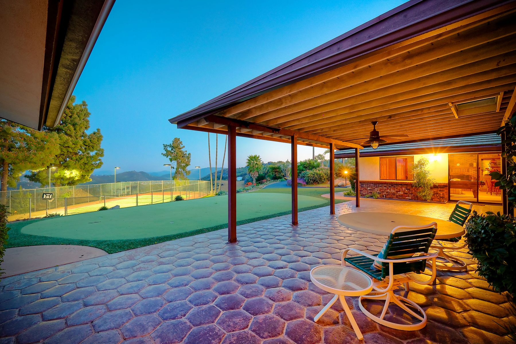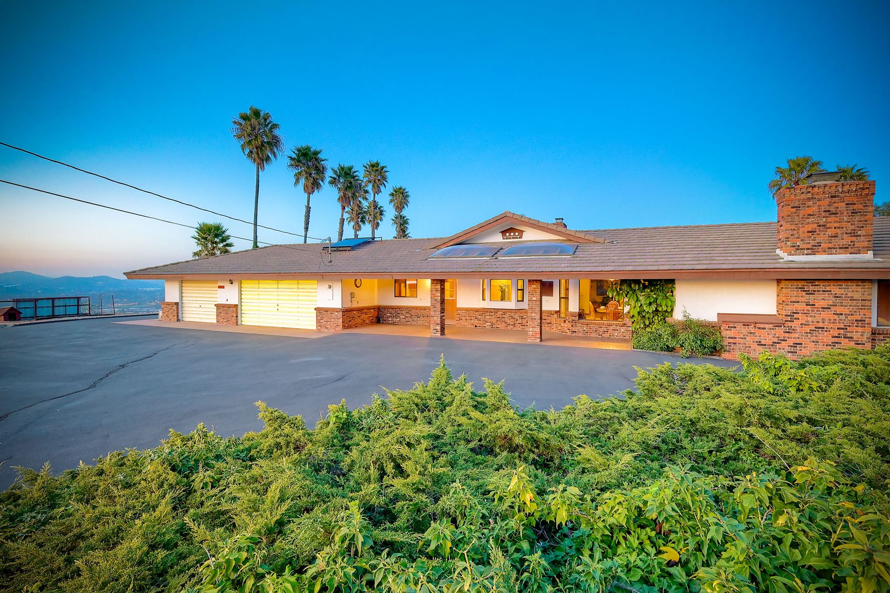 HELICOPTER VIEWS! Magnificent views of North San Diego county. City lights to the ocean! Unique multi-parcel property with ranch style home. Large living/dining/game rooms for entertaining. Multi-car, roll-up door workshop. Lighted tennis court and practice putting green. Property has accommodated guests, parties, weddings, hobbies and more. Gated entry. Freeway close to Hwy. 78, I-15 (San Diego, San Marcos, Escondido). Convenient to Cal State San Marcos and Palomar Hospital. Beautiful sunset views. Lots of possibilities!