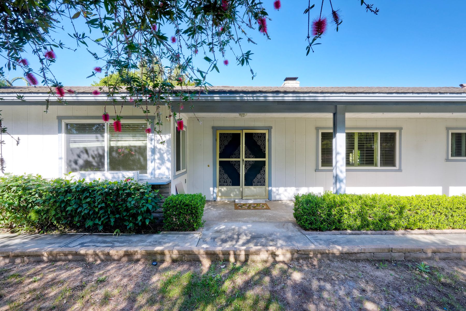 Welcome to this exceptional single story ranch home situated on a prime corner lot spanning over 15,000 square feet in the highly sought after Jeffries Ranch community. This unique property offers a rare blend of space, charm, and versatility, featuring a private grove with an impressive variety of fruit trees including citrus, fig, pomegranate, apple, peach guava and oriental pear- your own backyard orchard. There is plenty of room for an ADU as well. Inside, the home offers comfortable living with central A/C, brand new carpet and tile flooring throughout, and a cozy dual-sided fireplace that seamlessly connects the living and family rooms, creating a warm and inviting atmosphere. A sunroom addition provides the perfect space to relax, entertain, or enjoy year-round indoor-outdoor living. Equestrian friendly and zoned for horses, the neighborhood features scenic horse trails throughout, making it ideal for those seeking a rural feel with suburban convenience. Located near Mission Meadows Elementary School and Mission Vista High School and just minutes from Guajome Lake Park with its walking trails and natural beauty. Enjoy easy access to Interstate 5 and 15, and take advantage of the ideal coastal climate. Approximately 8 miles from the ocean with refreshing breezes year round. No HOA adds to the appeal and flexibility of this incredible property. Don't miss this opportunity to own a slice of country living in one of North County's most desirable neighborhoods.