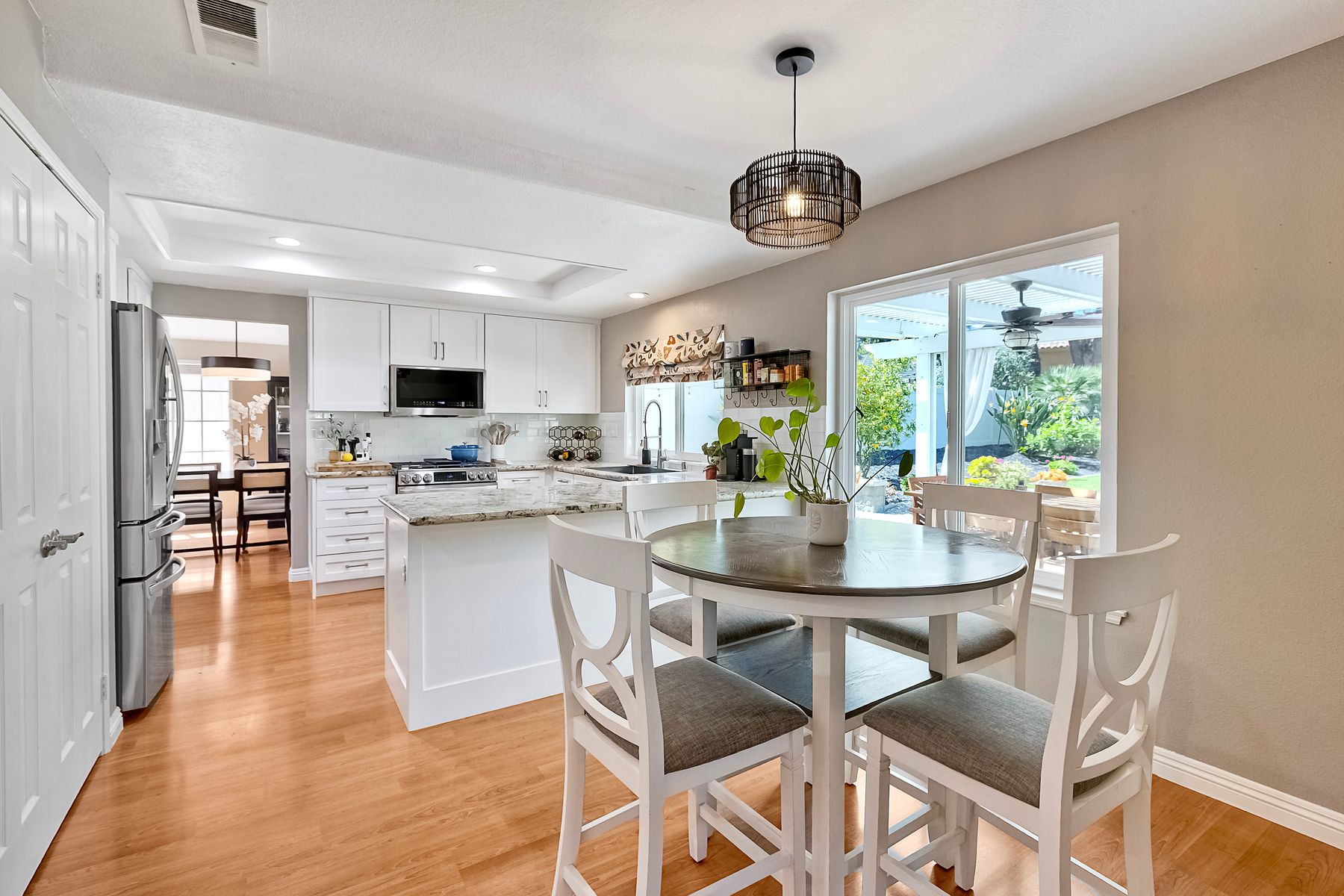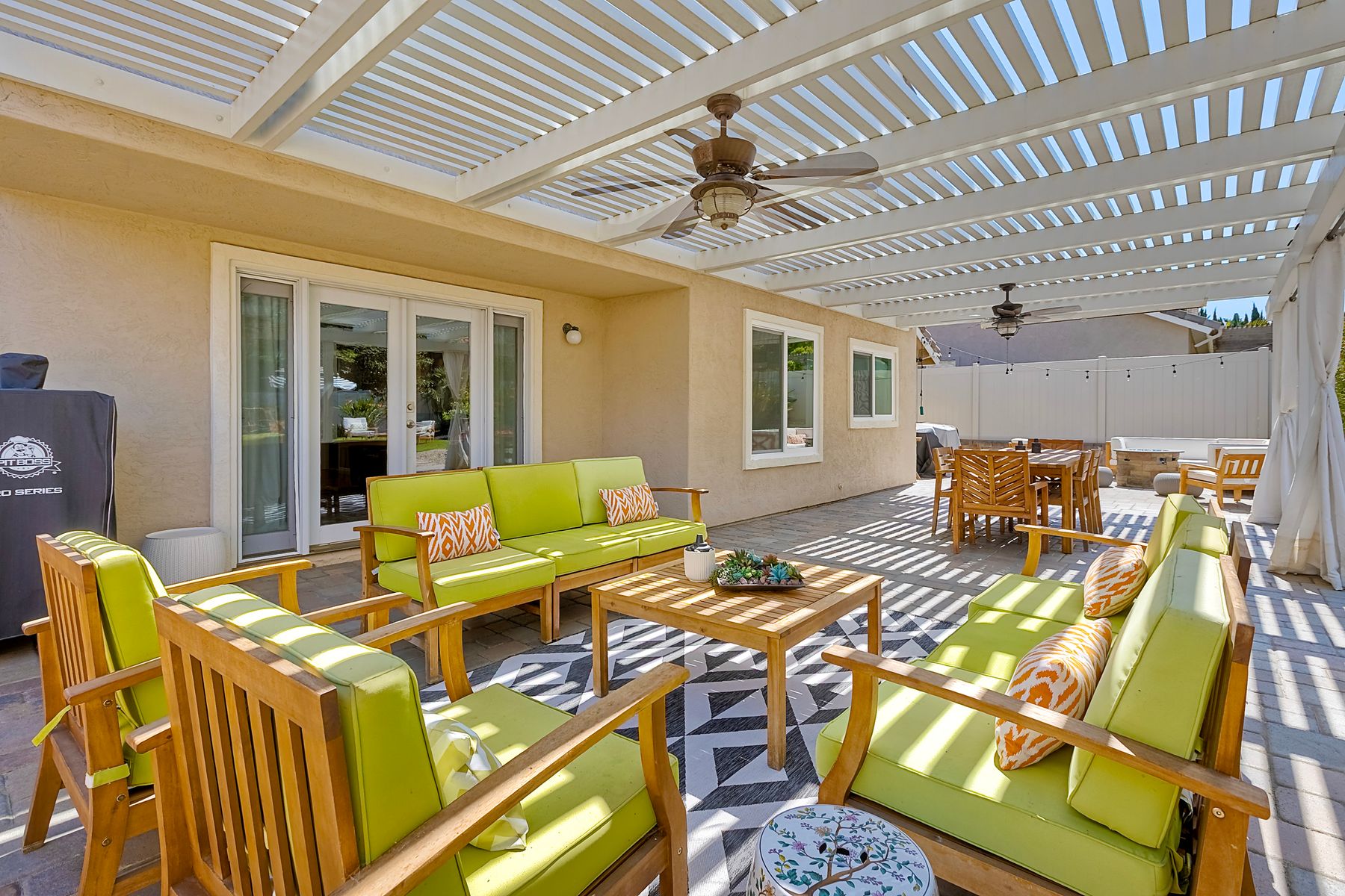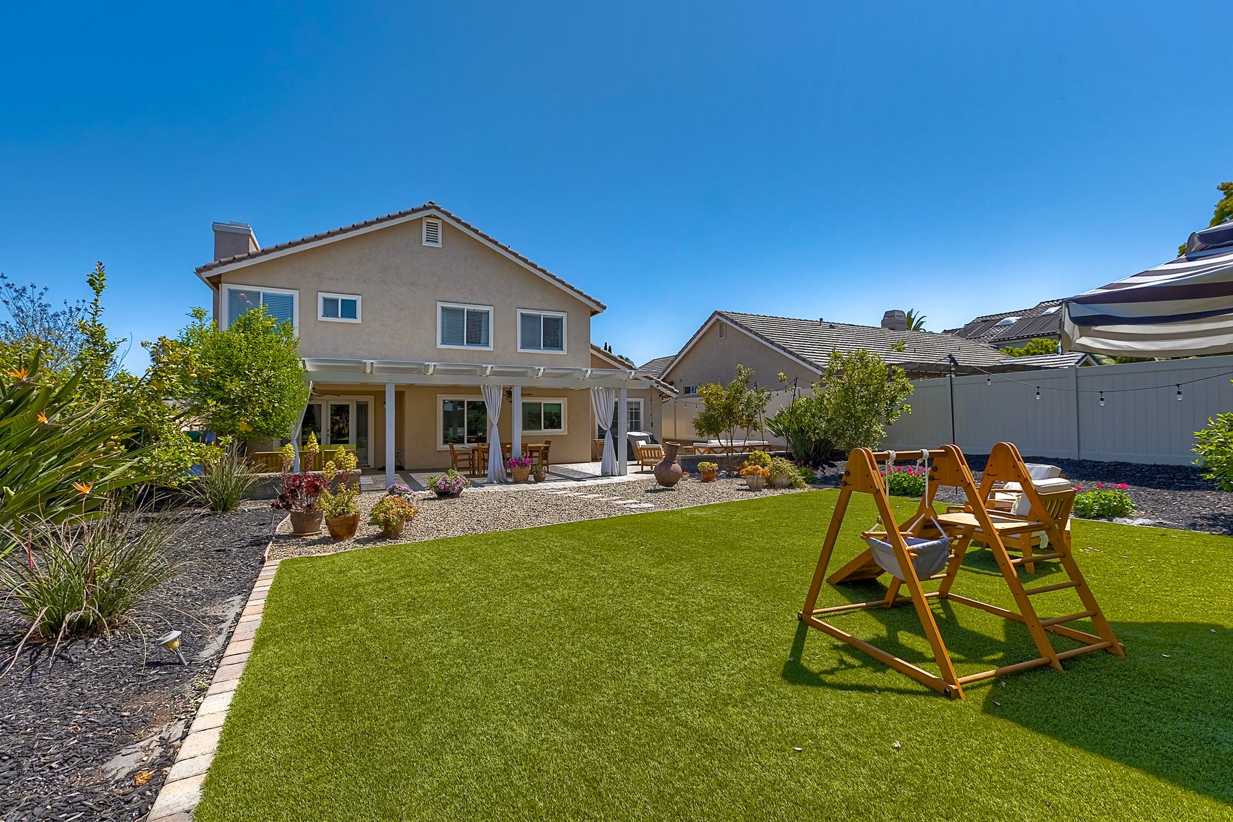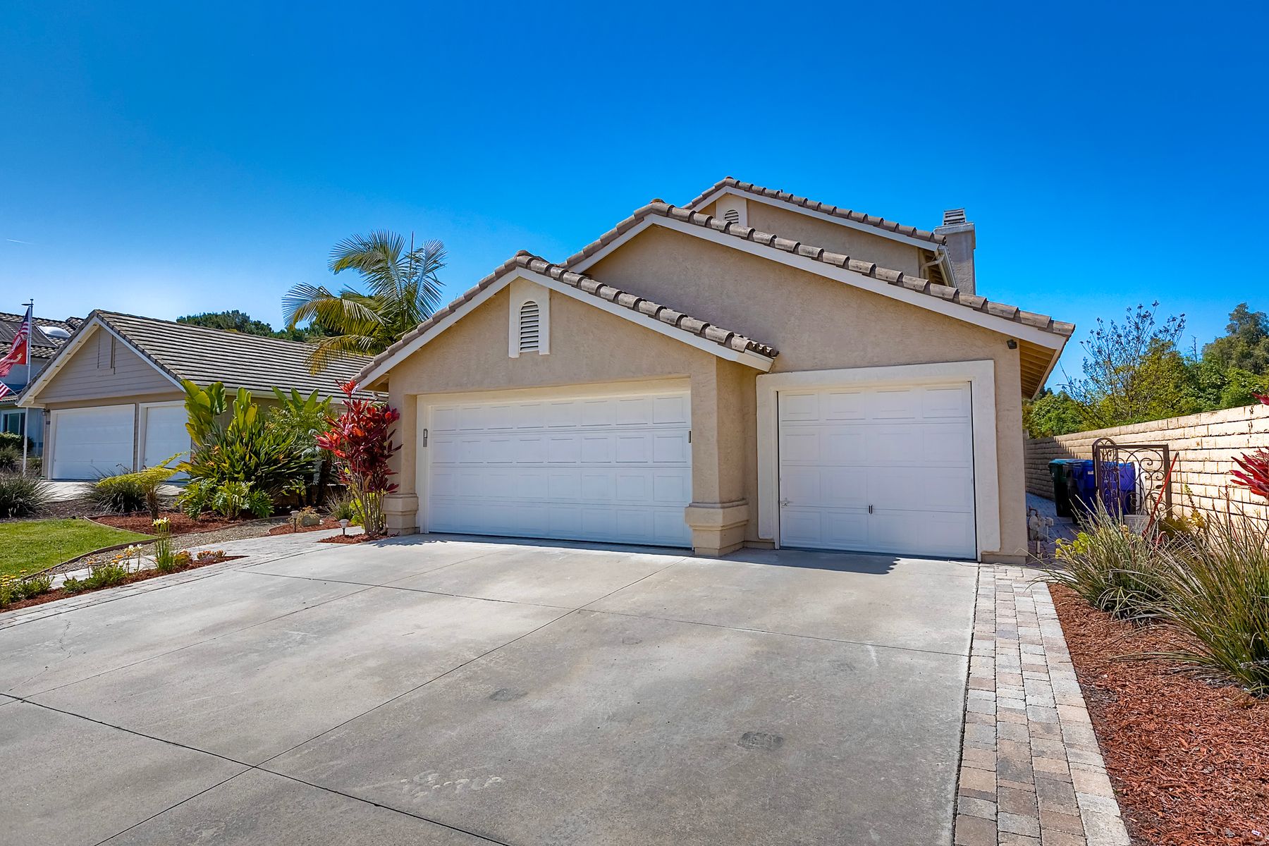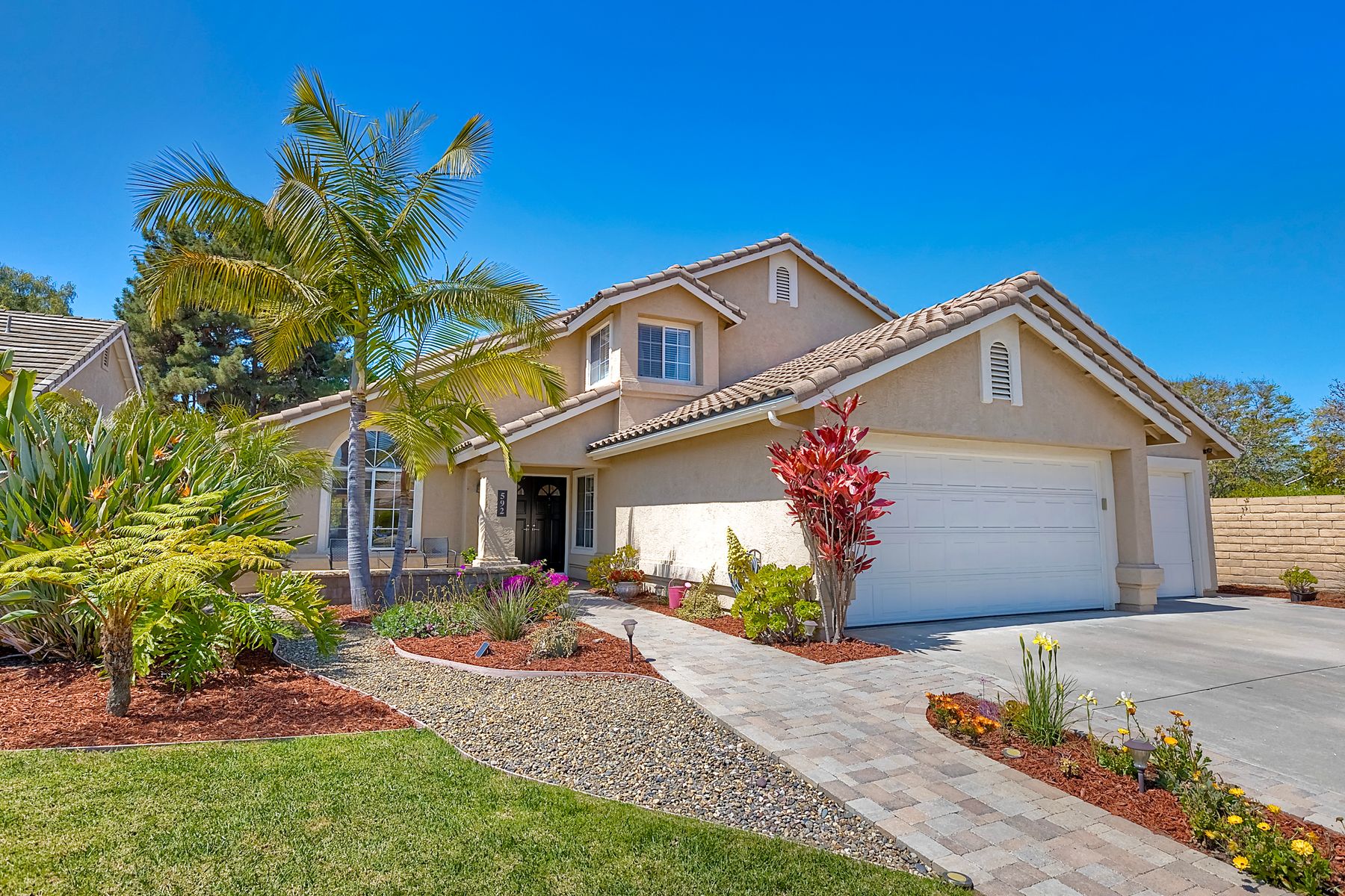 Welcome to Guajome Meadows! This sought-after neighborhood is home to this stunning two-story residence that exemplifies pride of ownership. With a recently replaced roof, this turnkey home features numerous upgrades throughout. Step inside to discover a spacious master bedroom that flows seamlessly into a luxurious master bathroom, complete with a walk-in shower and a freestanding soaking tub- perfect for relaxation. Upstairs, you'll find two additional bedrooms sharing a convenient Jack and Jill bathroom, while a fourth bedroom and full bath are located on the main level, offering flexibility for guests or family. Situated on an expansive nearly 11,000 sq ft flat lot, this property boasts a variety of delightful fruit trees, including lemon, lime, pink lemonade, and kumquat, enhancing the outdoor space. Enjoy evenings by the fire pit or entertain guests under the covered patio- this home truly provides additional living space for your enjoyment. The property is near major highways, close to golf courses, shopping and restaurants and only 8 miles to the ocean. Walk to Guajome Park or hop on the bike path up the street that leads to the beach. Don't miss the opportunity to call this beautiful property your home!