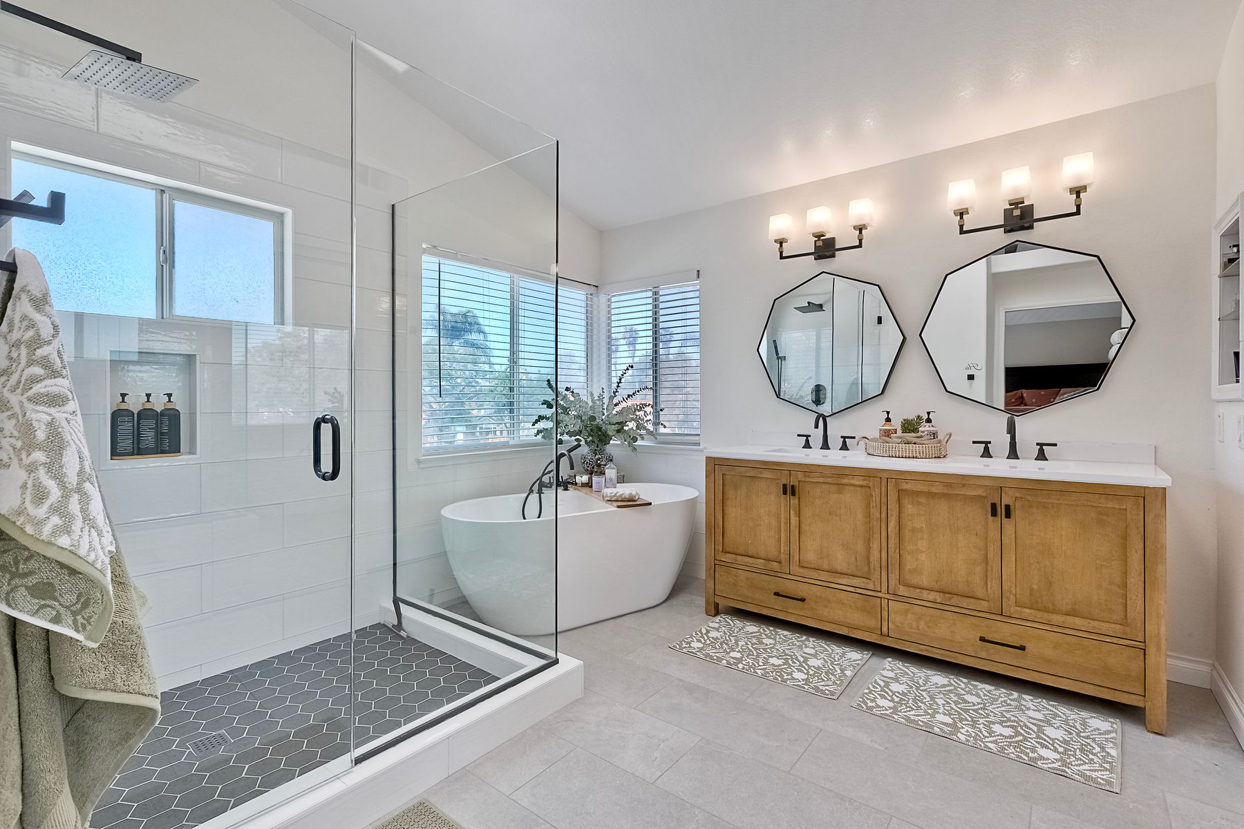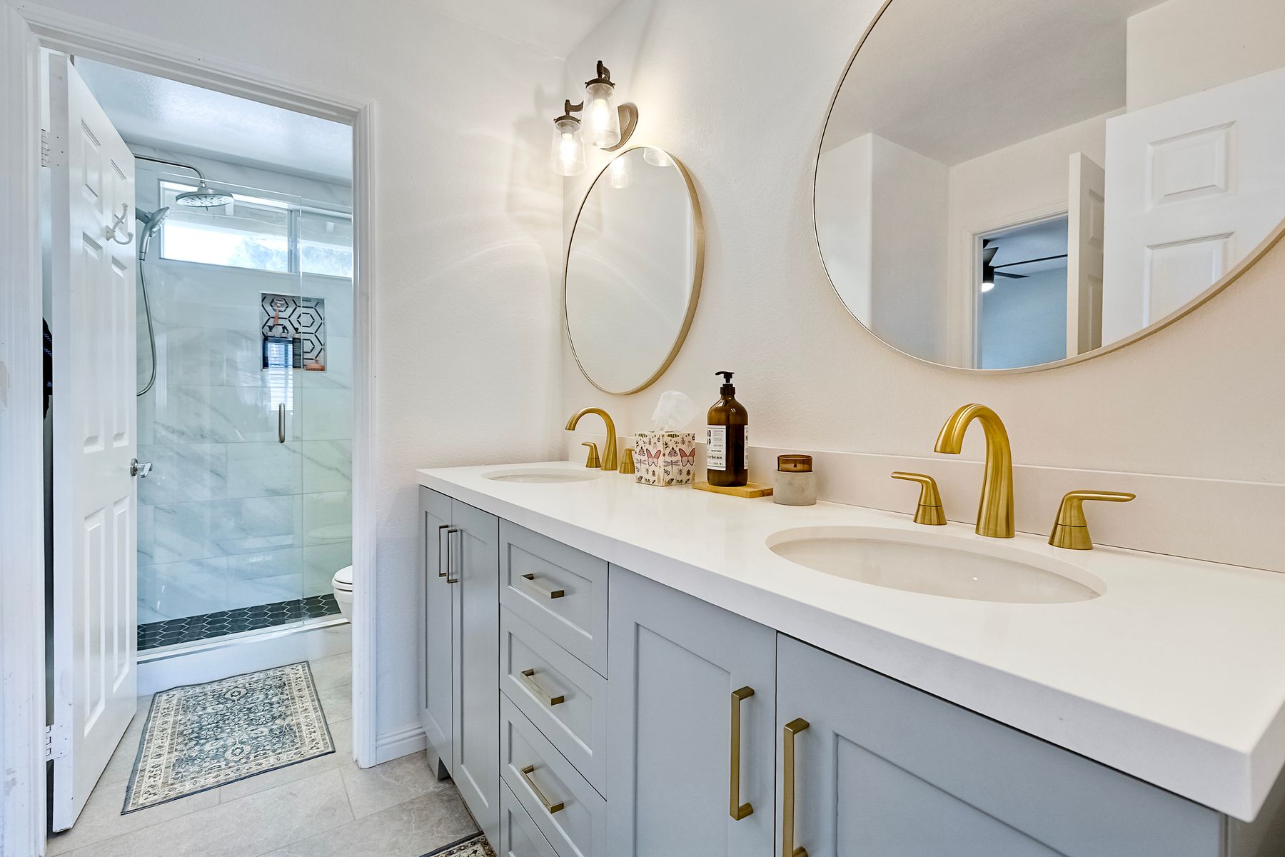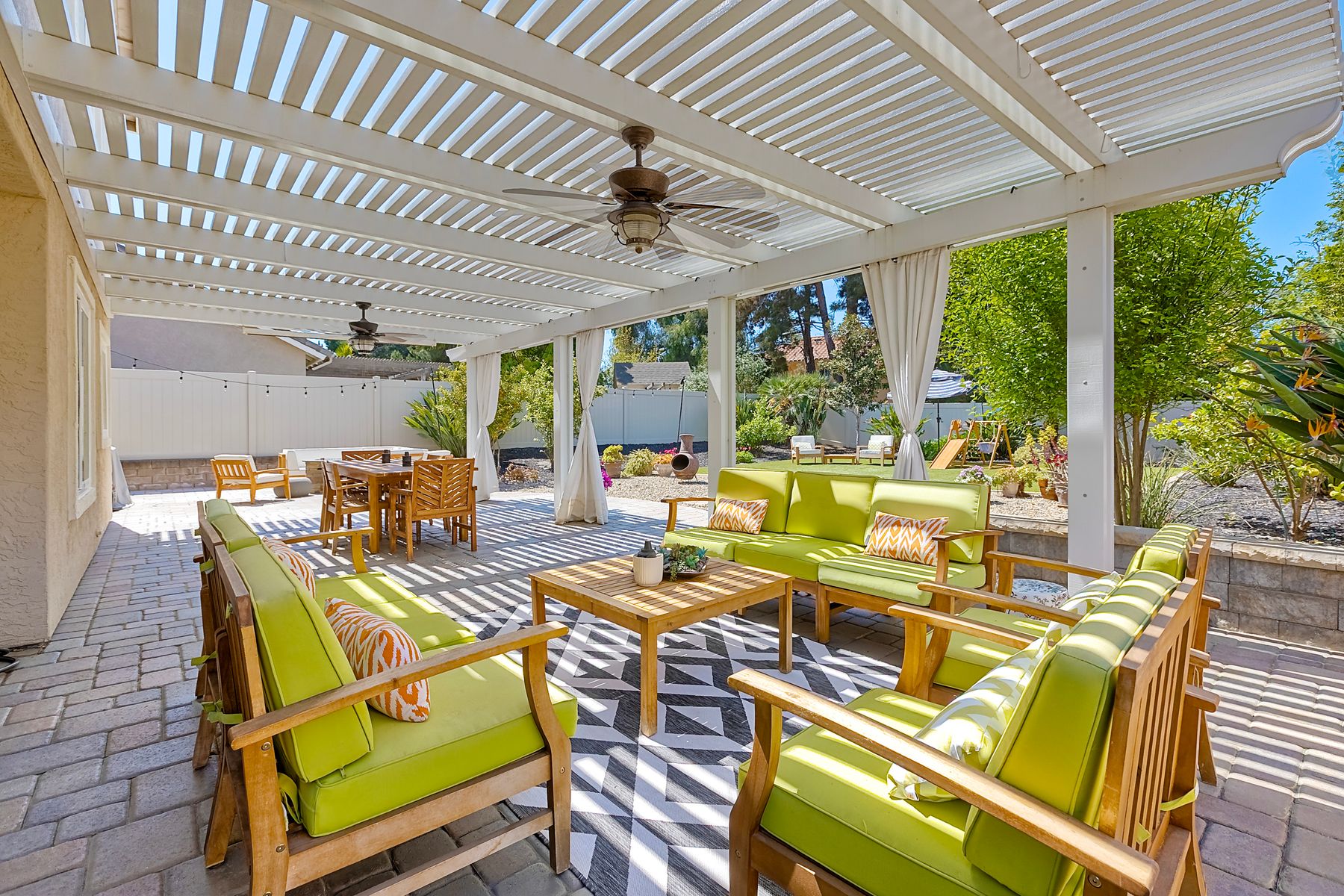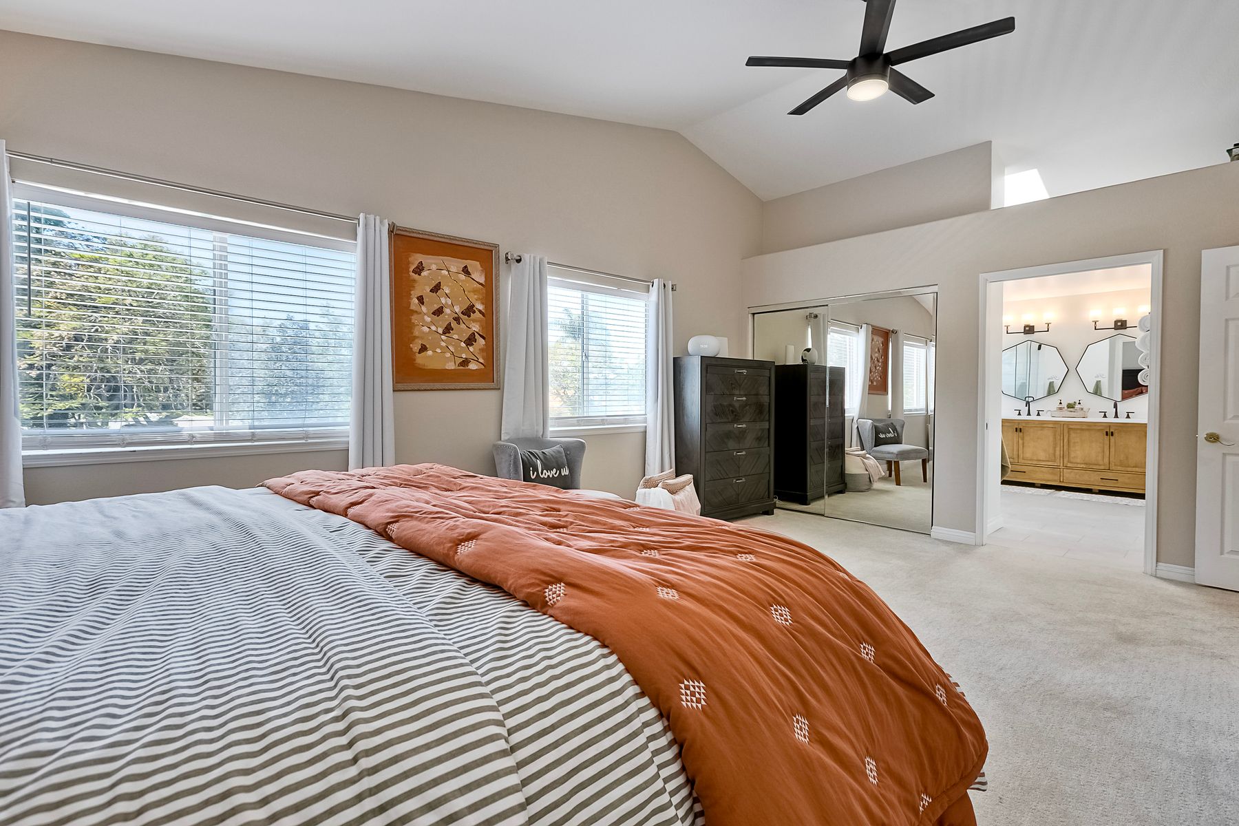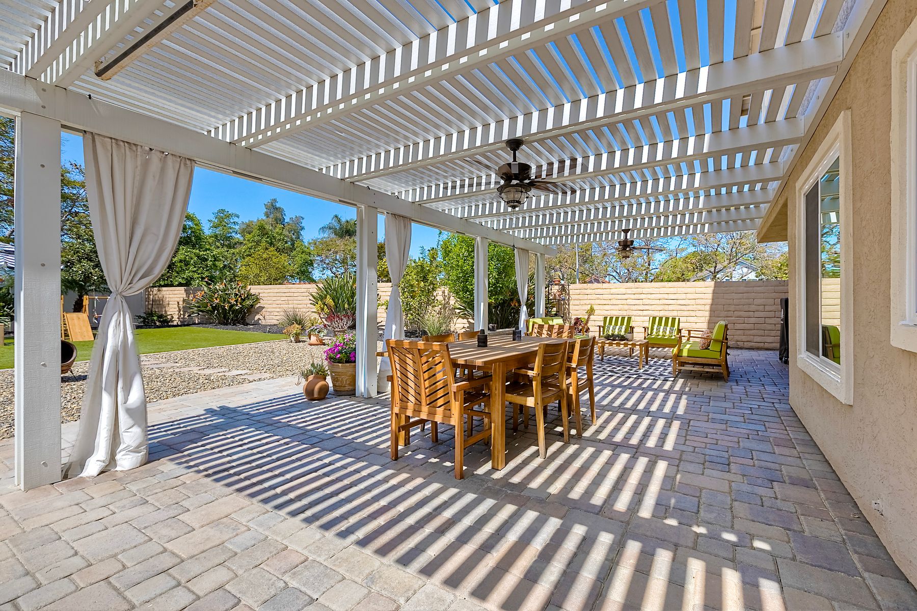 Welcome to Guajome Meadows! This sought-after neighborhood is home to this stunning two-story residence that exemplifies pride of ownership. With a recently replaced roof, this turnkey home features numerous upgrades throughout. Step inside to discover a spacious master bedroom that flows seamlessly into a luxurious master bathroom, complete with a walk-in shower and a freestanding soaking tub- perfect for relaxation. Upstairs, you'll find two additional bedrooms sharing a convenient Jack and Jill bathroom, while a fourth bedroom and full bath are located on the main level, offering flexibility for guests or family. Situated on an expansive nearly 11,000 sq ft flat lot, this property boasts a variety of delightful fruit trees, including lemon, lime, pink lemonade, and kumquat, enhancing the outdoor space. Enjoy evenings by the fire pit or entertain guests under the covered patio- this home truly provides additional living space for your enjoyment. The property is near major highways, close to golf courses, shopping and restaurants and only 8 miles to the ocean. Walk to Guajome Park or hop on the bike path up the street that leads to the beach. Don't miss the opportunity to call this beautiful property your home!