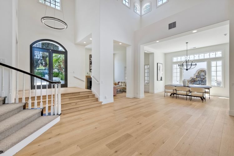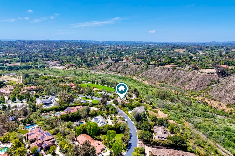 Modern luxury meets Mediterranean charm in this stunning Fairbanks Ranch estate. Perched on over two private acres, this completely renovated home offers striking architecture and sweeping panoramic views of the San Dieguito River Valley and the mountains beyond. Step through the elegant arched doorway and into a bright, open design featuring soaring ceilings, wide-plank hardwood flooring, and natural light pouring through expansive windows. The brand-new kitchen is a showstopper—boasting cascading quartzite countertops, built-in stainless steel appliances, and custom cabinetry. Each bedroom includes its own full en-suite bathroom, offering comfort and privacy throughout. Four fireplaces add warmth and character to the home’s inviting ambiance. The entire second floor is dedicated to the luxurious primary suite, complete with a private balcony, dual-sided fireplace, soaking tub, walk-in shower with frameless glass, an expansive walk-in closet, and a private sauna. Fairbanks Ranch, one of Rancho Santa Fe’s premier guard-gated communities, is renowned for its luxury estates, world-class amenities, and vibrant lifestyle. Residents enjoy 24-hour security, a top-tier equestrian center, tennis and pickleball courts, and scenic walking and hiking trails that wind through lush, landscaped grounds. This home enjoys the coveted north side of the community.