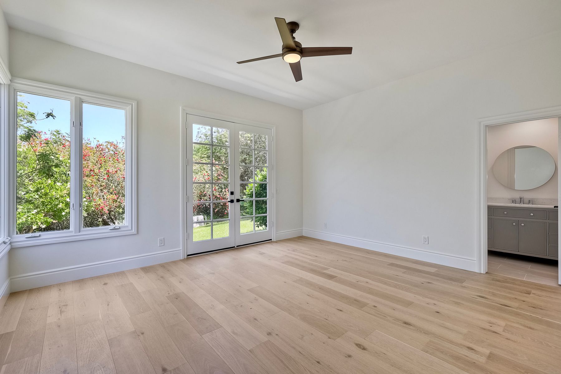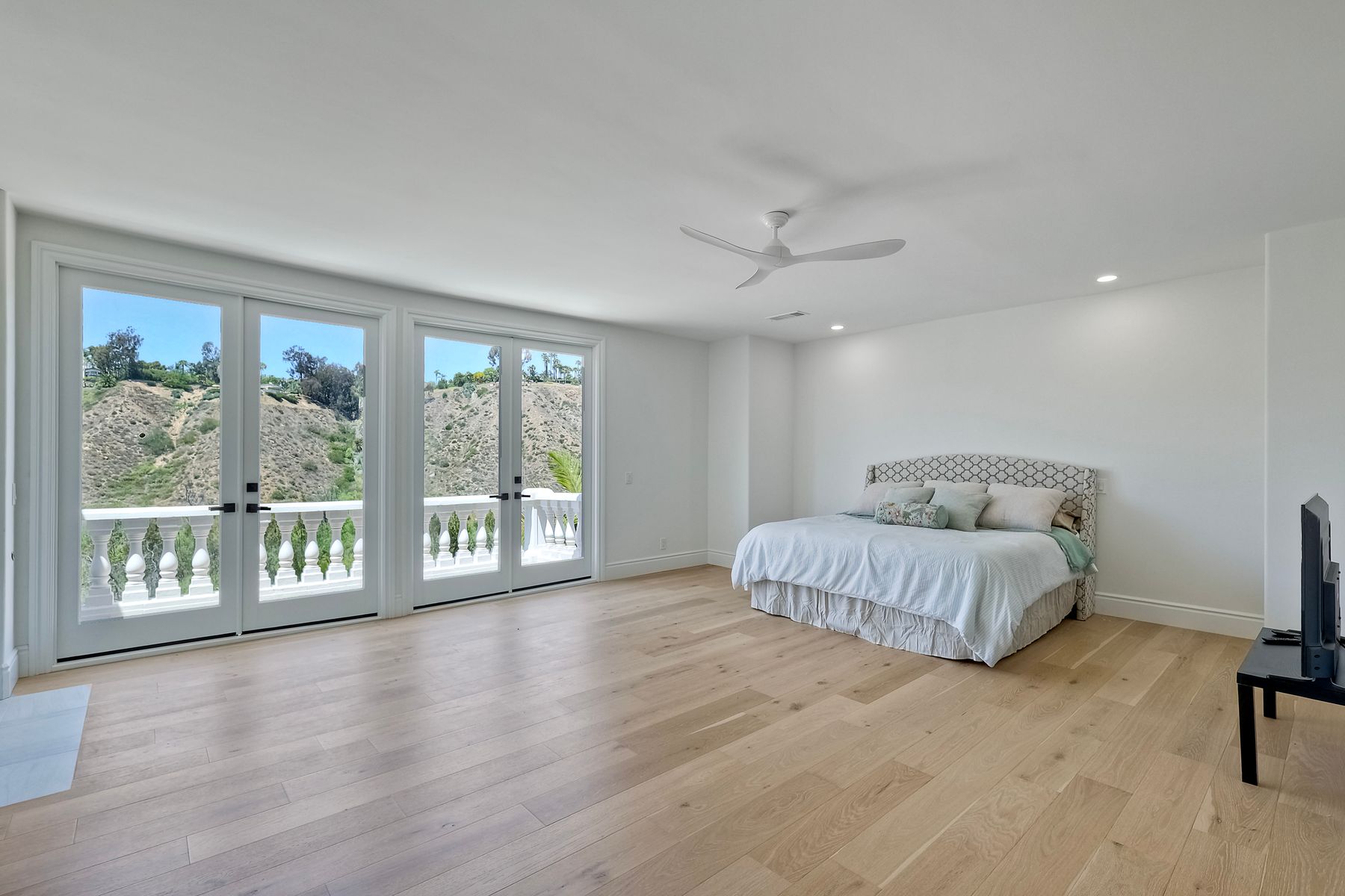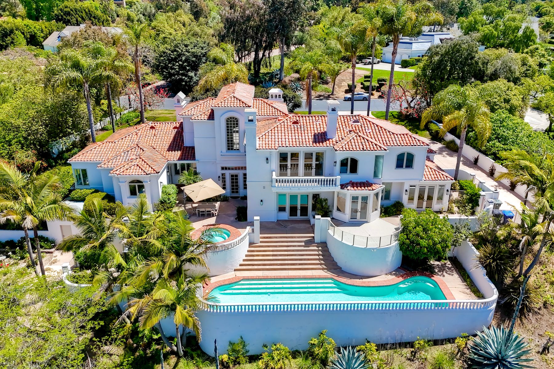 Modern luxury meets Mediterranean charm in this stunning Fairbanks Ranch estate. Perched on over two private acres, this completely renovated home offers striking architecture and sweeping panoramic views of the San Dieguito River Valley and the mountains beyond. Step through the elegant arched doorway and into a bright, open design featuring soaring ceilings, wide-plank hardwood flooring, and natural light pouring through expansive windows. The brand-new kitchen is a showstopper—boasting cascading quartzite countertops, built-in stainless steel appliances, and custom cabinetry. Each bedroom includes its own full en-suite bathroom, offering comfort and privacy throughout. Four fireplaces add warmth and character to the home’s inviting ambiance. The entire second floor is dedicated to the luxurious primary suite, complete with a private balcony, dual-sided fireplace, soaking tub, walk-in shower with frameless glass, an expansive walk-in closet, and a private sauna. Fairbanks Ranch, one of Rancho Santa Fe’s premier guard-gated communities, is renowned for its luxury estates, world-class amenities, and vibrant lifestyle. Residents enjoy 24-hour security, a top-tier equestrian center, tennis and pickleball courts, and scenic walking and hiking trails that wind through lush, landscaped grounds. This home enjoys the coveted north side of the community.