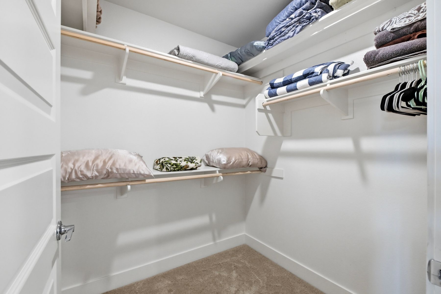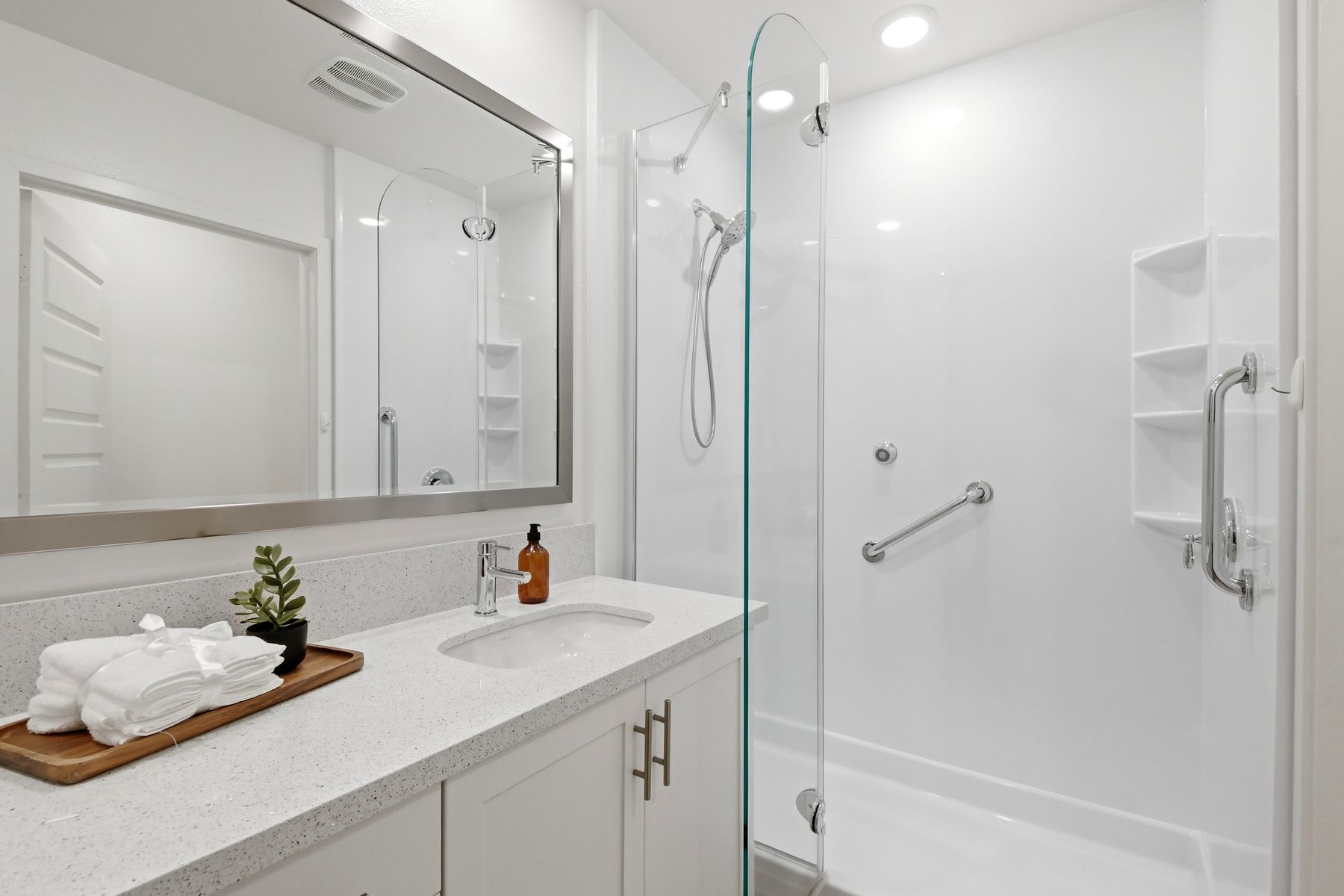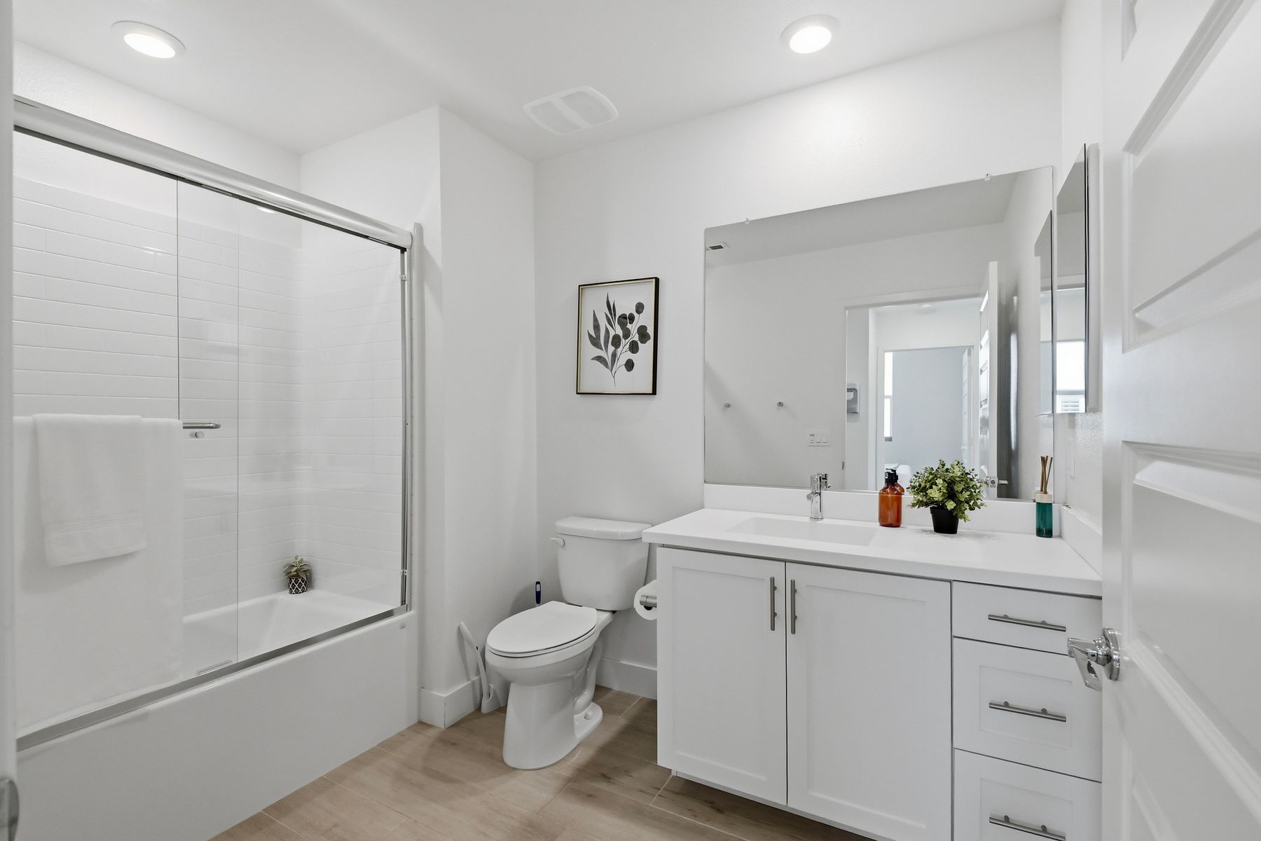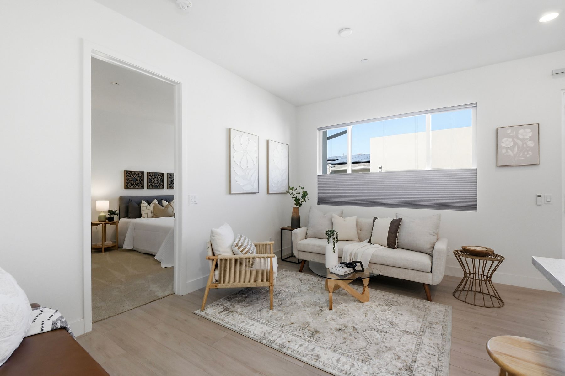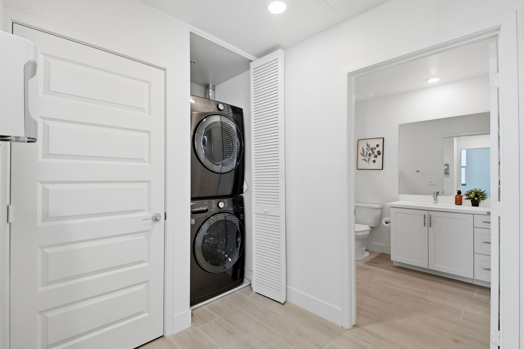 Single level luxury living at the penthouse level - elevator access. Built in 2020 this stacked low-rise building are 'The 'Flats.' An exclusive limited number of units within Kensington At The Square Bressi Ranch, The Flats offer elevator access from garage level up to two floors of stacked units. This top floor pristine unit is a fully upgraded smart home. The split floor plan adds privacy with each bedroom suite on opposite sides of the main living space. Thoughtfully designed with a spacious great room featuring warm wood like tile flooring complemented with solid wood white shaker cabinetry. Neutral quartz countertops in kitchen and baths. Enjoy the private covered balcony with western exposure where natural light flows seamlessly from outside to inside. Two extra large bedrooms have generous closet storage and luxurious extra plush carpeting. Primary bedroom features a large walk in closet. Stacked interior laundry center along side a large walk in storage closet. The building has an external secure lobby entrance with a My2N intercom system to allow for guest and delivery access from a smartphone application. Weekly janitorial service. Paid solar. Oversized 2-car garage including a work bench, storage cabinets and 5 overhead storage racks. Garage has been equipped with e-car charging wiring - ready to install a car charger device of your choice. The garage is at entry level with an interior hallway that leads to an elevator up the two floors of stacked units. Absolutely exquisite and unique lifestyle located in the heart of Bressi Square and Bressi Town Center - all the convenience of shopping, dining, entertainment and more! Community resort pool, bocce ball court, BBQ's, picnic tables and playground to enjoy. Minutes from Carlsbad beaches, top notch luxury golf resorts, LegoLand, outdoor outlet shopping mall, nature preserves and lagoons. Enjoy the Carlsbad lifestyle in this luxury newer construction Flat.