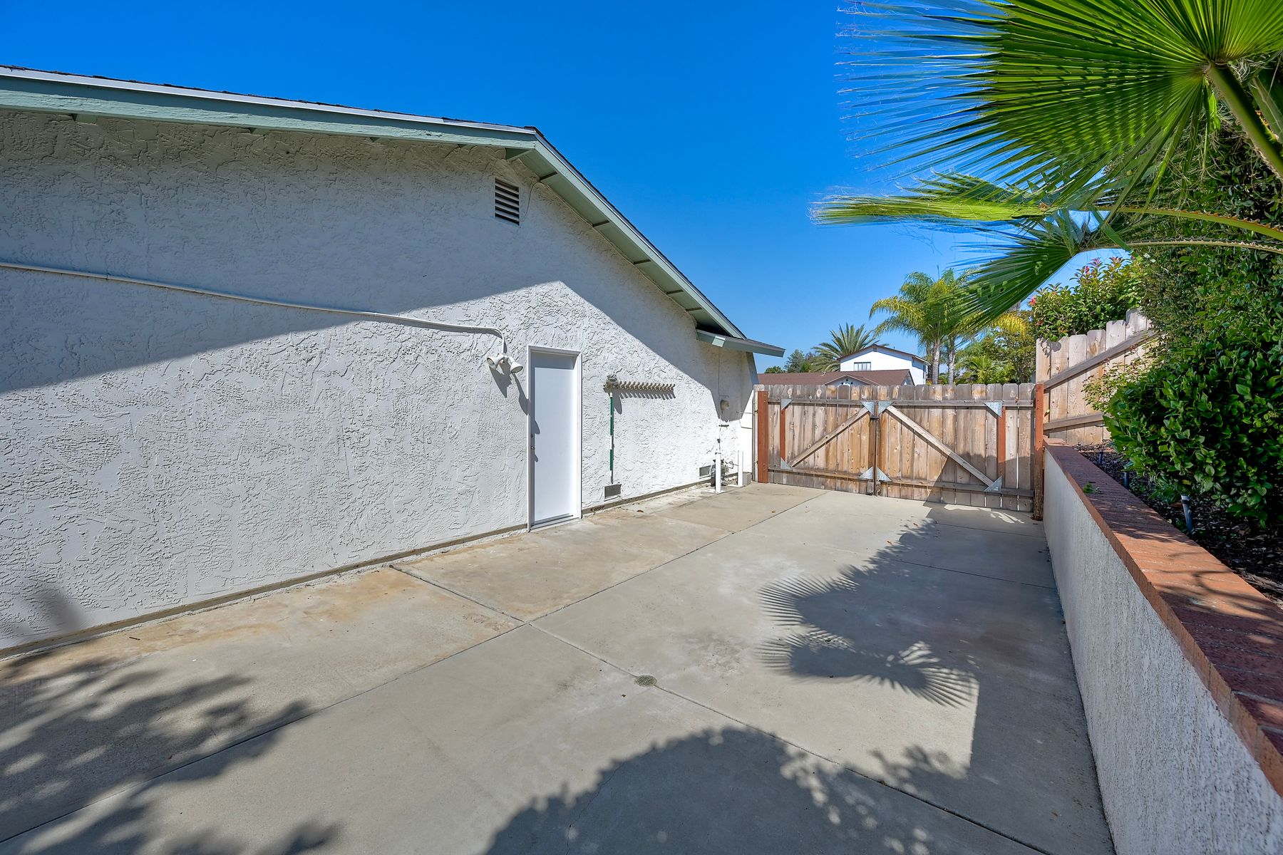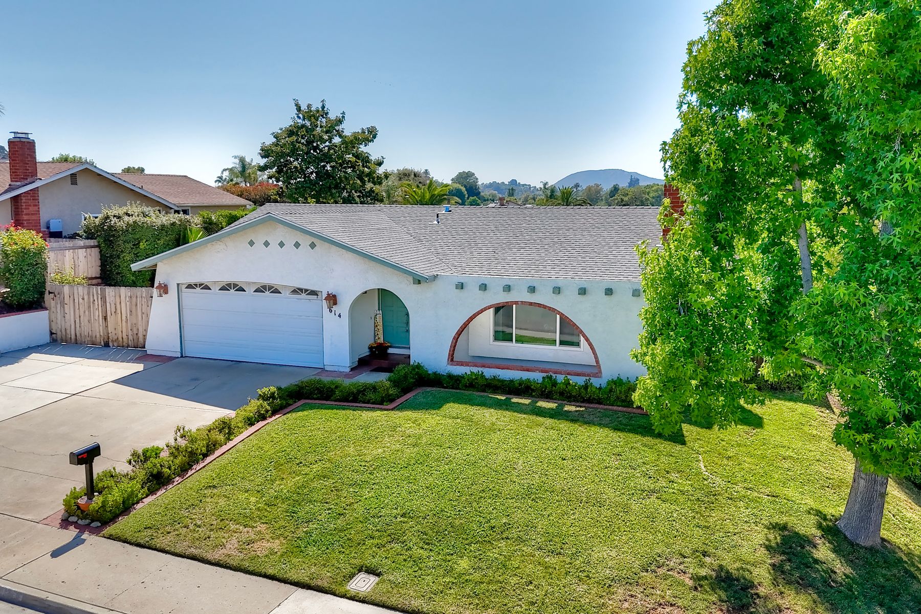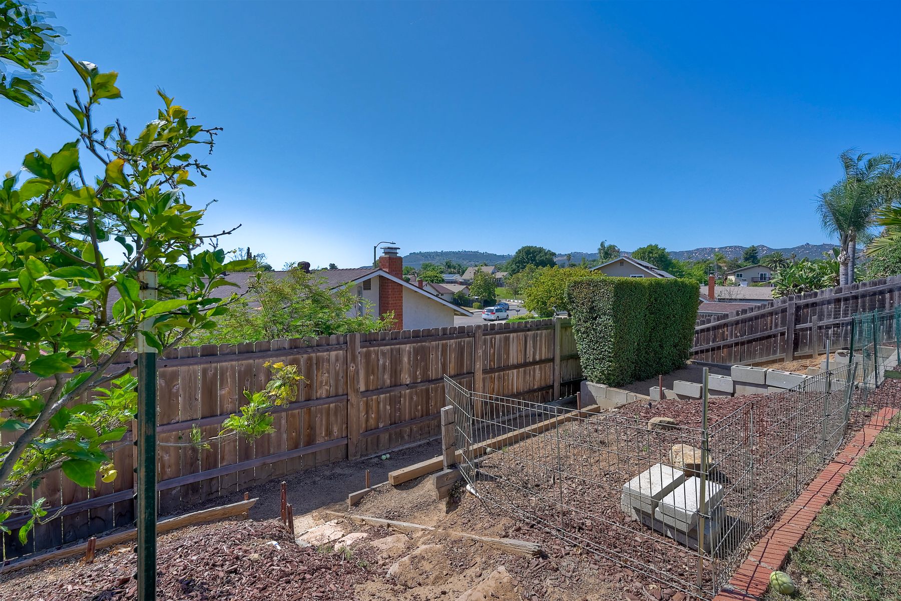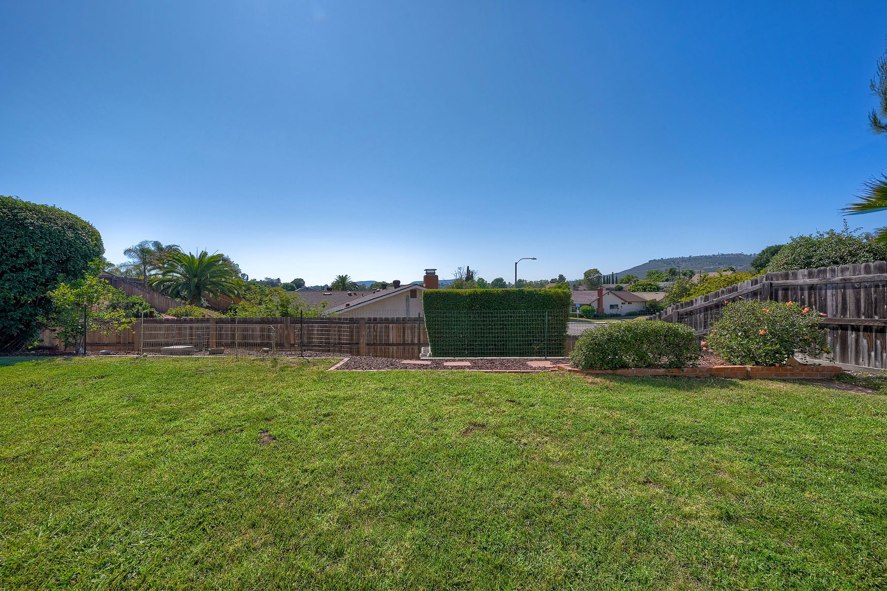 Welcome home to this well located single story home in San Marcos Woods. This 9,900 SF corner lot has plenty of room to add a pool or jacuzzi. The home has 3 generous sized bedrooms plus a large (potential) fourth bedroom that is currently configured as a office. Relax and enjoy the approx 250 SF roofed lanai just off the kitchen & dining area. The home is light and bright freshly painted, with vinyl windows, newer vinyl flooring, and recessed can lights. There is a dedicated area to grow a wonderful garden and fruit trees. Relax in the yard to take in the incredible backyard views. This home is well located and has great bones, just needs some updating. Enjoy the short distance to the beautiful Woodland Park and San Marcos schools. The generous gated side yard is large enough to park your RV with a large double gate and concrete pad. NO HOA! NO MELLO ROOS!