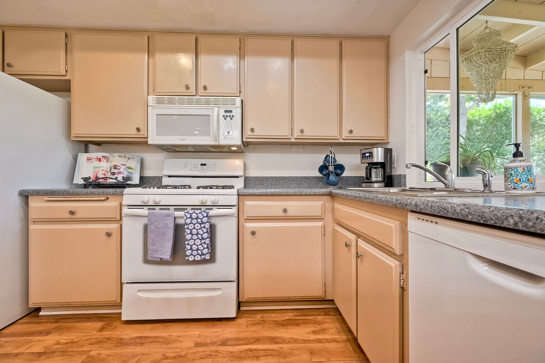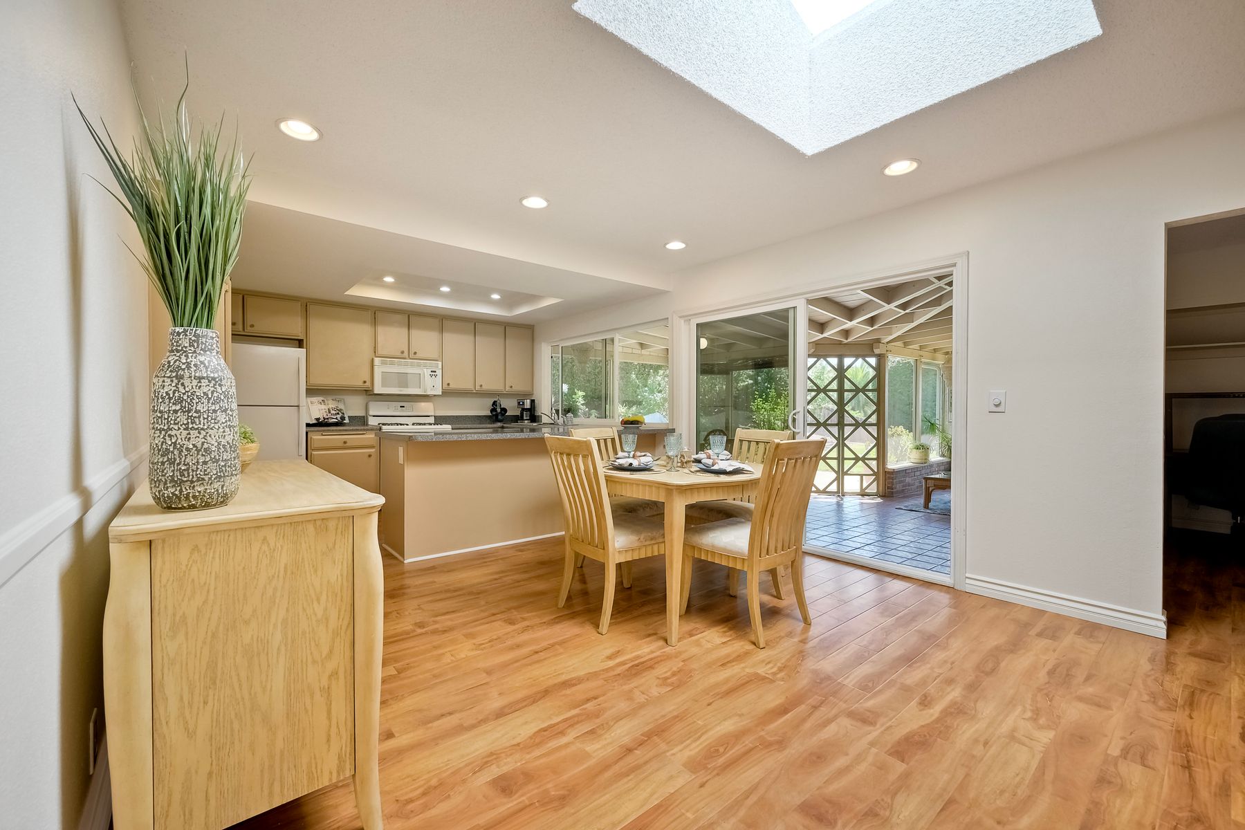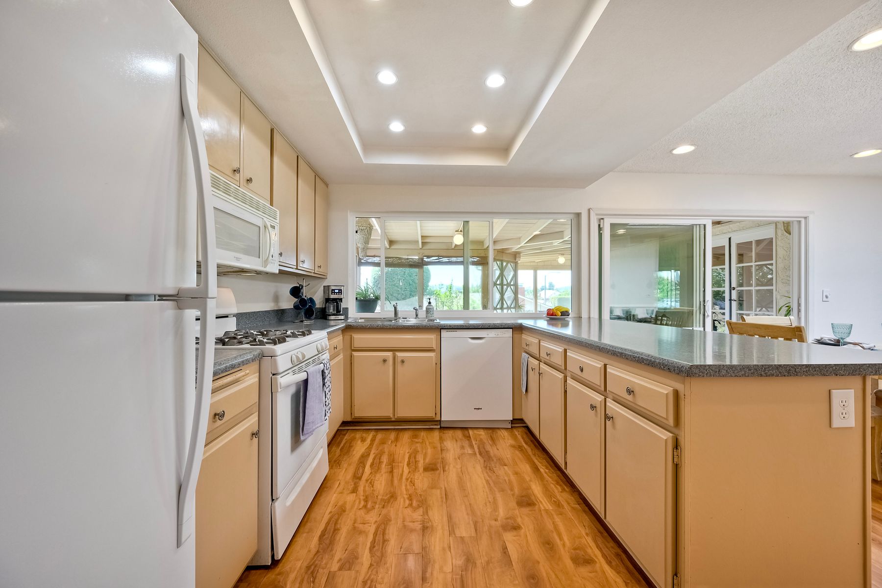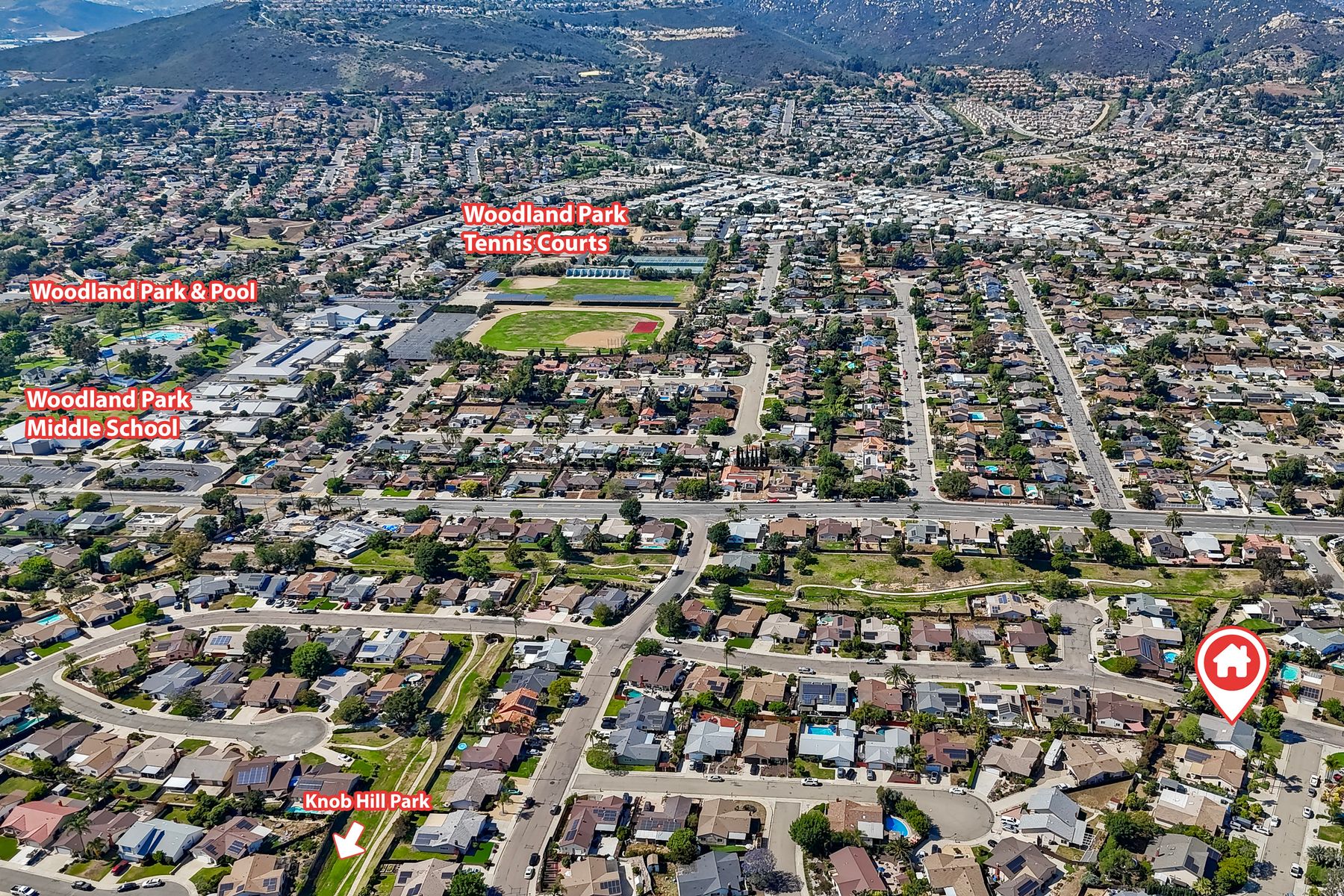Welcome home to this well located single story home in San Marcos Woods. This 9,900 SF corner lot has plenty of room to add a pool or jacuzzi. The home has 3 generous sized bedrooms plus a large (potential) fourth bedroom that is currently configured as a office. Relax and enjoy the approx 250 SF roofed lanai just off the kitchen & dining area. The home is light and bright freshly painted, with vinyl windows, newer vinyl flooring, and recessed can lights. There is a dedicated area to grow a wonderful garden and fruit trees. Relax in the yard to take in the incredible backyard views. This home is well located and has great bones, just needs some updating. Enjoy the short distance to the beautiful Woodland Park and San Marcos schools. The generous gated side yard is large enough to park your RV with a large double gate and concrete pad. NO HOA! NO MELLO ROOS!