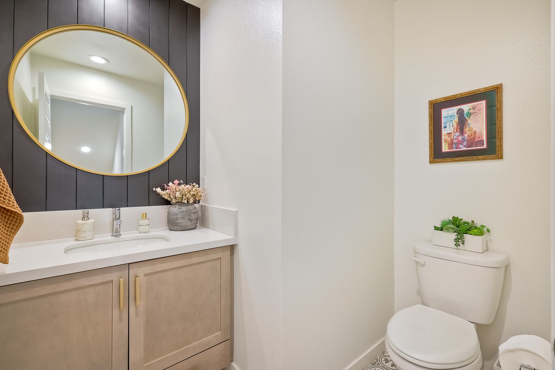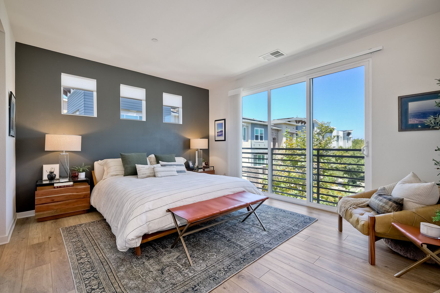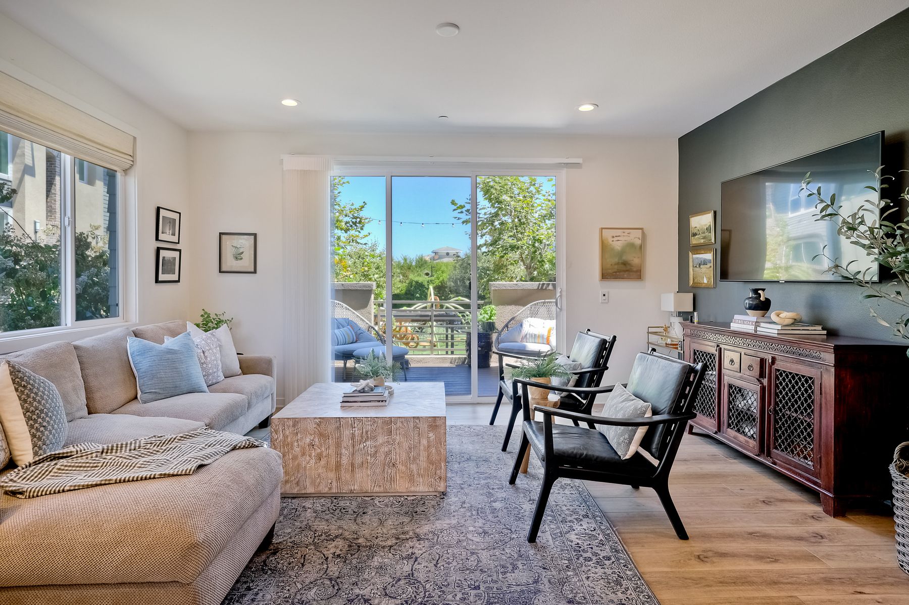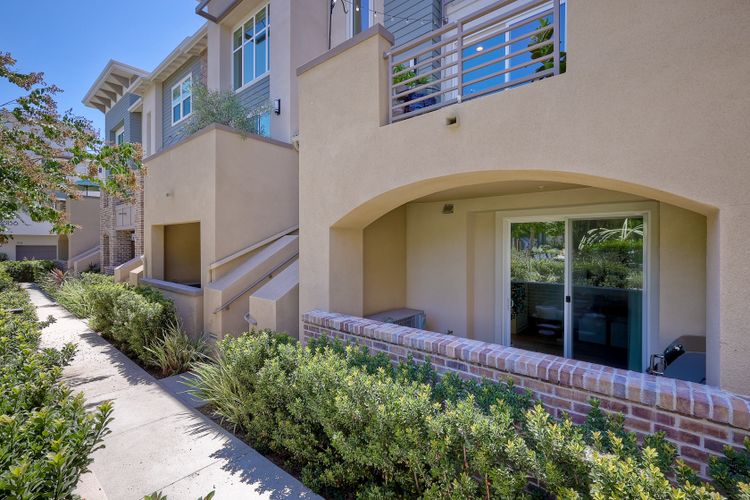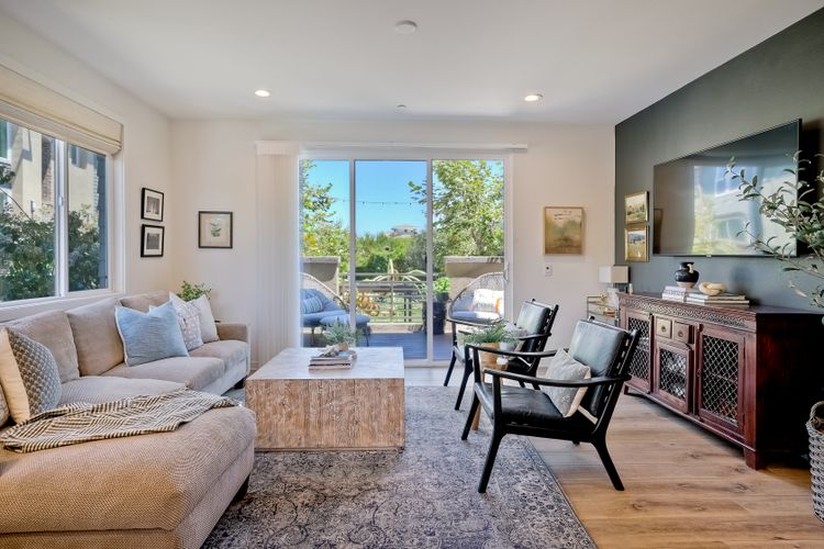 Step into this unique home with exquisite custom details straight from a magazine! Discover carefully chosen finishes, from stunning lighting and mirrors to custom paint, luxury vinyl flooring, elegant tile, shiplap/wood wall accents, wallpaper, beautiful window treatments, and upgraded glass enclosures in the bathrooms. The main level boasts a designer kitchen featuring a striking island with seating for six, ample cabinets and counters, custom tile backsplash, pendant lighting, stylish shaker cabinets, and a spacious pantry. The dining room with a distinctive chandelier seamlessly connects to the light-filled living room with large windows offering views of lush greenery. Relax on the spacious patio with Trex decking while admiring the park and beautiful scenery. This level also includes a tastefully designed powder room with shiplap and custom tile. The third floor houses the primary suite with a luxurious bathroom featuring a walk-in shower with stunning tile extending up the wall above the vanity and a dreamy custom walk-in closet. Another generously sized bedroom with a unique feature wall and en suite bath with designer wallpaper can be found on this level, along with a convenient stackable washer and dryer in the hall. The first floor of this tri-level home features a private bedroom with its own en suite bath and a sliding door opening to a private, covered patio overlooking the park. Additionally, the first level offers access to the two-car garage. Beyond the stunning aesthetics, enjoy fully owned solar, epoxy garage floors, and smart features like a tankless water heater, keyless entry, and thermostat. Take advantage of the neighborhood's amenities including a salt water pool, park/play area, barbecues, picnic tables, Bocci Ball, a Tesla charging station, and more. No need for a car with the Bressi Ranch Shopping Center with local dining and shopping! Trader Joe's and Sprouts are just a stones throw away. This fantastic location is just a short distance from the beautiful beaches of Carlsbad and Encinitas, as well as top-rated schools. Don’t miss out on this stunning home with an amazing location!