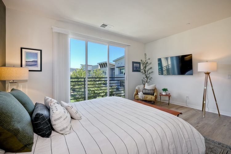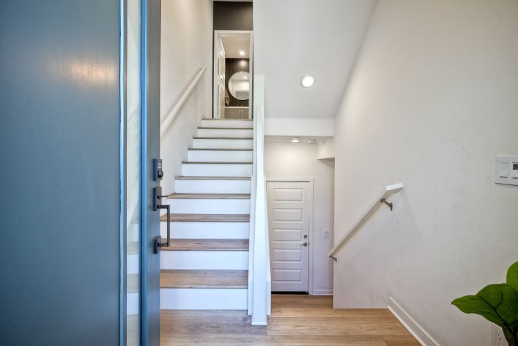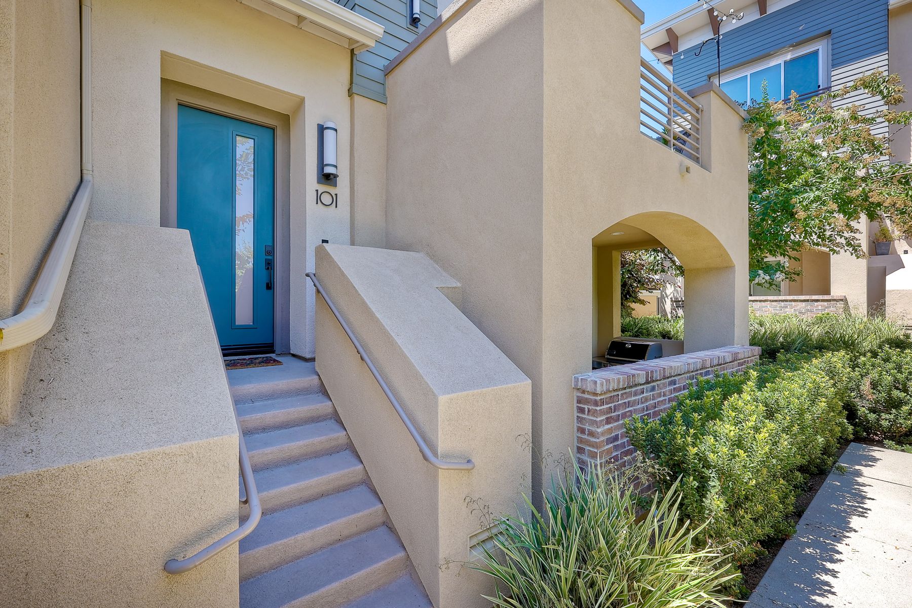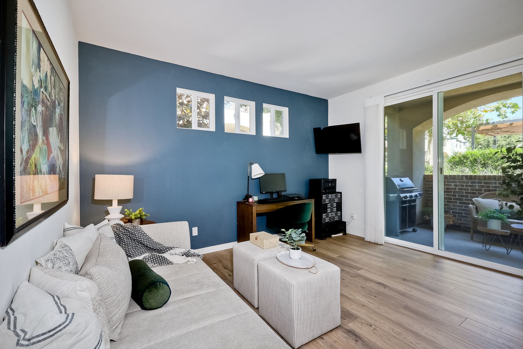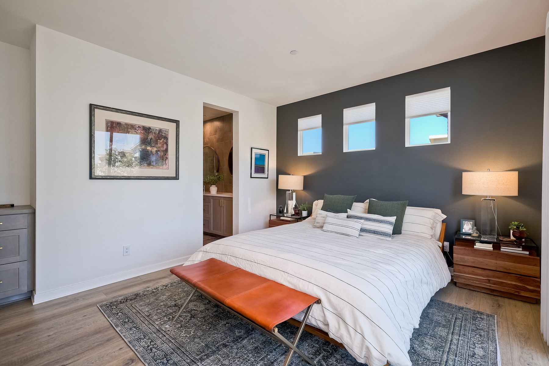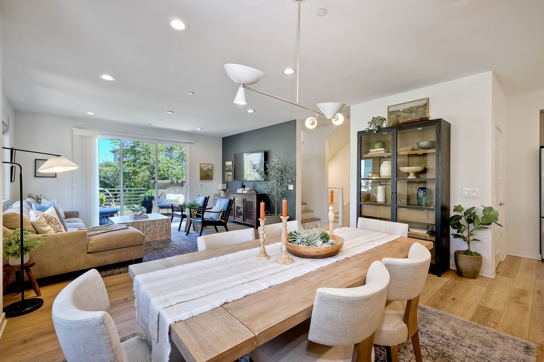 Step into this unique home with exquisite custom details straight from a magazine! Discover carefully chosen finishes, from stunning lighting and mirrors to custom paint, luxury vinyl flooring, elegant tile, shiplap/wood wall accents, wallpaper, beautiful window treatments, and upgraded glass enclosures in the bathrooms. The main level boasts a designer kitchen featuring a striking island with seating for six, ample cabinets and counters, custom tile backsplash, pendant lighting, stylish shaker cabinets, and a spacious pantry. The dining room with a distinctive chandelier seamlessly connects to the light-filled living room with large windows offering views of lush greenery. Relax on the spacious patio with Trex decking while admiring the park and beautiful scenery. This level also includes a tastefully designed powder room with shiplap and custom tile. The third floor houses the primary suite with a luxurious bathroom featuring a walk-in shower with stunning tile extending up the wall above the vanity and a dreamy custom walk-in closet. Another generously sized bedroom with a unique feature wall and en suite bath with designer wallpaper can be found on this level, along with a convenient stackable washer and dryer in the hall. The first floor of this tri-level home features a private bedroom with its own en suite bath and a sliding door opening to a private, covered patio overlooking the park. Additionally, the first level offers access to the two-car garage. Beyond the stunning aesthetics, enjoy fully owned solar, epoxy garage floors, and smart features like a tankless water heater, keyless entry, and thermostat. Take advantage of the neighborhood's amenities including a salt water pool, park/play area, barbecues, picnic tables, Bocci Ball, a Tesla charging station, and more. No need for a car with the Bressi Ranch Shopping Center with local dining and shopping! Trader Joe's and Sprouts are just a stones throw away. This fantastic location is just a short distance from the beautiful beaches of Carlsbad and Encinitas, as well as top-rated schools. Don’t miss out on this stunning home with an amazing location!