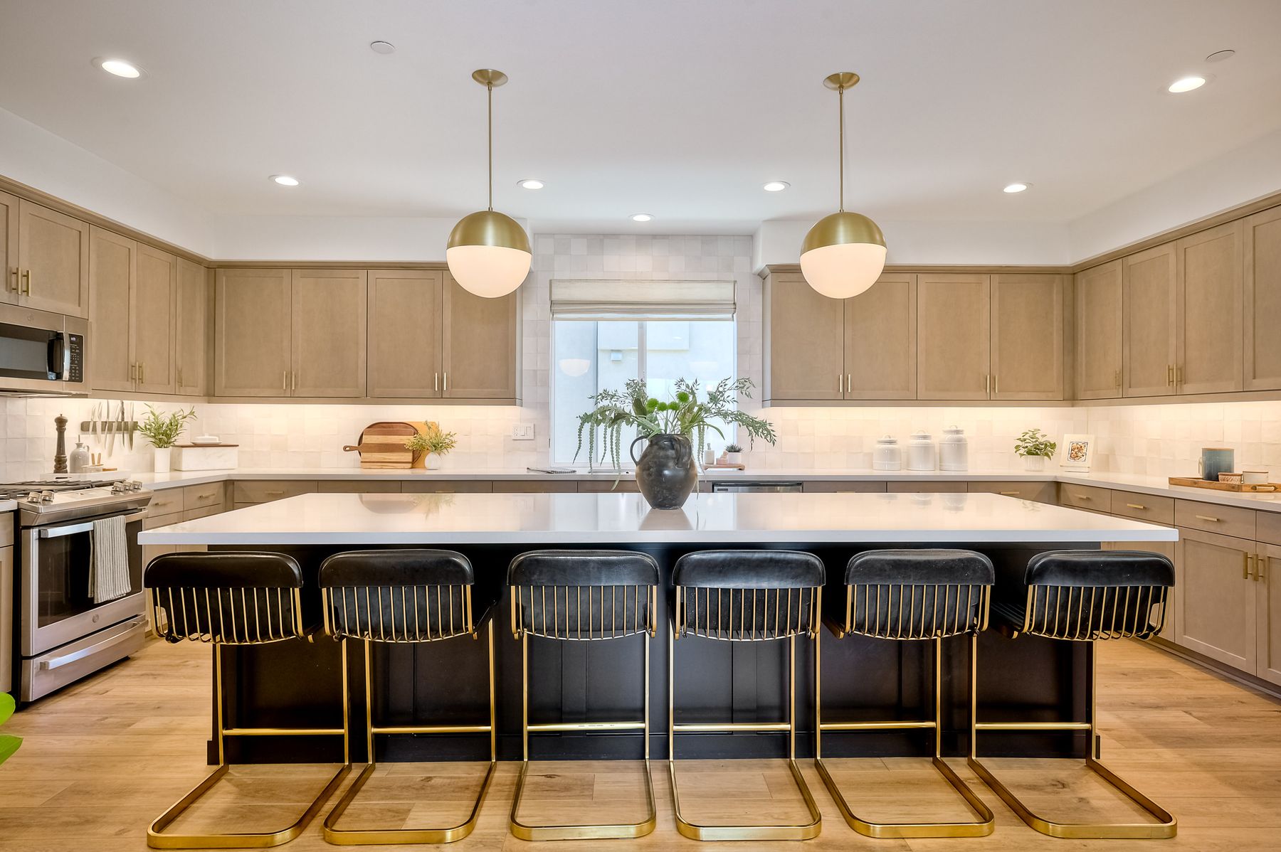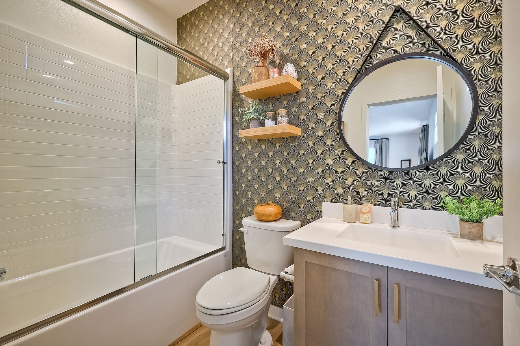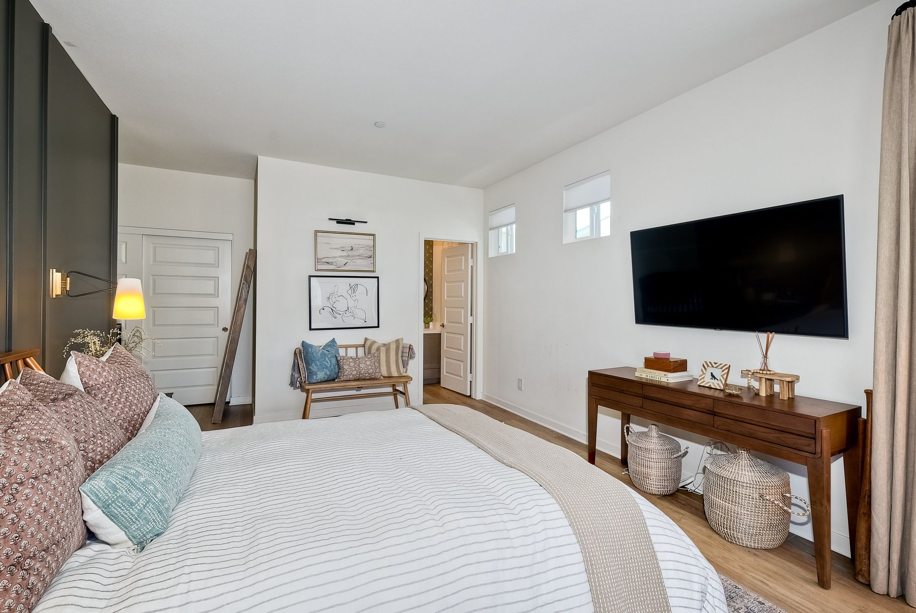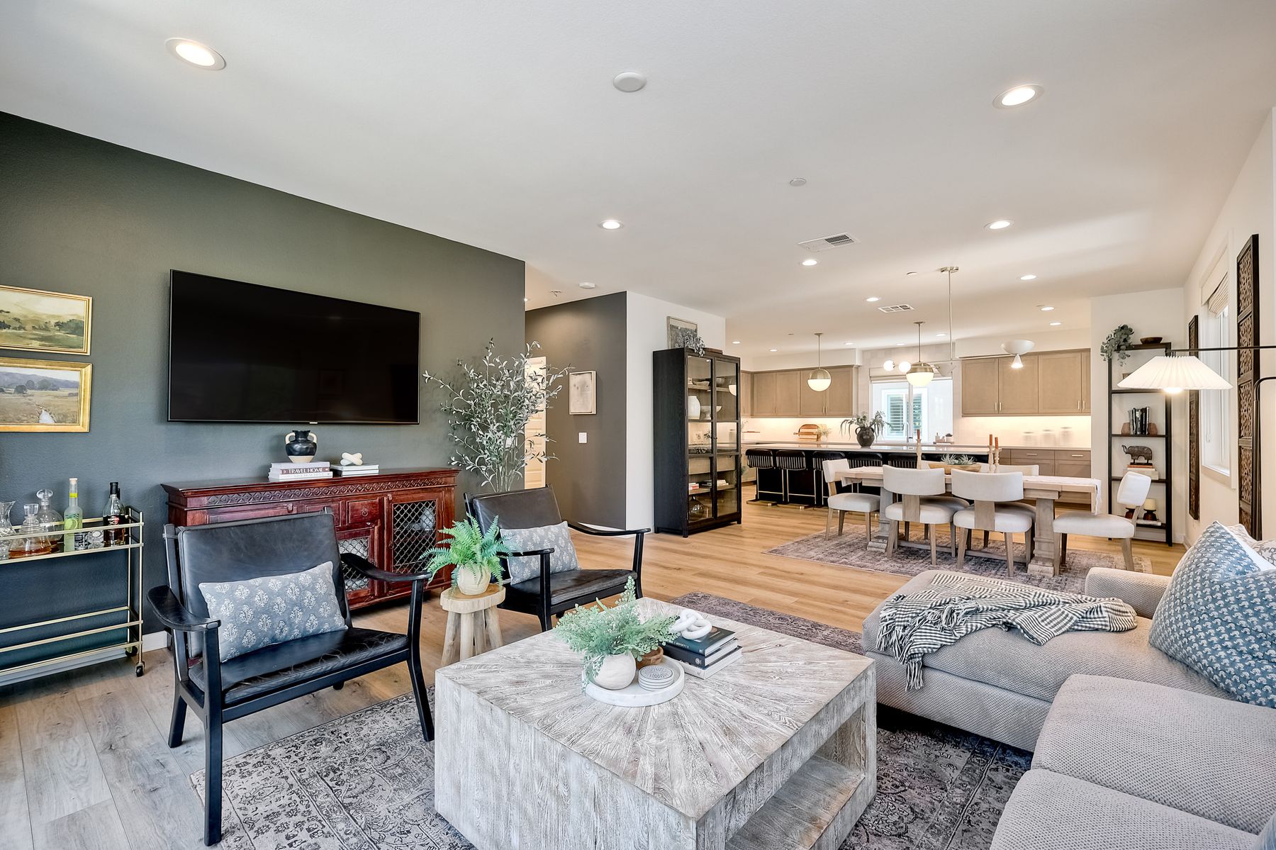 Step into this unique home with exquisite custom details straight from a magazine! Discover carefully chosen finishes, from stunning lighting and mirrors to custom paint, luxury vinyl flooring, elegant tile, shiplap/wood wall accents, wallpaper, beautiful window treatments, and upgraded glass enclosures in the bathrooms. The main level boasts a designer kitchen featuring a striking island with seating for six, ample cabinets and counters, custom tile backsplash, pendant lighting, stylish shaker cabinets, and a spacious pantry. The dining room with a distinctive chandelier seamlessly connects to the light-filled living room with large windows offering views of lush greenery. Relax on the spacious patio with Trex decking while admiring the park and beautiful scenery. This level also includes a tastefully designed powder room with shiplap and custom tile. The third floor houses the primary suite with a luxurious bathroom featuring a walk-in shower with stunning tile extending up the wall above the vanity and a dreamy custom walk-in closet. Another generously sized bedroom with a unique feature wall and en suite bath with designer wallpaper can be found on this level, along with a convenient stackable washer and dryer in the hall. The first floor of this tri-level home features a private bedroom with its own en suite bath and a sliding door opening to a private, covered patio overlooking the park. Additionally, the first level offers access to the two-car garage. Beyond the stunning aesthetics, enjoy fully owned solar, epoxy garage floors, and smart features like a tankless water heater, keyless entry, and thermostat. Take advantage of the neighborhood's amenities including a salt water pool, park/play area, barbecues, picnic tables, Bocci Ball, a Tesla charging station, and more. No need for a car with the Bressi Ranch Shopping Center with local dining and shopping! Trader Joe's and Sprouts are just a stones throw away. This fantastic location is just a short distance from the beautiful beaches of Carlsbad and Encinitas, as well as top-rated schools. Don’t miss out on this stunning home with an amazing location!