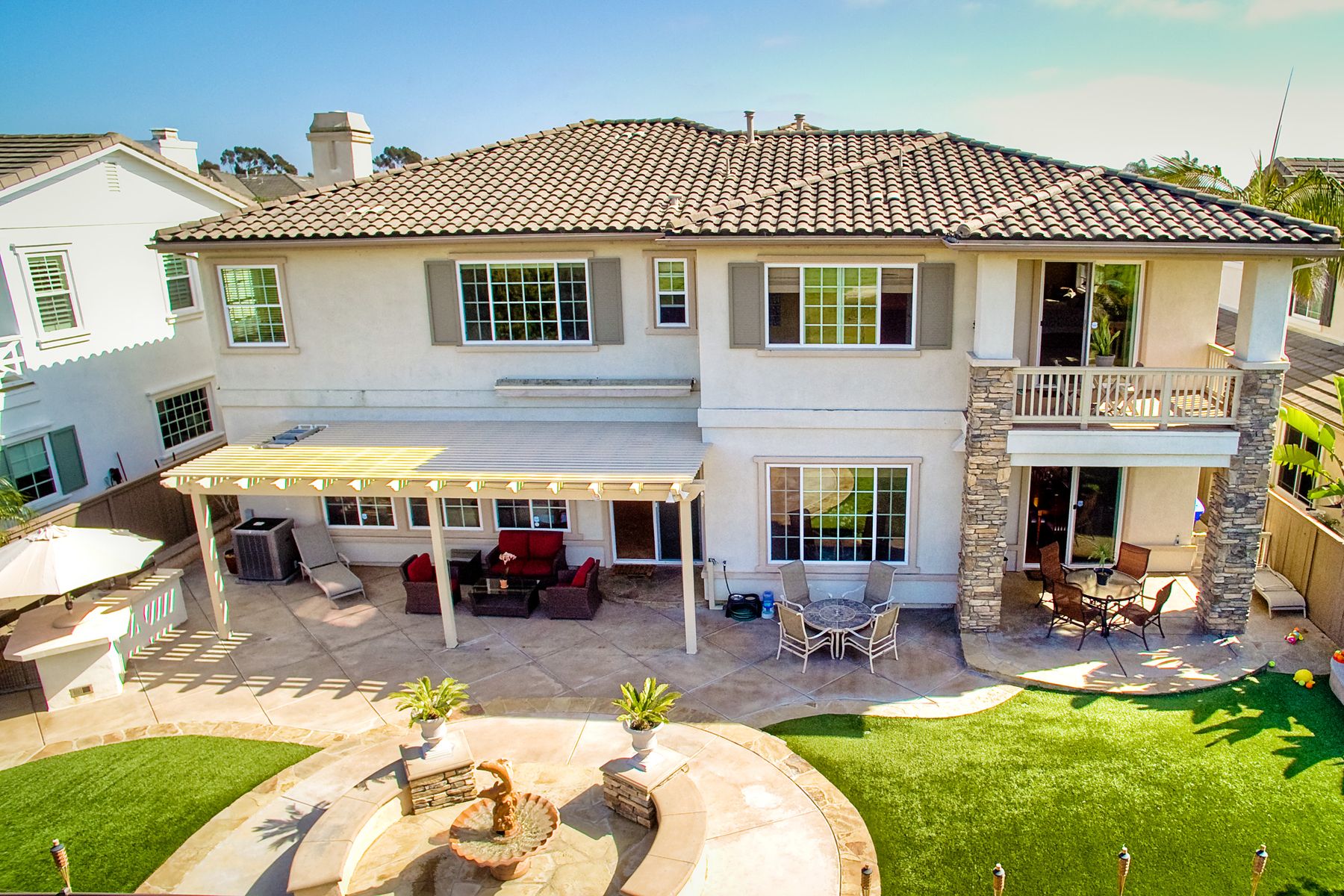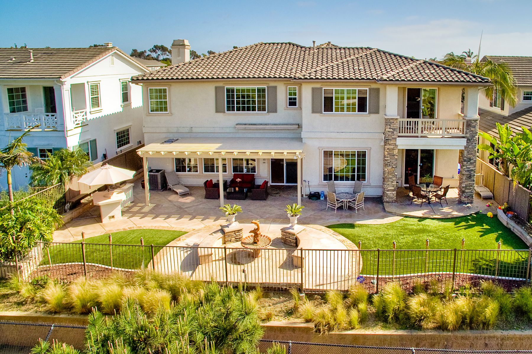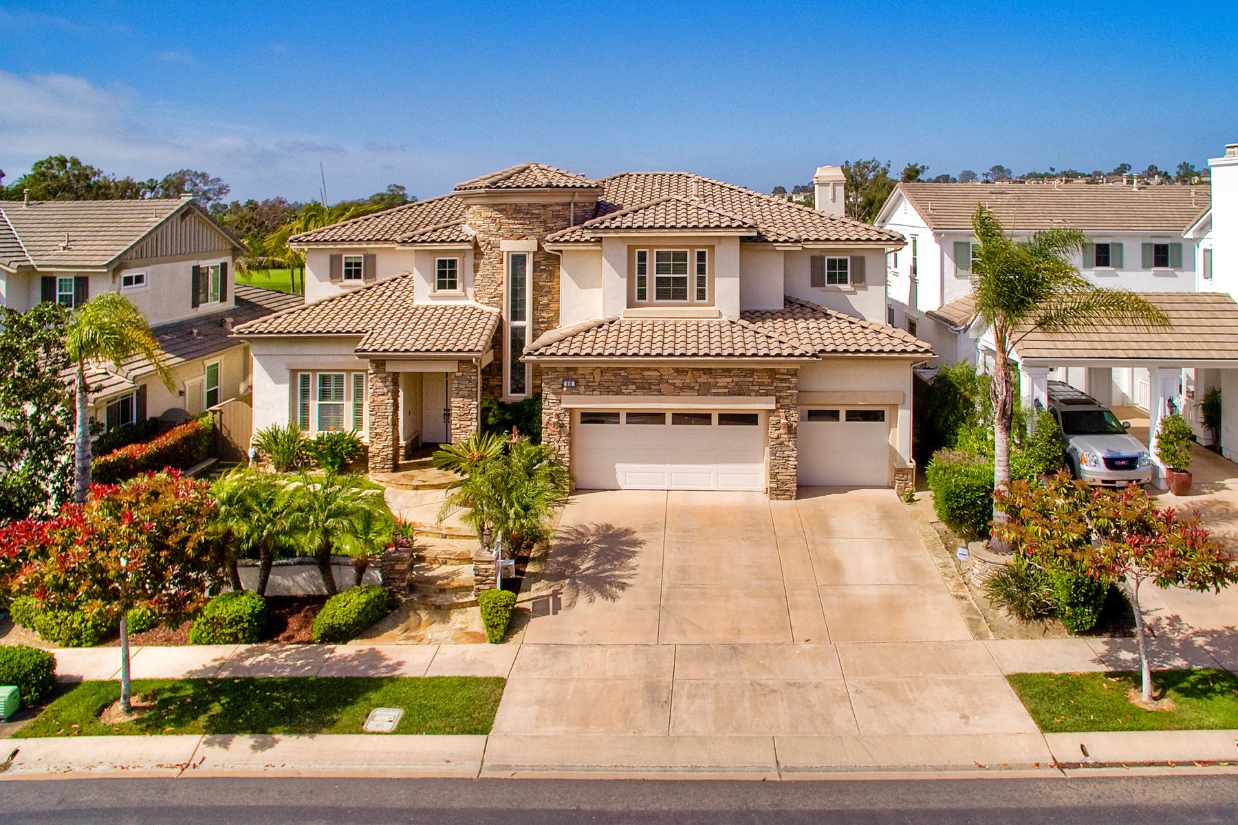 This immaculate must-see mediterranean-style encinitas ranch home with peek ocean and panoramic golf course views gives you a resort-like, luxurious and comfortable atmosphere. Home has 5 bdrms+ office+ loft, 4.5 ba and 3-car garage, grand 2-sty foyer, 10 ft ceilings, a chef's kitchen with large island and pantry, master bdrm is expansive w/ sitting area and opulent master bath & huge walk-in closet, large family room is perfect for entertaining; tropical backyard, guest bedroom downstairs and more! Location adjacent to hole #4 of encinitas ranch golf course, home is wired for surround sound speakers, dramatic curved staircase on entry and another stairs from the hallway, built-in bbq in backyard, motorized awning above patio cover, home built by toll brothers and more! To appreciate!