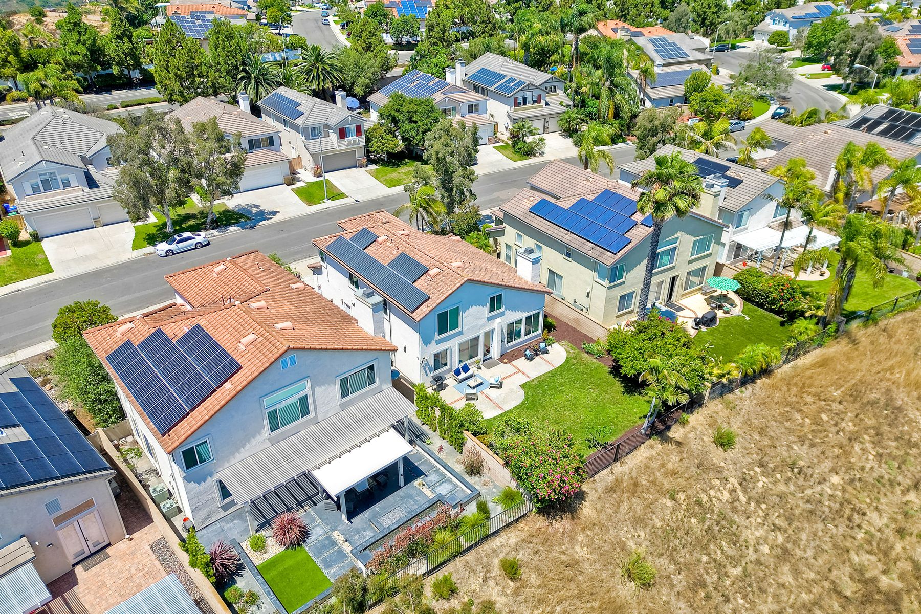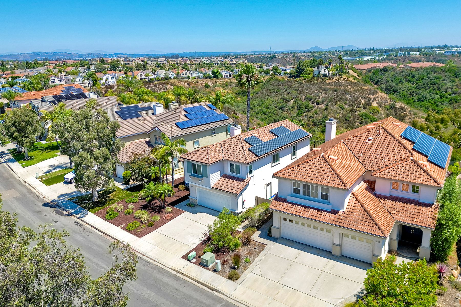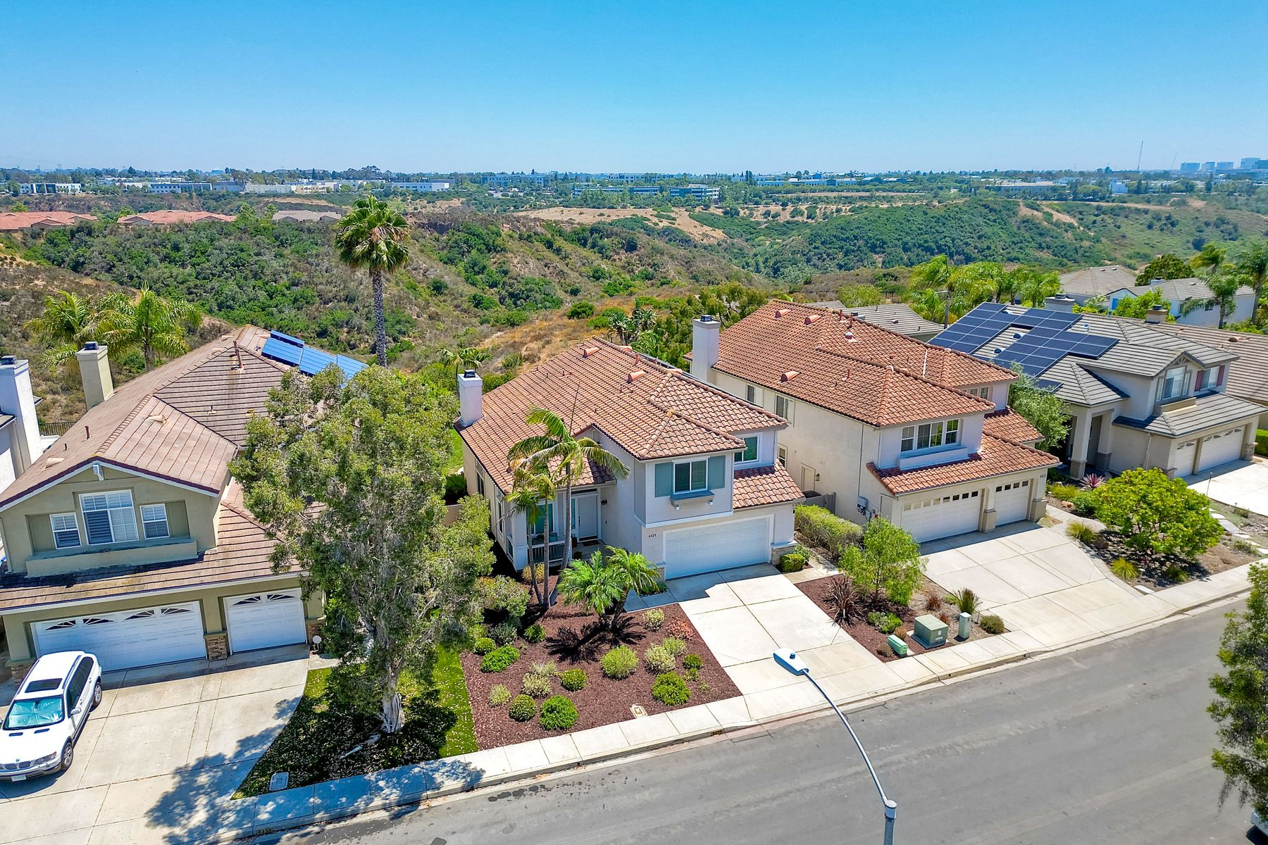 Discover the awe-inspiring canyon VIEWS that overlook the pristine Los Penasquitos Canyon Preserve! Upon entry, be prepared to be captivated by the soaring vaulted ceilings, accentuated windows that effortlessly drench the interior in natural light. Convenience meets luxury, as one bedroom and a full bathroom grace the main level, catering to multi-generational families or the need for a dedicated space for a nanny. The spacious living and family rooms serve as a seamless host for gatherings and celebrations, elevating the essence of entertainment. Warmth and charm embrace the large dining room, where a cozy fireplace, adorned with a mosaic tile surround, harmoniously blends with the breathtaking open views. A culinary enthusiast's dream, the kitchen boasts lustrous white cabinetry, elegant quartz counters, a tasteful decorative tile backsplash, and stainless steel appliances. The center island and pantry cater to both functionality and style, making meal preparation a delightful experience. The double ovens are a plus! The lavish primary bedroom is an oasis of tranquility, privacy, and awe-inspiring canyon views graced by vaulted ceilings, a spacious walk-in closet complete with shelves and drawers. The ensuite bathroom has been thoughtfully upgraded, exuding modern flair and sophistication. All bathrooms have been tastefully adorned, ensuring every moment of pampering is unparalleled. Step outside to the backyard and unwind on the spacious patio, as you bask in the ever-changing beauty of nature, mature fruit trees and savoring the captivating scenes year-round. An OWNED solar system is an added bonus! Easy access to I-5 and I-805, Rtes. 52 and 56 this facilitates seamless commuting. Indulge in the abundance of shopping, dining, and entertainment venues within arm's reach. The allure of this locale is amplified by its proximity to beaches, golf courses, and a myriad of fine dining, offering a perfect balance of relaxation, indulgence, and fun!