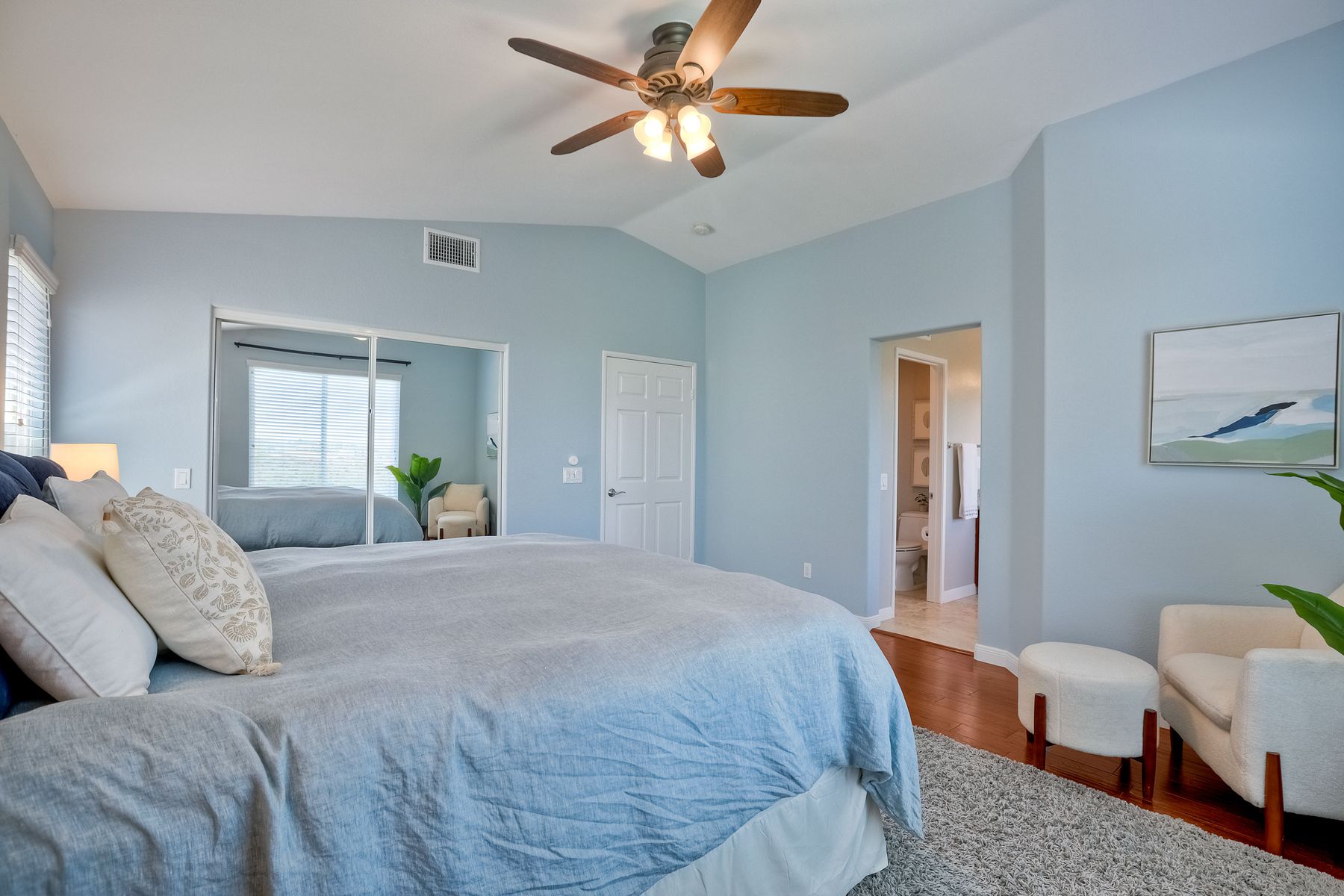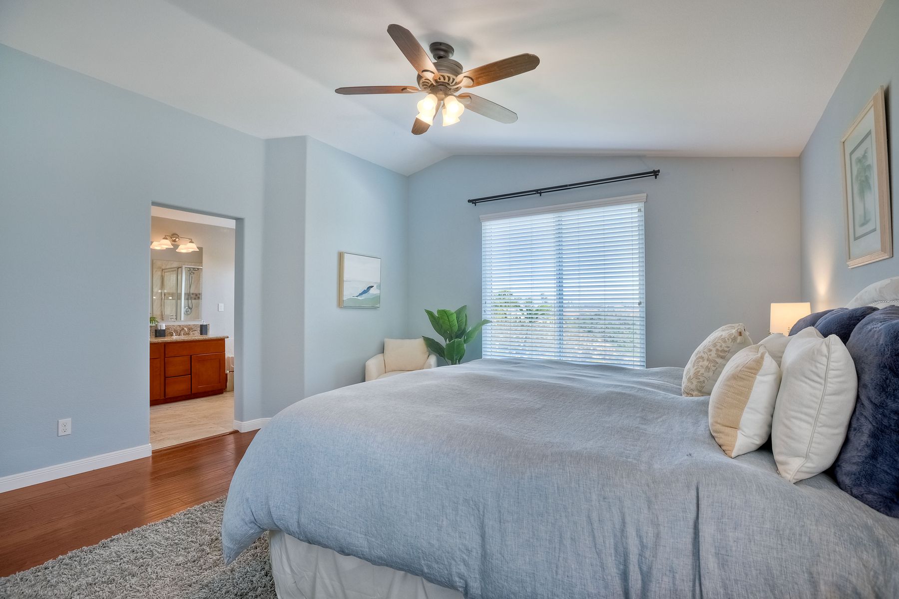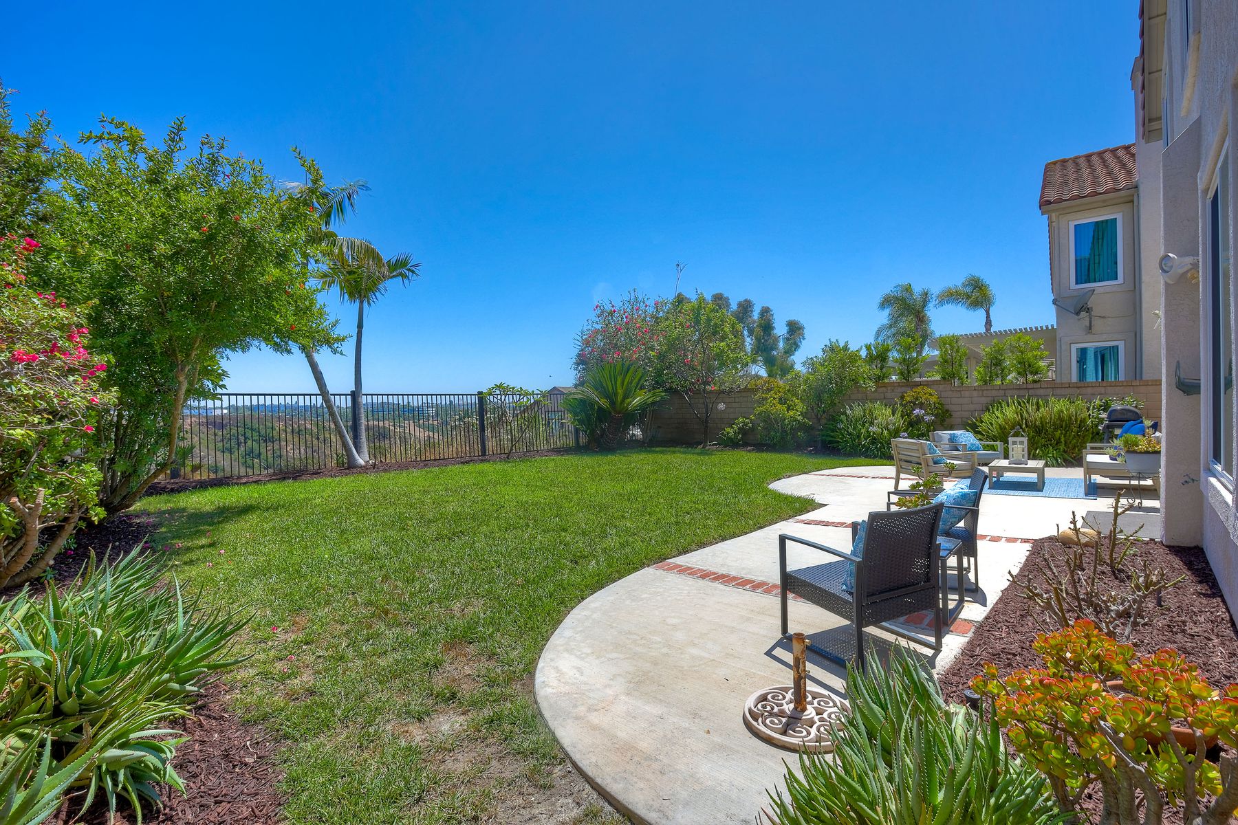 Discover the awe-inspiring canyon VIEWS that overlook the pristine Los Penasquitos Canyon Preserve! Upon entry, be prepared to be captivated by the soaring vaulted ceilings, accentuated windows that effortlessly drench the interior in natural light. Convenience meets luxury, as one bedroom and a full bathroom grace the main level, catering to multi-generational families or the need for a dedicated space for a nanny. The spacious living and family rooms serve as a seamless host for gatherings and celebrations, elevating the essence of entertainment. Warmth and charm embrace the large dining room, where a cozy fireplace, adorned with a mosaic tile surround, harmoniously blends with the breathtaking open views. A culinary enthusiast's dream, the kitchen boasts lustrous white cabinetry, elegant quartz counters, a tasteful decorative tile backsplash, and stainless steel appliances. The center island and pantry cater to both functionality and style, making meal preparation a delightful experience. The double ovens are a plus! The lavish primary bedroom is an oasis of tranquility, privacy, and awe-inspiring canyon views graced by vaulted ceilings, a spacious walk-in closet complete with shelves and drawers. The ensuite bathroom has been thoughtfully upgraded, exuding modern flair and sophistication. All bathrooms have been tastefully adorned, ensuring every moment of pampering is unparalleled. Step outside to the backyard and unwind on the spacious patio, as you bask in the ever-changing beauty of nature, mature fruit trees and savoring the captivating scenes year-round. An OWNED solar system is an added bonus! Easy access to I-5 and I-805, Rtes. 52 and 56 this facilitates seamless commuting. Indulge in the abundance of shopping, dining, and entertainment venues within arm's reach. The allure of this locale is amplified by its proximity to beaches, golf courses, and a myriad of fine dining, offering a perfect balance of relaxation, indulgence, and fun!