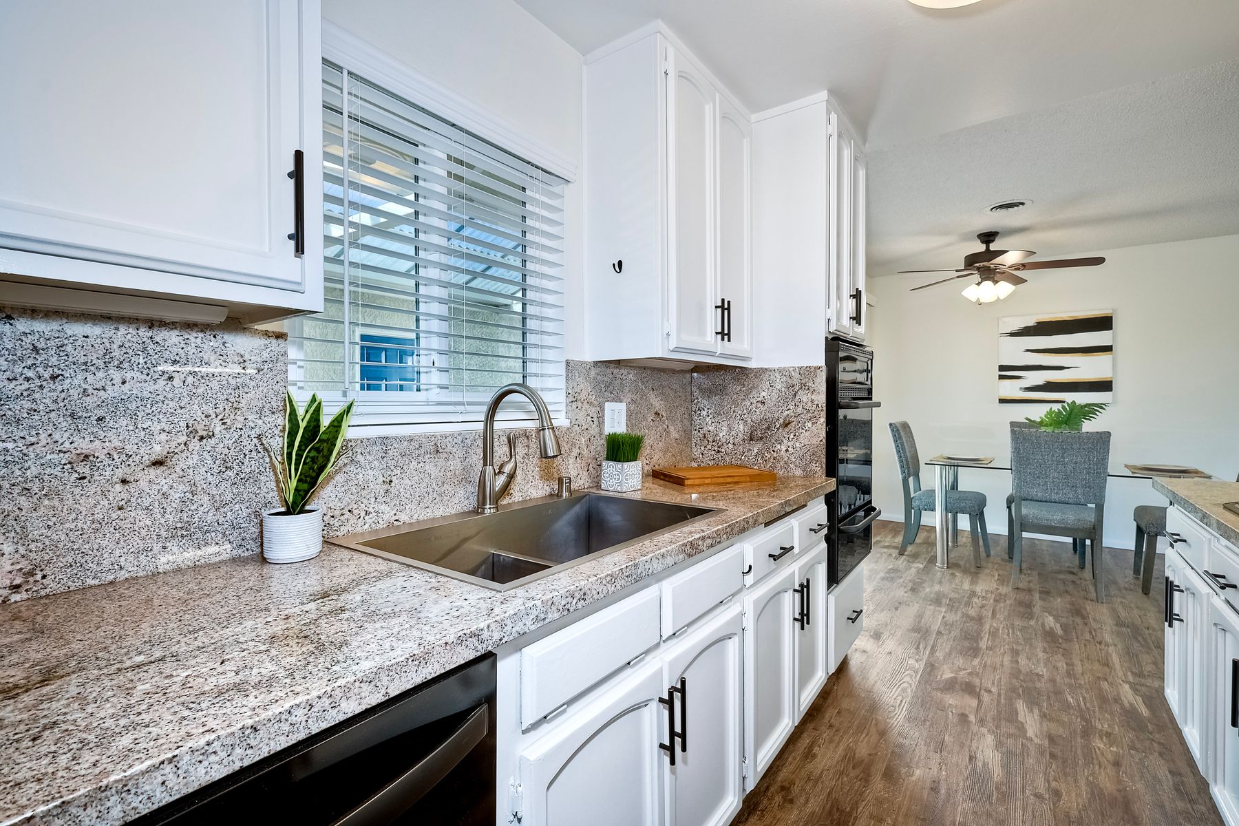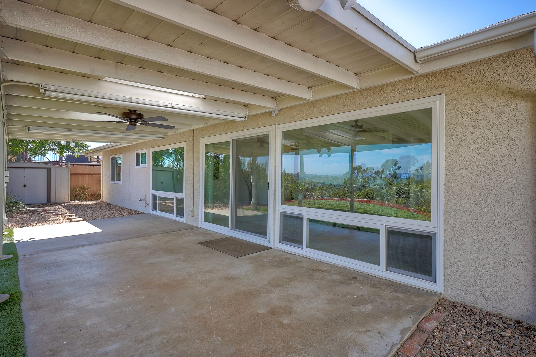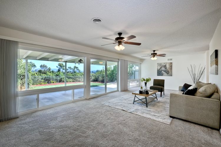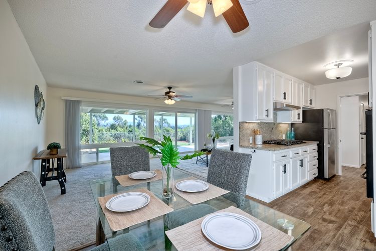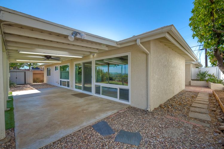 Top of the Hill! This charming, single-level, breezy hilltop home offers breathtaking easterly views of Mount Helix and the east county mountains beyond. The expansive, light-filled main living area features huge picture windows, allowing you to enjoy the vistas and soak in the scenery. The home has been updated with vinyl plank flooring, new interior paint, dual paned windows, custom lighting & ceiling fans in each room. The gorgeous kitchen features sleek granite countertops w/ full backsplash, white cabinetry w/ custom pulls, a 5 burner gas cooktop, and black stainless-steel appliances. Both bathrooms have been tastefully remodeled with custom vanities, updated lighting, and newer mirrors. The open floor plan includes a large primary bedroom with an adjoining office space, perfect for work or relaxation, along with two additional bedrooms. Step outside to the covered back patio and unwind while taking in the views or enjoy your morning coffee on the front covered patio, complete with a ceiling fan, situated between the dining room and the two-car detached garage. The spacious garage offers custom lighting and ample storage space complete with two workbenches, washer and gas dryer, all which convey with the home. Like to hike, run, bike, kayak, fish, or golf? You're covered with nearby access to Lake Murray, Mission Trails Park at Cowles Mountain and Mission Trails Golf Course. Remember the old adage, location, location, location! - You will LOVE this very quiet, tranquil, residential neighborhood; yet dining, shopping, schools, restaurants and freeways are just 2-3 minutes from home. Don’t miss out on this exceptional opportunity!