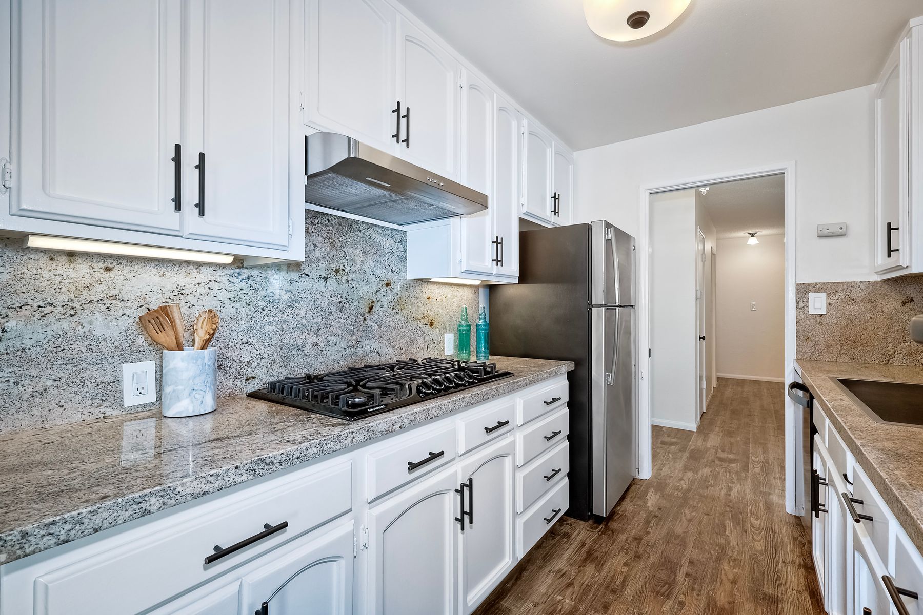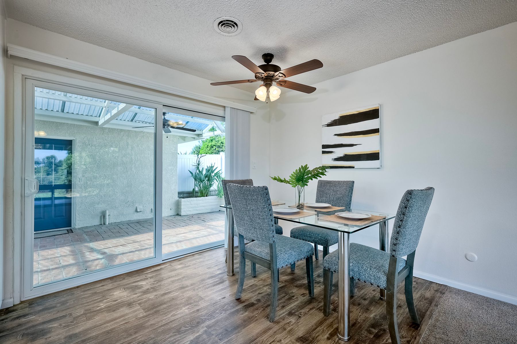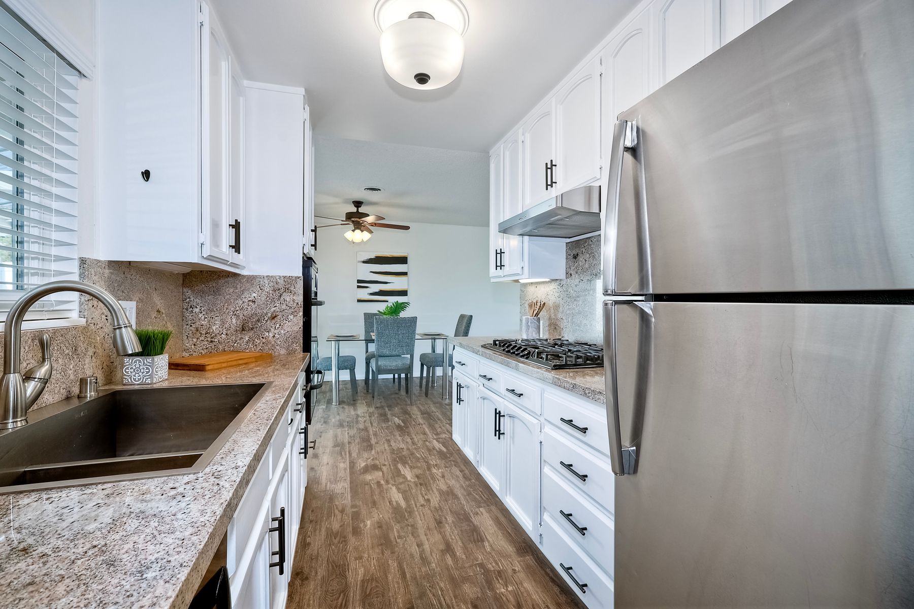 Top of the Hill! This charming, single-level, breezy hilltop home offers breathtaking easterly views of Mount Helix and the east county mountains beyond. The expansive, light-filled main living area features huge picture windows, allowing you to enjoy the vistas and soak in the scenery. The home has been updated with vinyl plank flooring, new interior paint, dual paned windows, custom lighting & ceiling fans in each room. The gorgeous kitchen features sleek granite countertops w/ full backsplash, white cabinetry w/ custom pulls, a 5 burner gas cooktop, and black stainless-steel appliances. Both bathrooms have been tastefully remodeled with custom vanities, updated lighting, and newer mirrors. The open floor plan includes a large primary bedroom with an adjoining office space, perfect for work or relaxation, along with two additional bedrooms. Step outside to the covered back patio and unwind while taking in the views or enjoy your morning coffee on the front covered patio, complete with a ceiling fan, situated between the dining room and the two-car detached garage. The spacious garage offers custom lighting and ample storage space complete with two workbenches, washer and gas dryer, all which convey with the home. Like to hike, run, bike, kayak, fish, or golf? You're covered with nearby access to Lake Murray, Mission Trails Park at Cowles Mountain and Mission Trails Golf Course. Remember the old adage, location, location, location! - You will LOVE this very quiet, tranquil, residential neighborhood; yet dining, shopping, schools, restaurants and freeways are just 2-3 minutes from home. Don’t miss out on this exceptional opportunity!