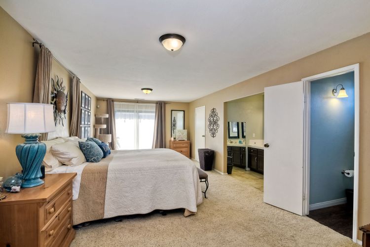 Solar Owned !! Get rid of or reduce your electric bills. Original Owner!! Large open floor plan SINGLE STORY family home on a quiet cul de sac. 2 car garage with roll up door, fenced backyard with space for a garden or hot tub, air conditioned, security system, vaulted ceilings, kitchen pantry, separate laundry with built in shelving, fireplace in living room, large GREAT ROOM, spacious master suite with walk in closet, dual vanity sinks and separate commode and shower for privacy. Neighborhood park with Greenbelt right out your front door. LOCATION, LOCATION, LOCATION !!! Your new home is nestled in a beautiful area close to shopping, freeways and schools with college campus' just a few minutes away. Come see the opportunity that awaits!