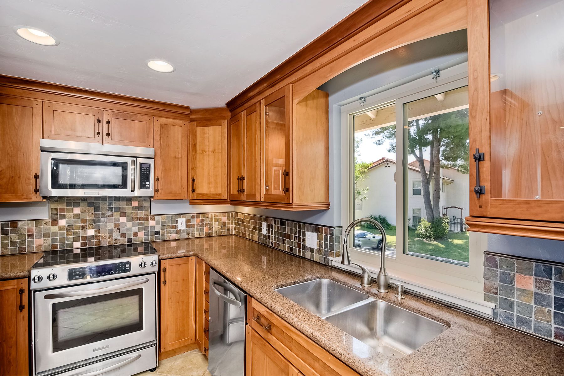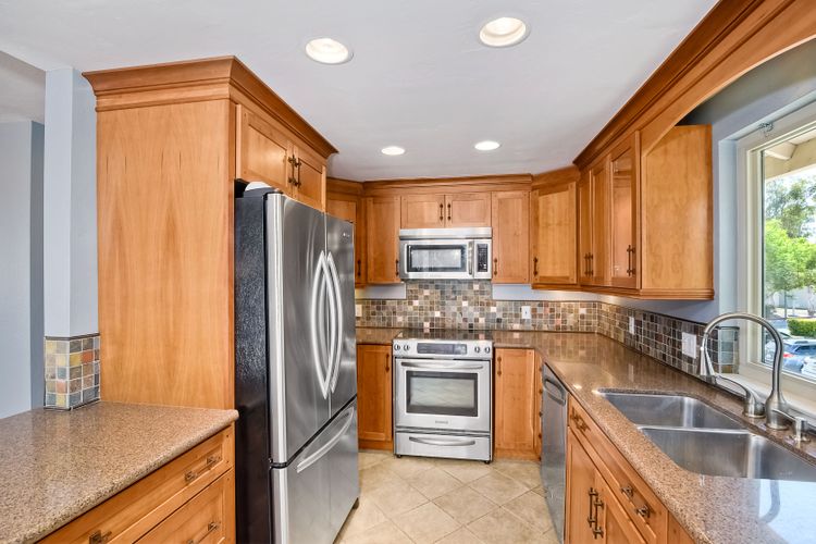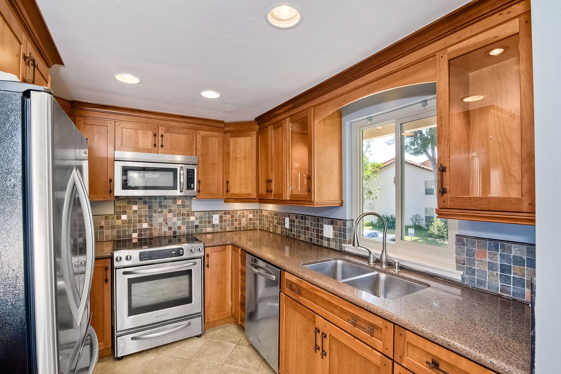 Best value in the highly desirable La Costa Meadowridge community. This home offers 2 bedrooms, 2 full baths, a 1 car attached garage plus a reserved parking space. New kitchen with granite, new carpet & paint, laminate floors. Located at the end of a cul-de-sac on a quiet tree lined street with no one behind you, great views from the family room. 2 community pools, 2 tennis courts, lush mature landscaping, water is included in monthly HOA's. 20x6 deeded storage room at bottom of stairs on the right side. Neighborhoods: MEADOWRIDGE Equipment: Dryer,Garage Door Opener, Washer Other Fees: 0 Sewer: Sewer Connected Topography: LL