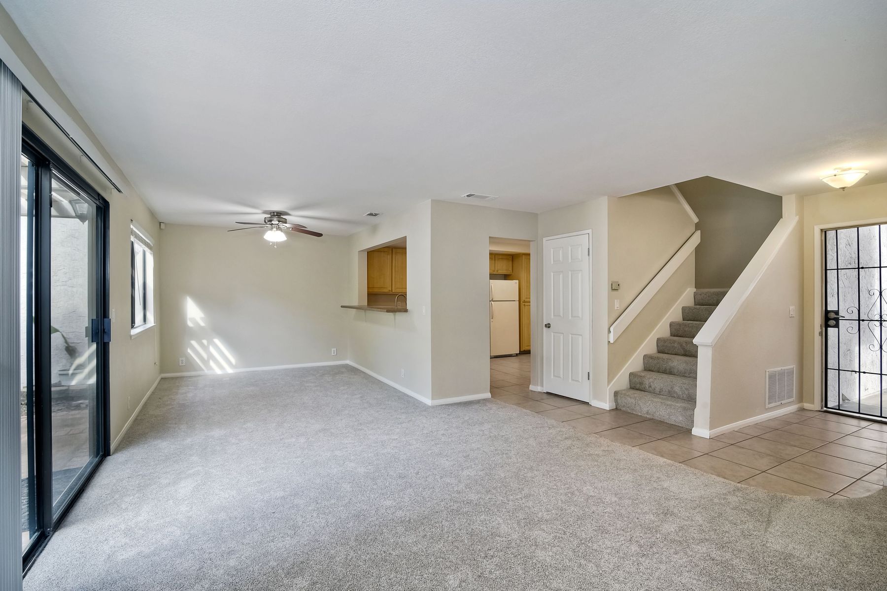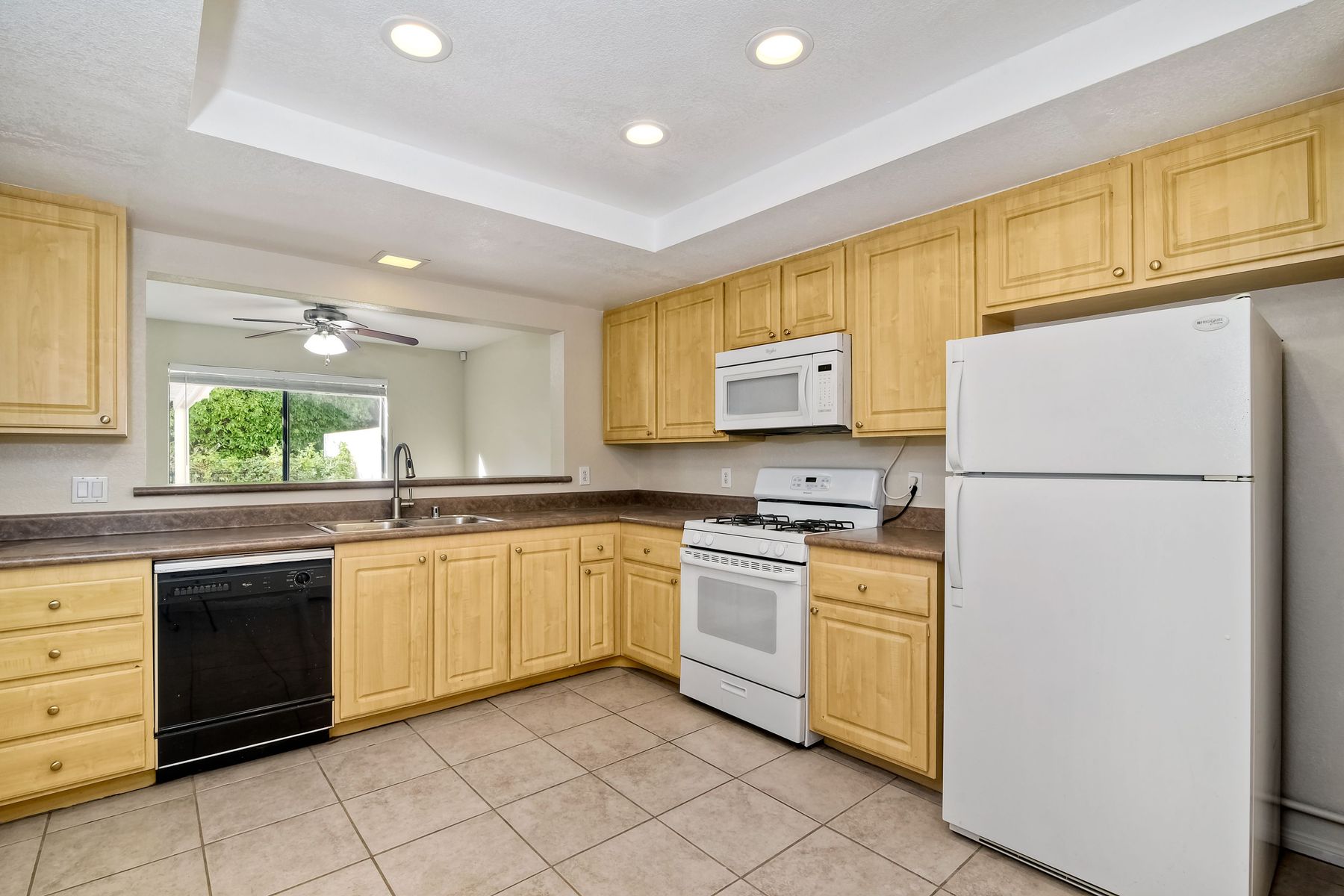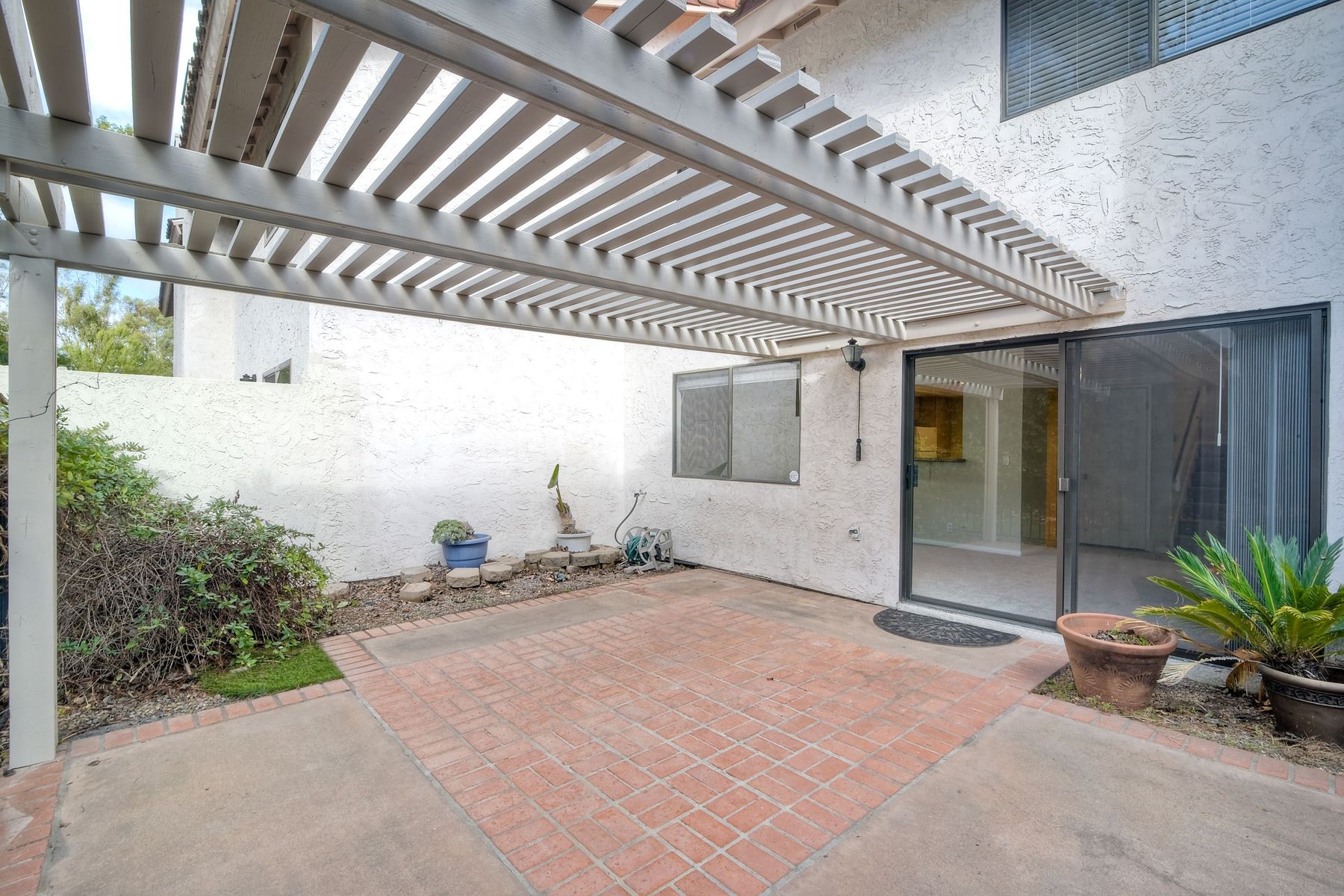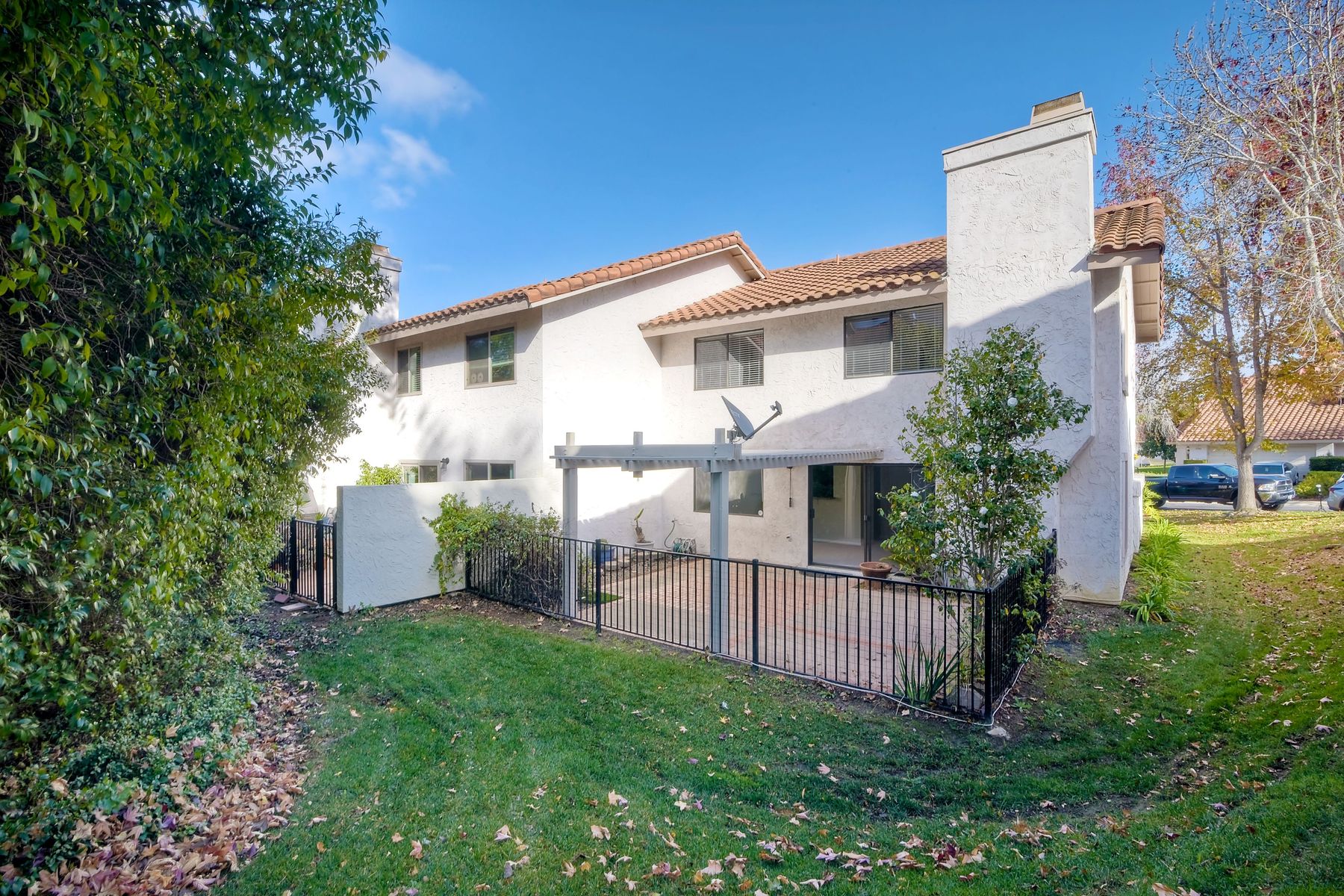 Located on a quiet tree lined street with lush landscaping this home has it all. End unit with large greenbelt, light & bright, new flooring & paint, fenced in rear patio, 2 car garage with long driveway for extra parking. Complex features 2 pools, 2 tennis courts, water is included in HOA. This home & complex is a must see!