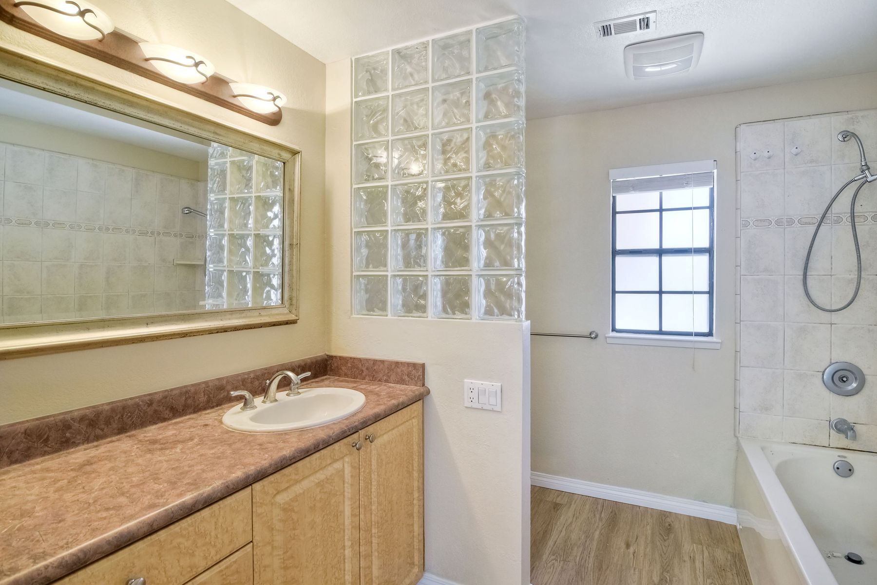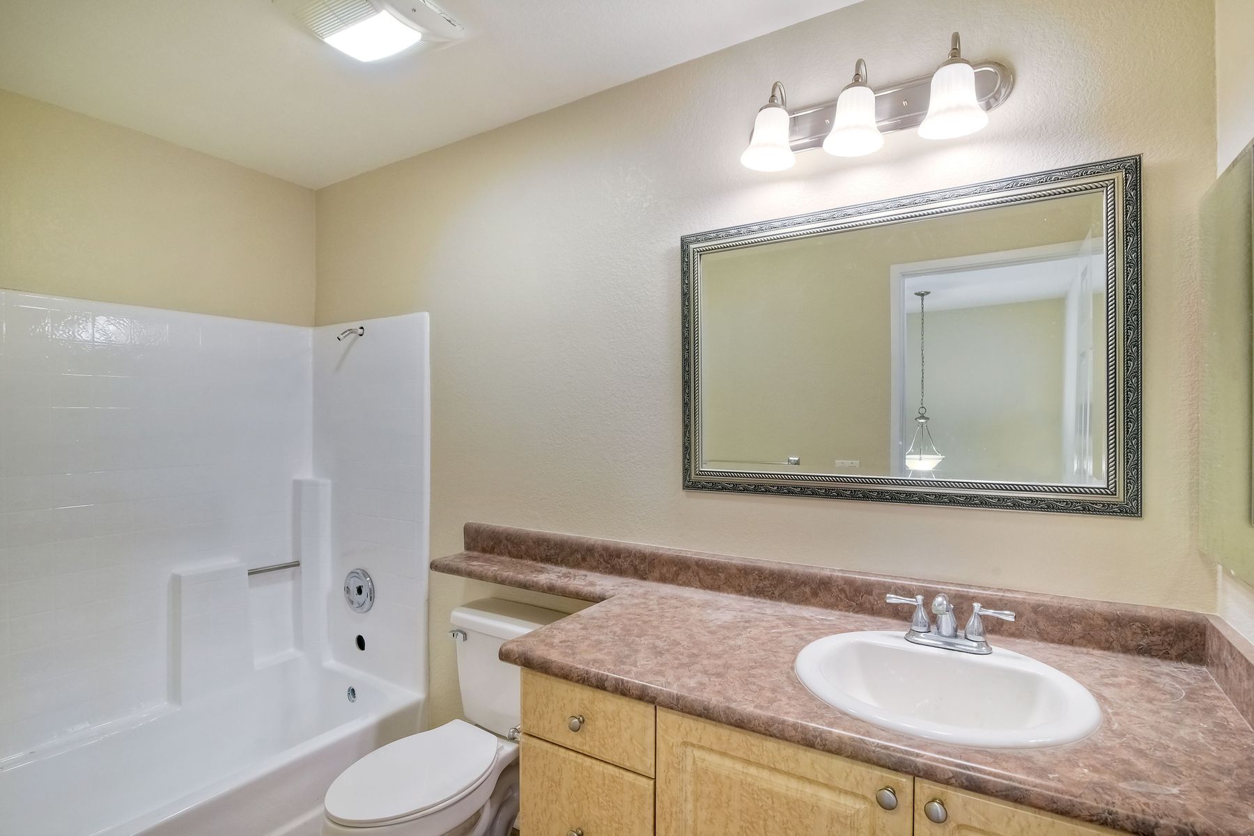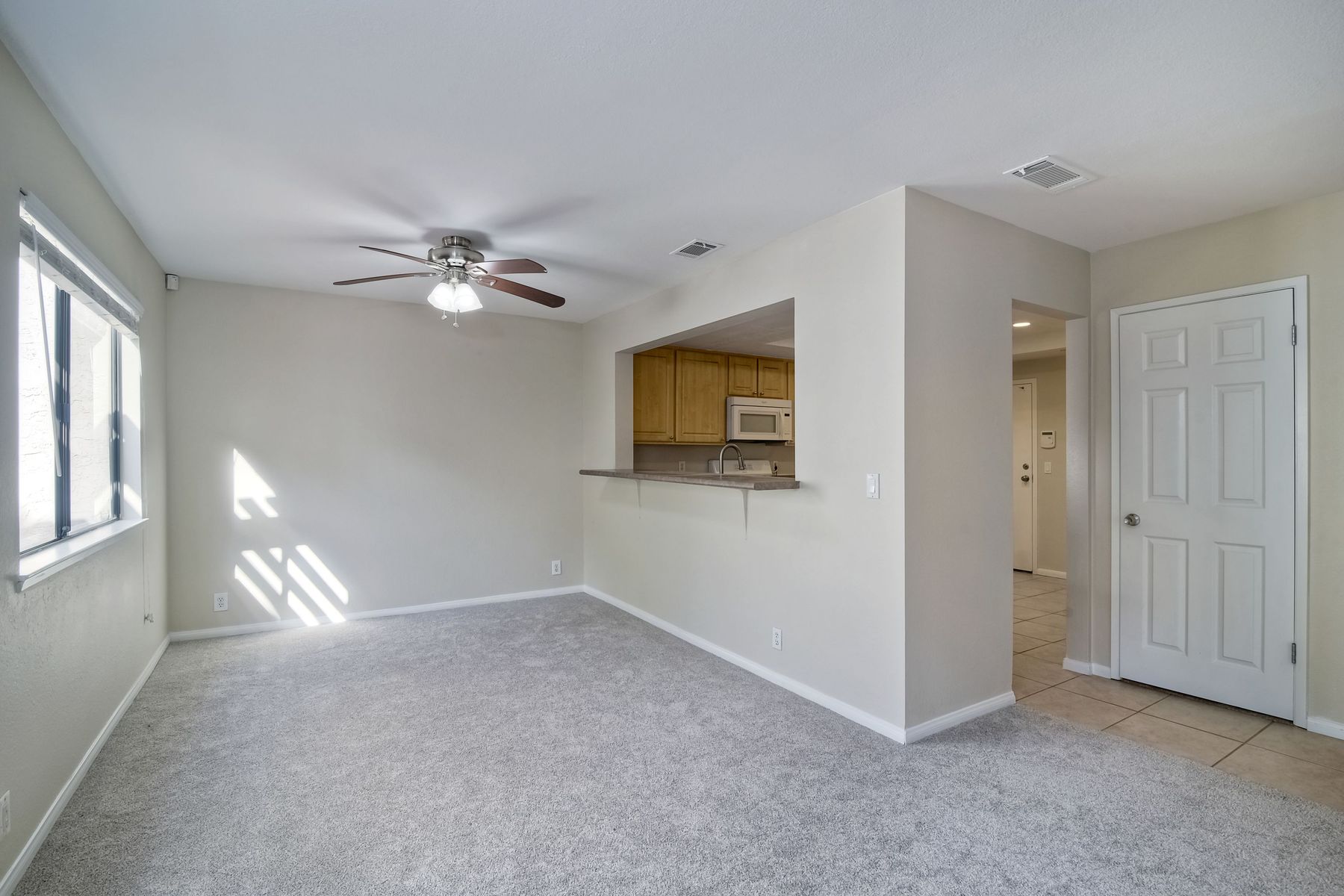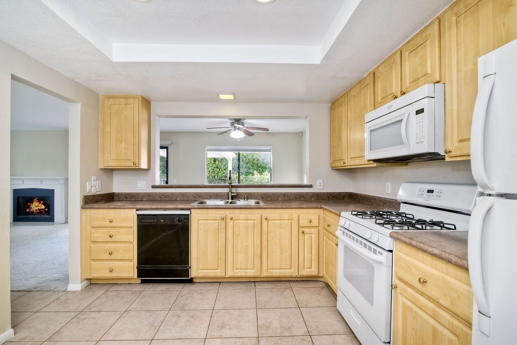 Located on a quiet tree lined street with lush landscaping this home has it all. End unit with large greenbelt, light & bright, new flooring & paint, fenced in rear patio, 2 car garage with long driveway for extra parking. Complex features 2 pools, 2 tennis courts, water is included in HOA. This home & complex is a must see!