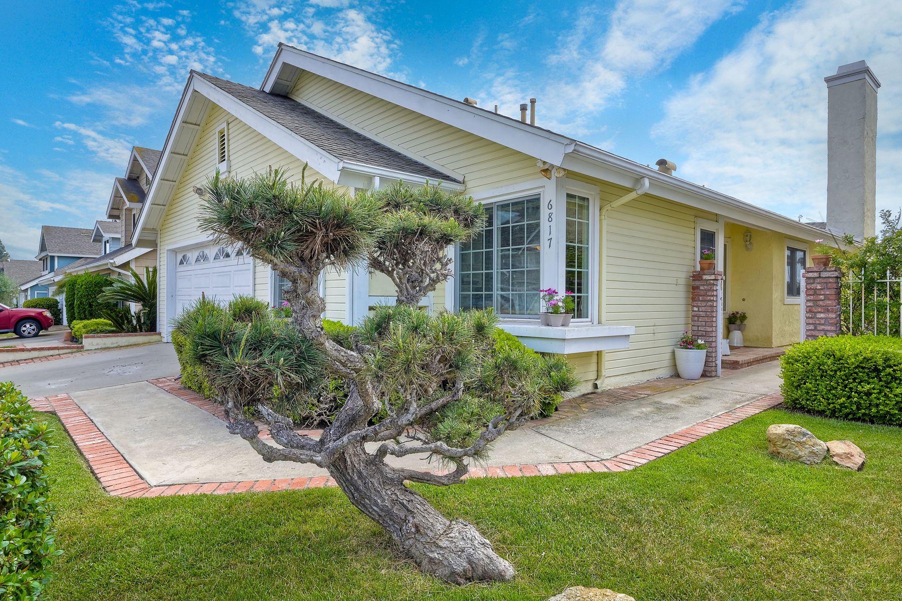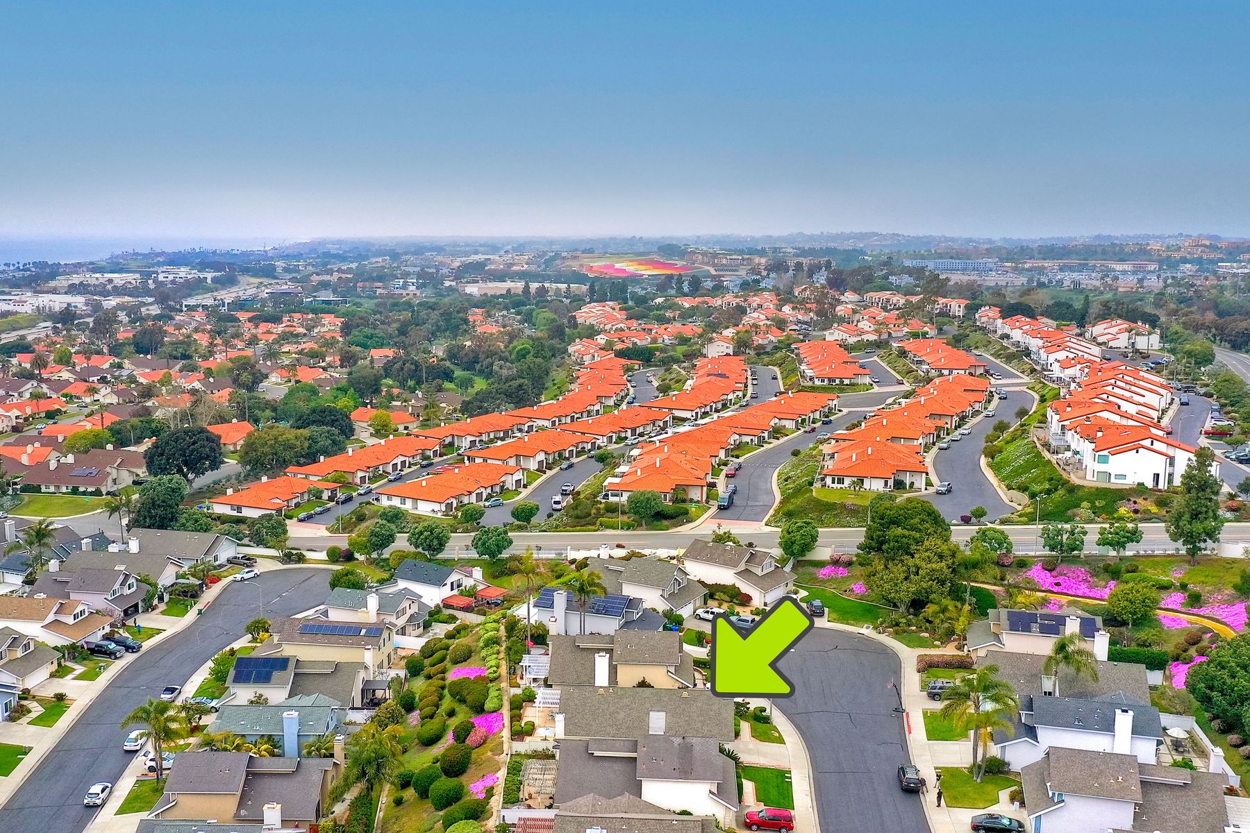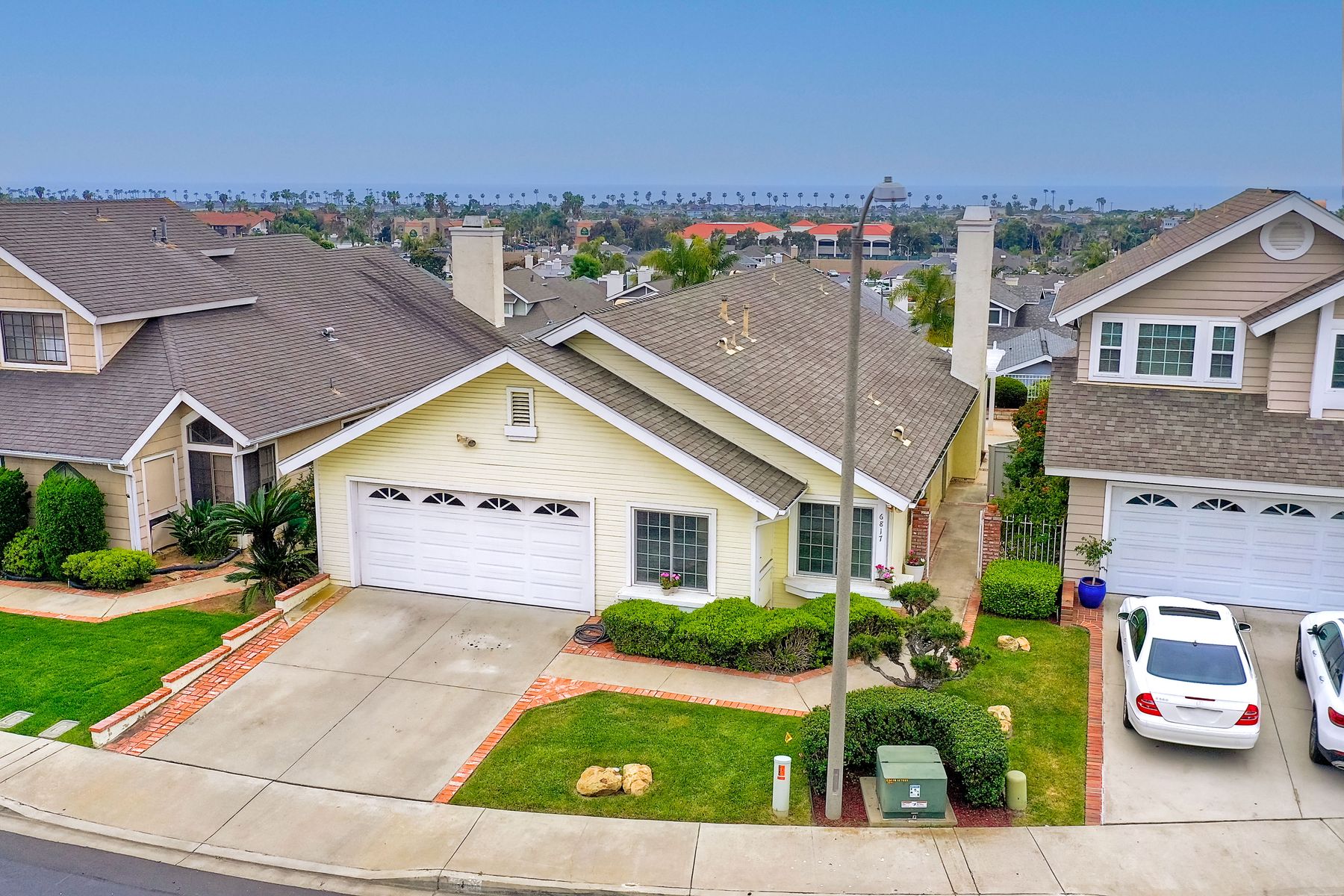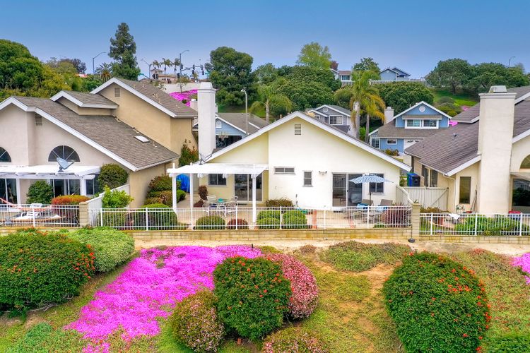 Detached ONE story home with OCEAN & SUNSET VIEWS from the highest street in Harbor Pointe ** This desirable coastal hillside GATED community is less than a mile from So. Carlsbad’s beach campground & within 5 miles of downtown Carlsbad or Encinitas ** 6817 WATERCOURSE DR sits near the end of the CULDESAC & is ELEVATED above the homes below (HOA maintains the beautiful slope) ** Ocean is visible from the Dining, Family, Master Suite & even the kitchen table ** FLOORPLAN LAYOUT (1246 sf) = 2 Bed + Office (or 3rd bedroom option) + 2 Full Bath + Interior Courtyard ** Spacious 2 CAR attached garage (extra room for workshop) ** Community POOL/SPA one block away ** Low HOA & NO Mello Roos ** Pacific Rim Elementary is just a few blocks away