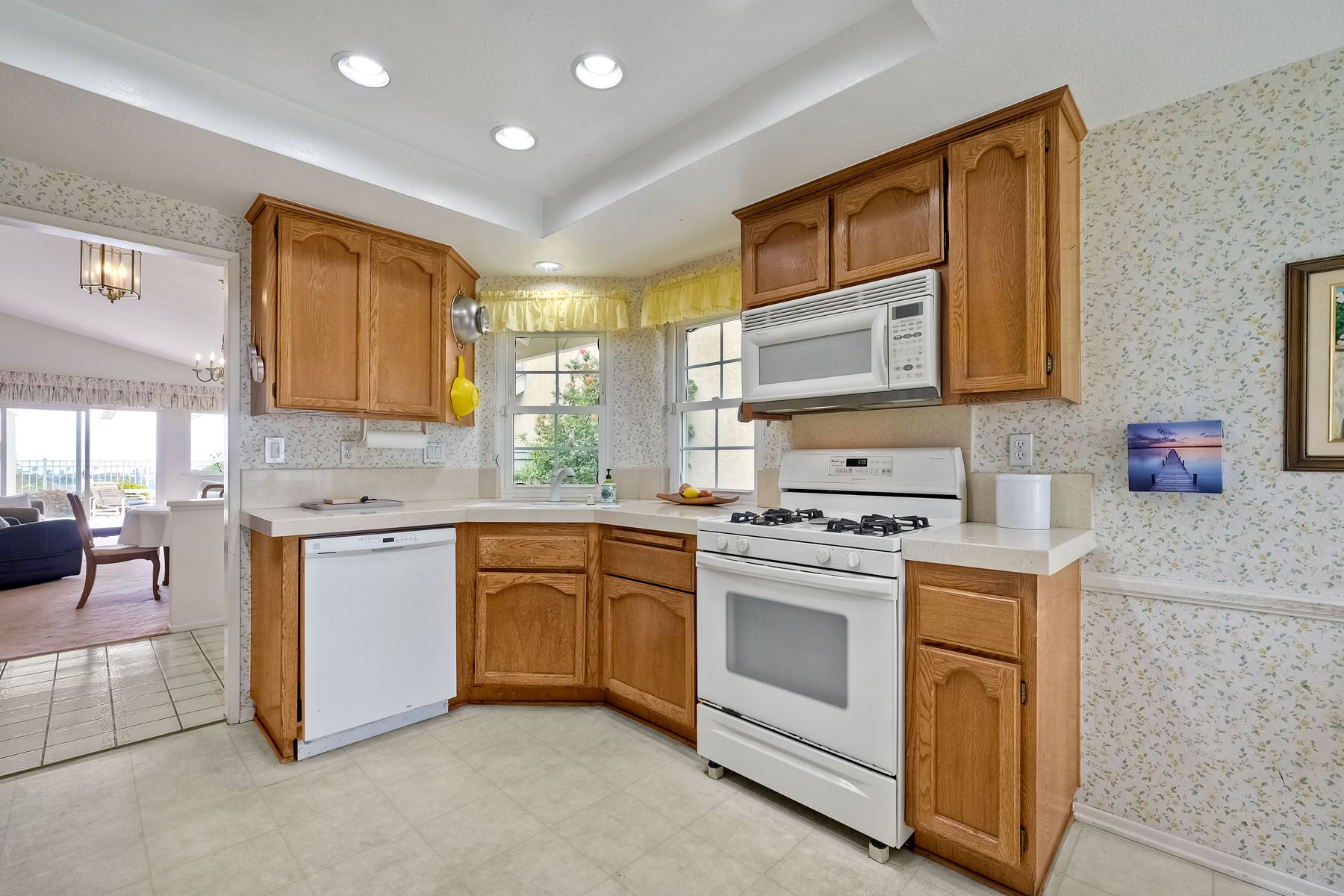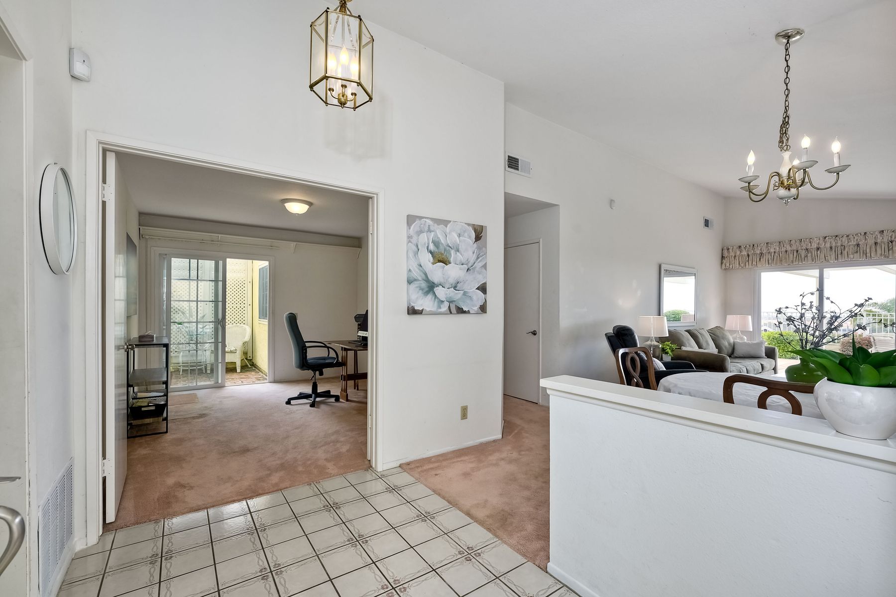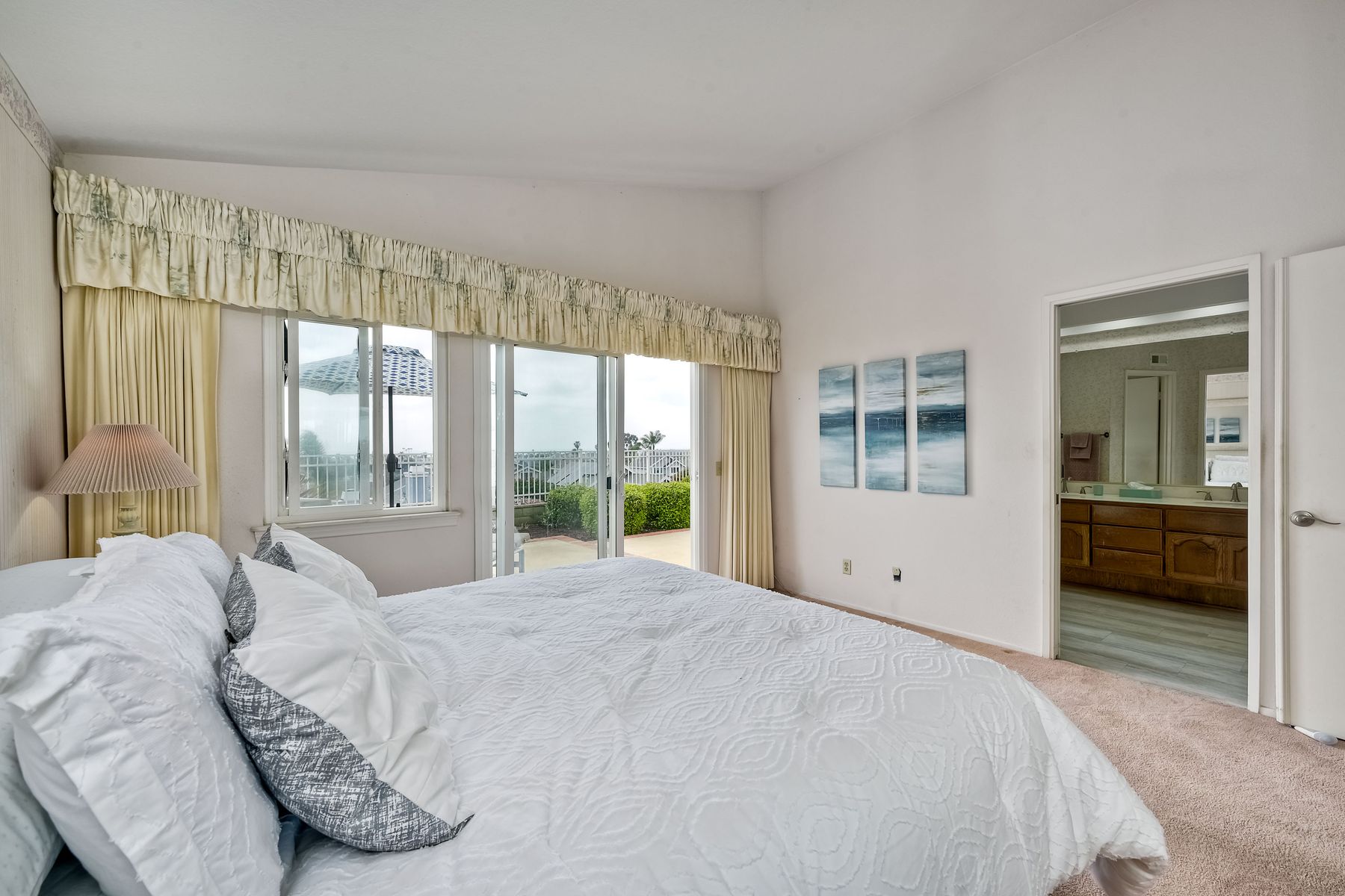 Detached ONE story home with OCEAN & SUNSET VIEWS from the highest street in Harbor Pointe ** This desirable coastal hillside GATED community is less than a mile from So. Carlsbad’s beach campground & within 5 miles of downtown Carlsbad or Encinitas ** 6817 WATERCOURSE DR sits near the end of the CULDESAC & is ELEVATED above the homes below (HOA maintains the beautiful slope) ** Ocean is visible from the Dining, Family, Master Suite & even the kitchen table ** FLOORPLAN LAYOUT (1246 sf) = 2 Bed + Office (or 3rd bedroom option) + 2 Full Bath + Interior Courtyard ** Spacious 2 CAR attached garage (extra room for workshop) ** Community POOL/SPA one block away ** Low HOA & NO Mello Roos ** Pacific Rim Elementary is just a few blocks away