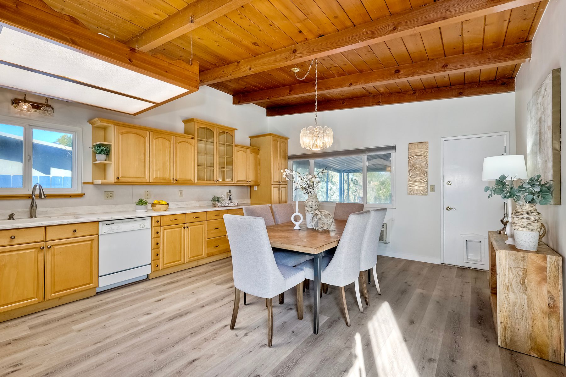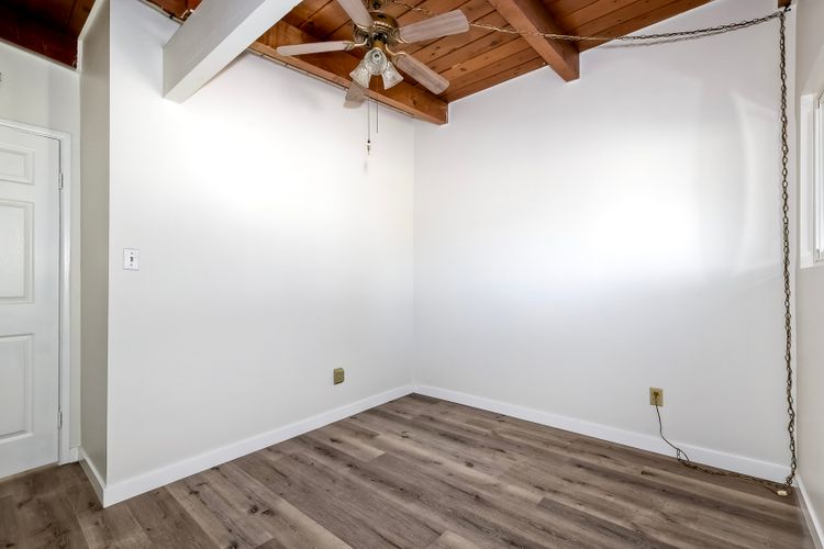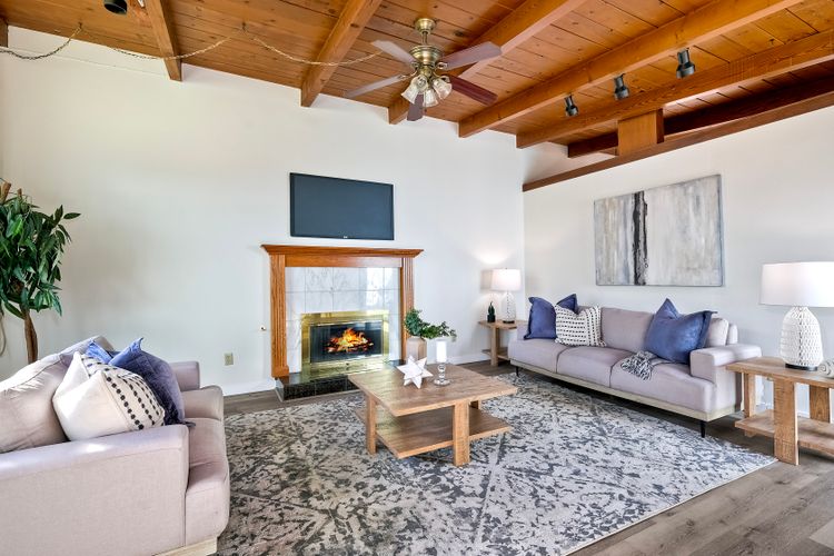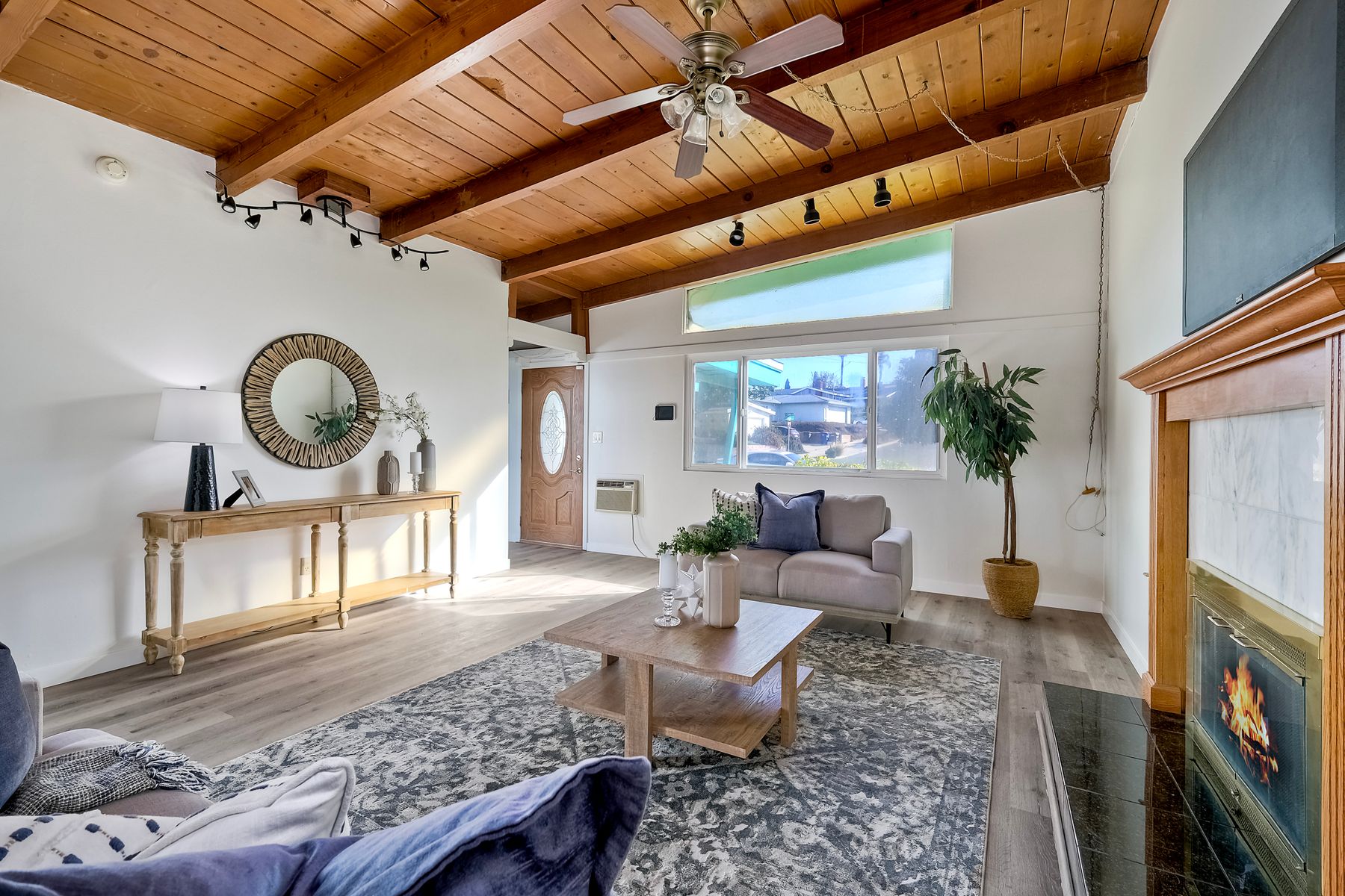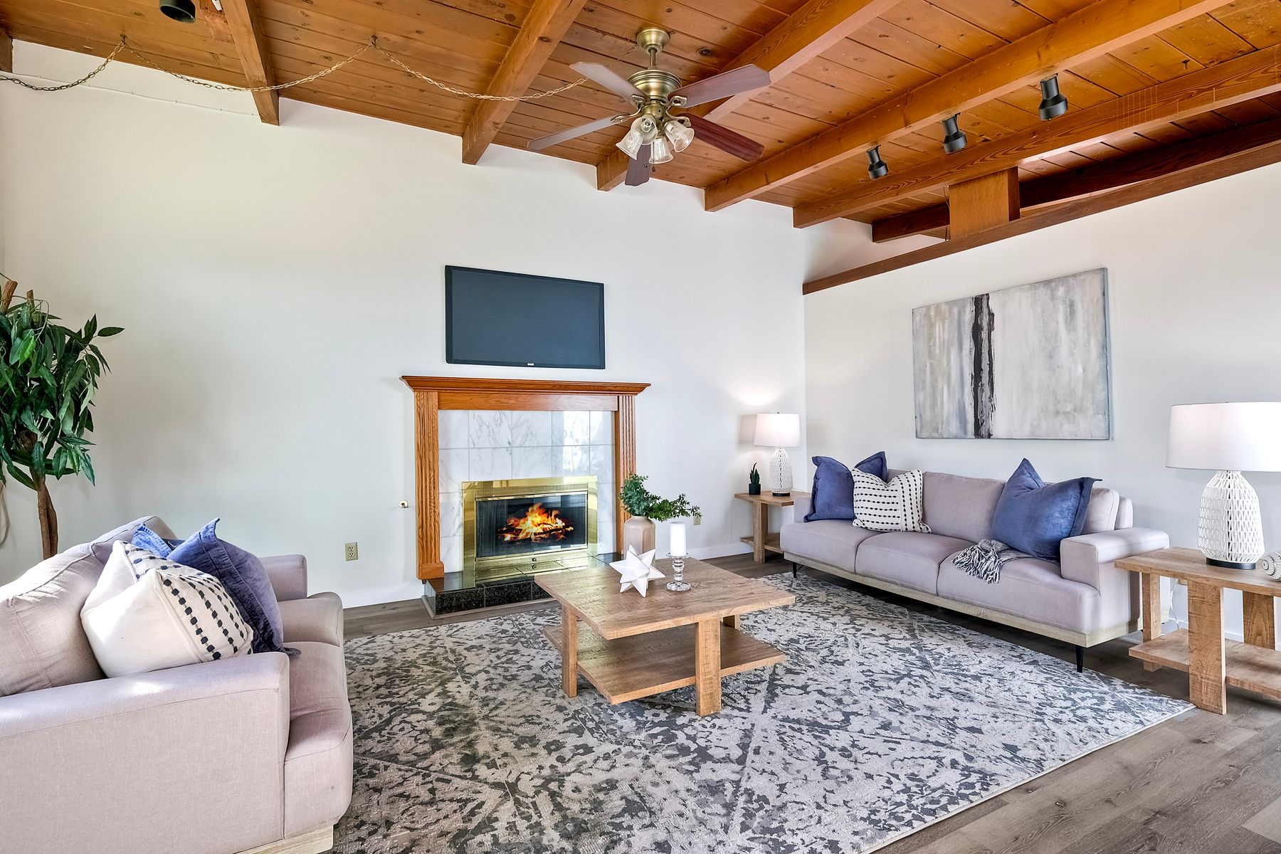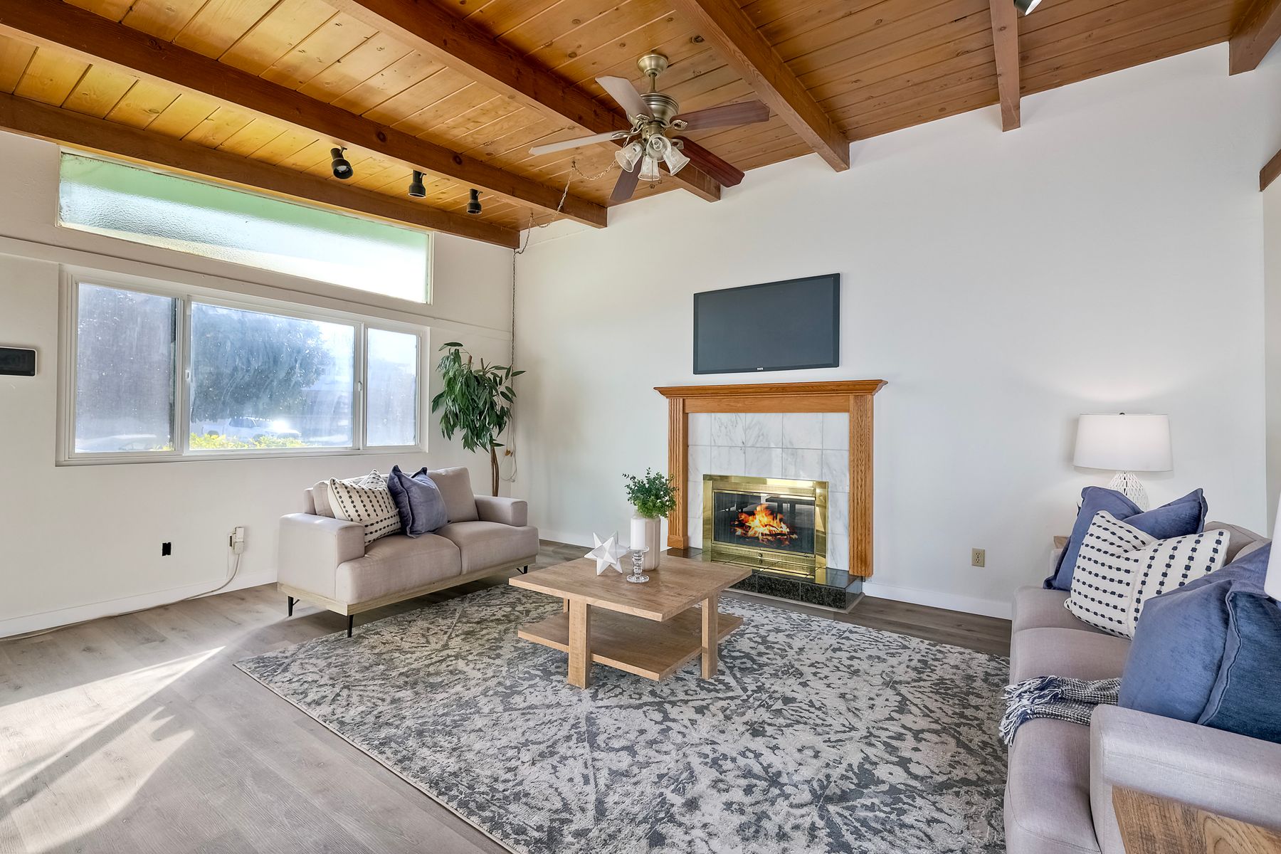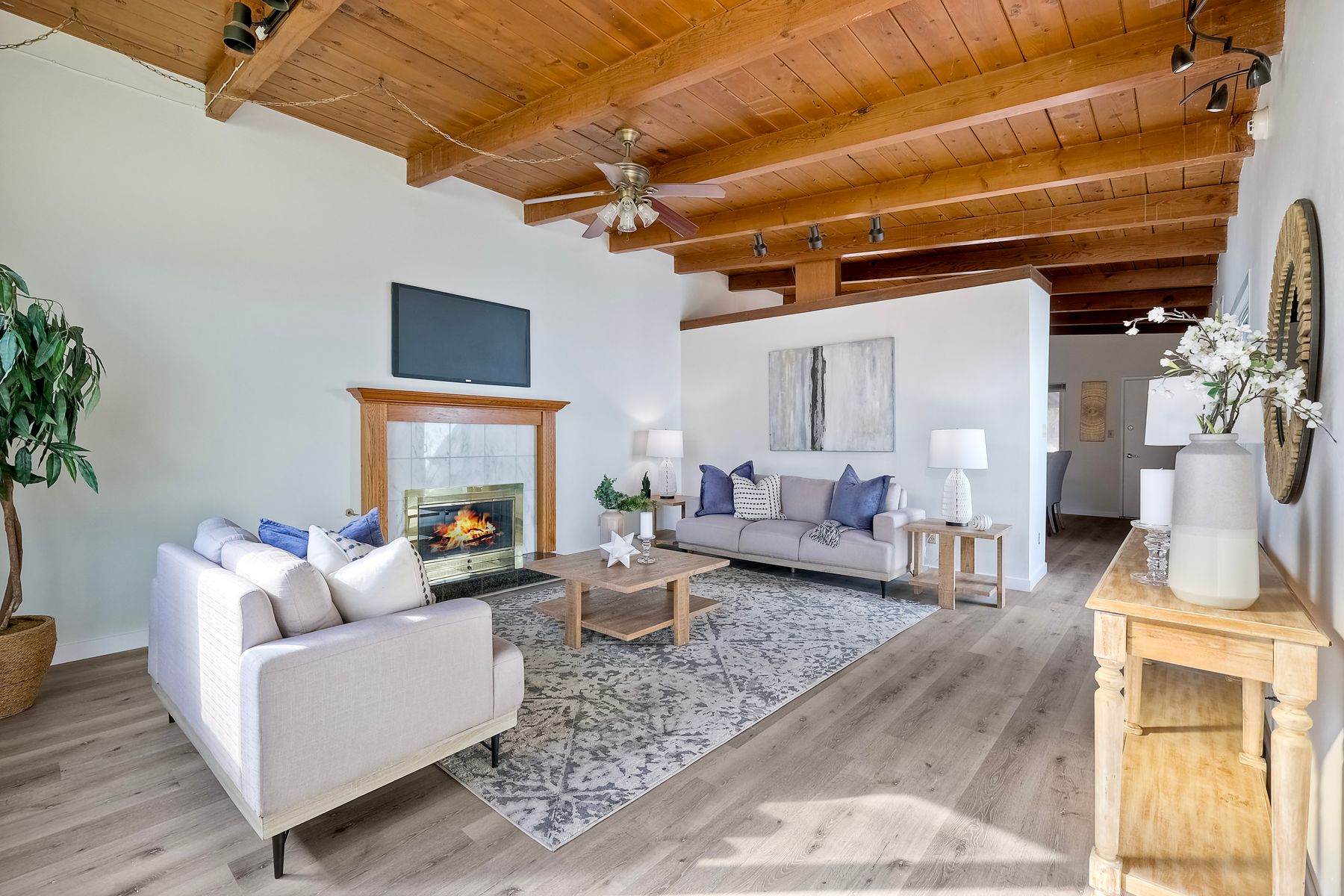 Welcome Home!This charming retreat features a beautifully landscaped front yard with low-maintenance turf and a brick-paved driveway. Inside, fresh paint and luxury vinyl plank floors create a modern yet cozy ambiance. The living room boasts exposed beam ceilings and a fireplace, while the oversized kitchen offers ample counter space, cabinetry, and an eat-in area. All bedrooms showcase charming, exposed beam ceilings. Enjoy outdoor living with a sun-drenched courtyard and enclosed patio. Dual-pane windows add energy efficiency and comfort. Thoughtful updates meet timeless design—schedule your tour today!