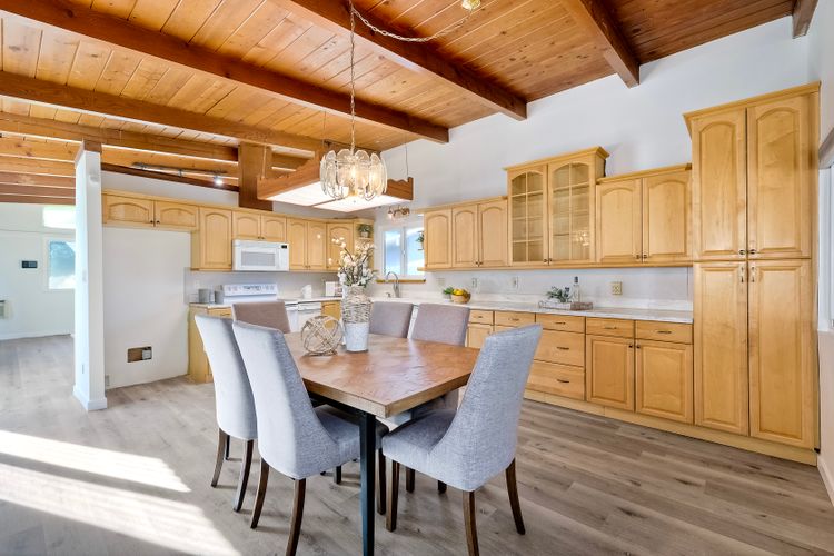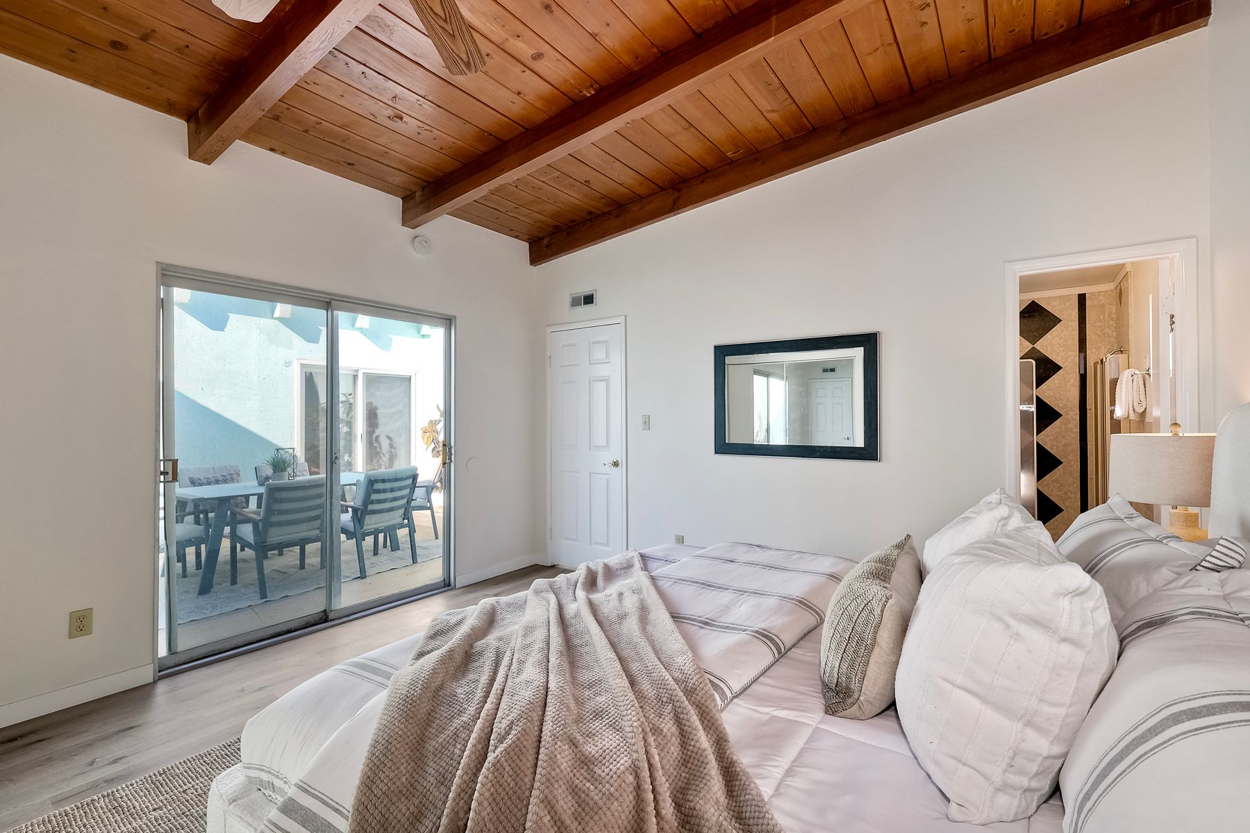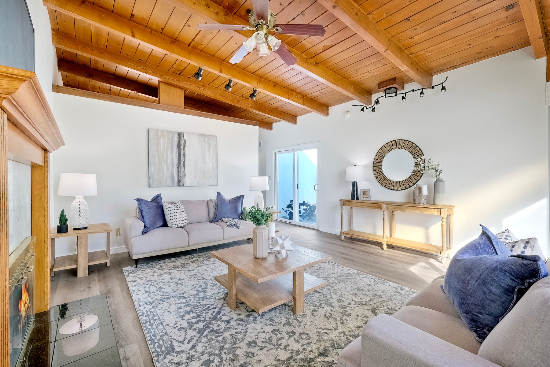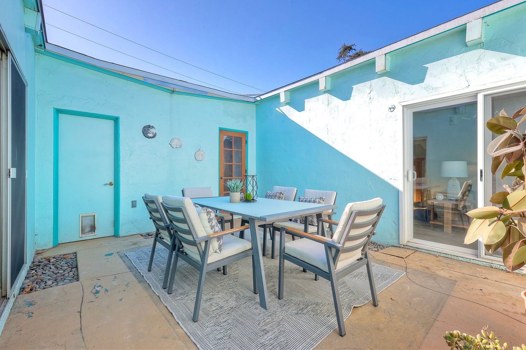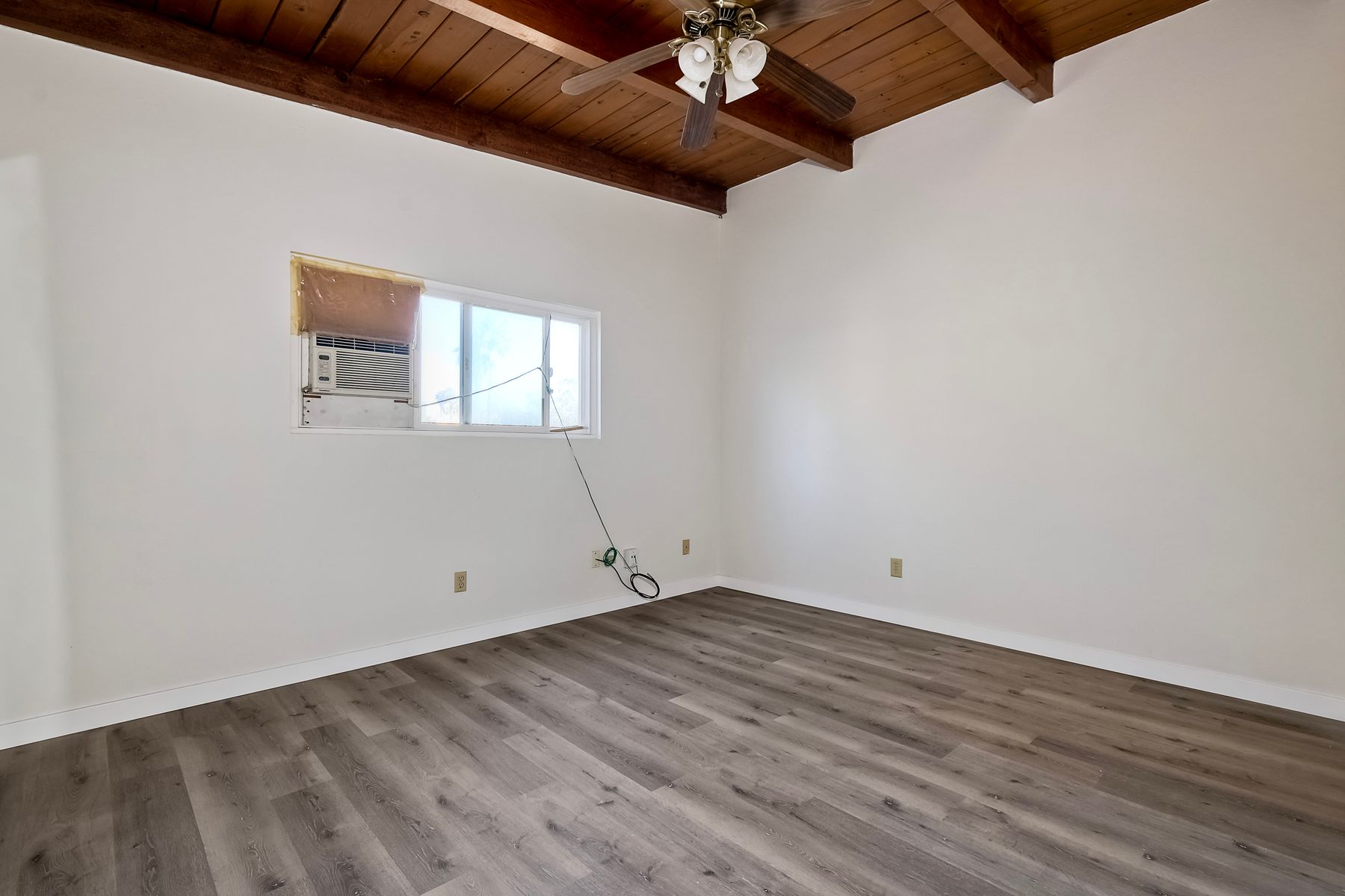 Welcome Home!This charming retreat features a beautifully landscaped front yard with low-maintenance turf and a brick-paved driveway. Inside, fresh paint and luxury vinyl plank floors create a modern yet cozy ambiance. The living room boasts exposed beam ceilings and a fireplace, while the oversized kitchen offers ample counter space, cabinetry, and an eat-in area. All bedrooms showcase charming, exposed beam ceilings. Enjoy outdoor living with a sun-drenched courtyard and enclosed patio. Dual-pane windows add energy efficiency and comfort. Thoughtful updates meet timeless design—schedule your tour today!