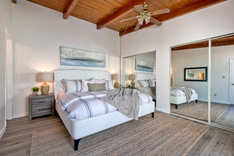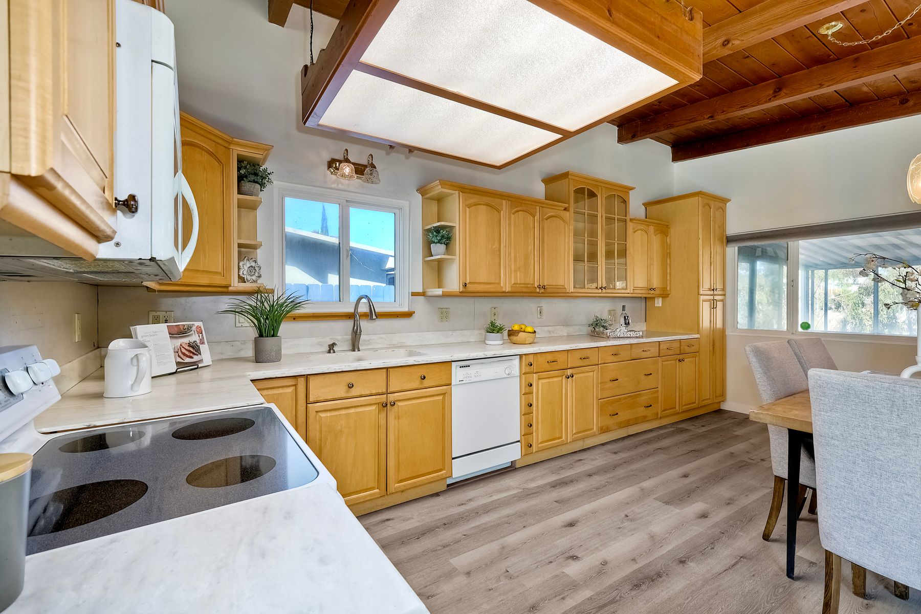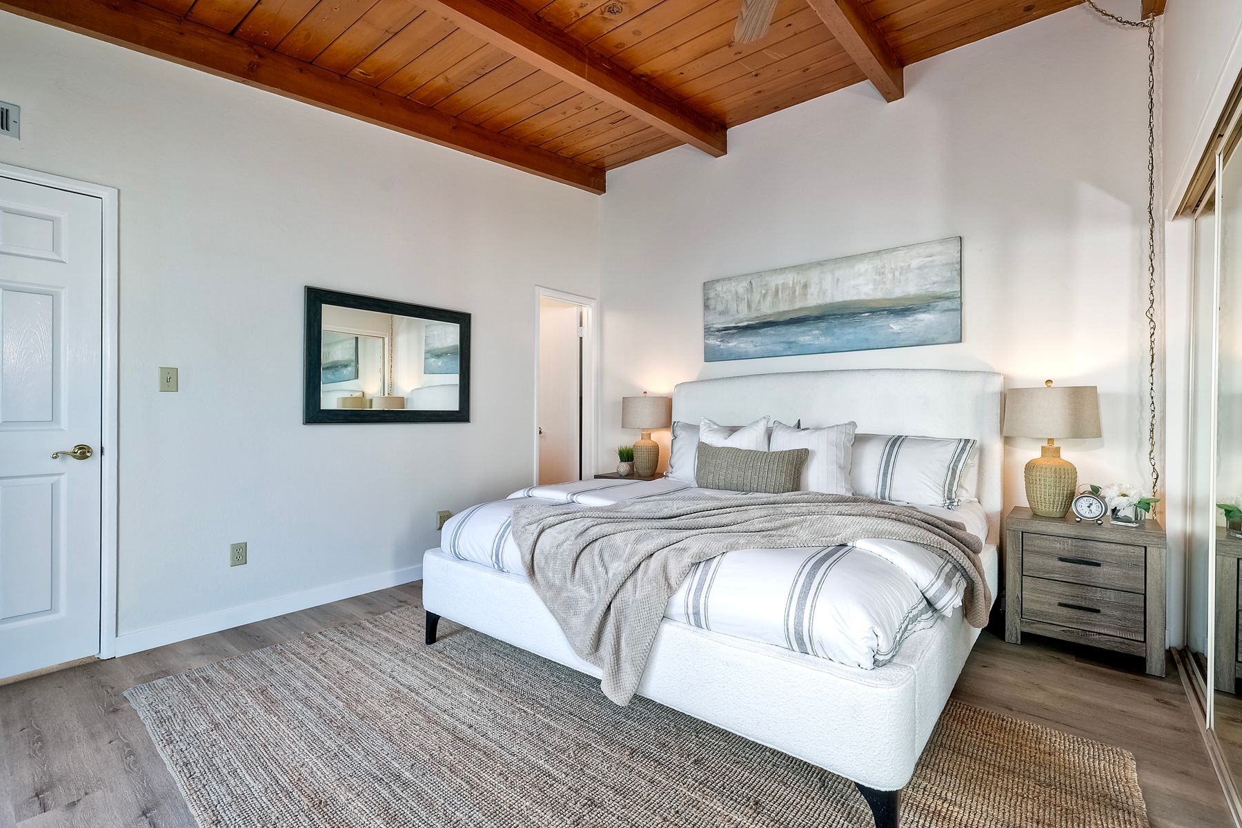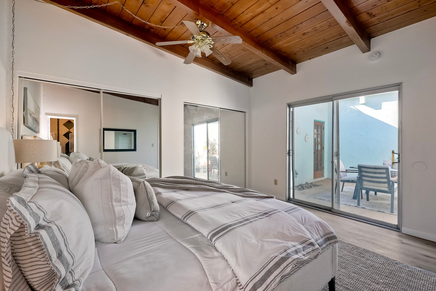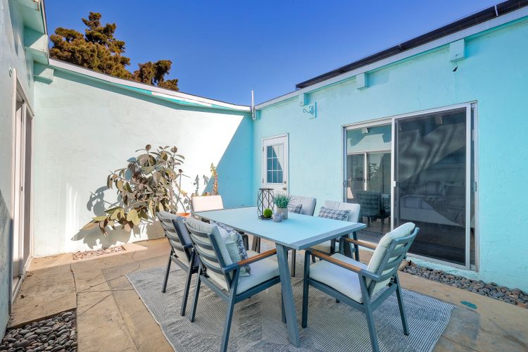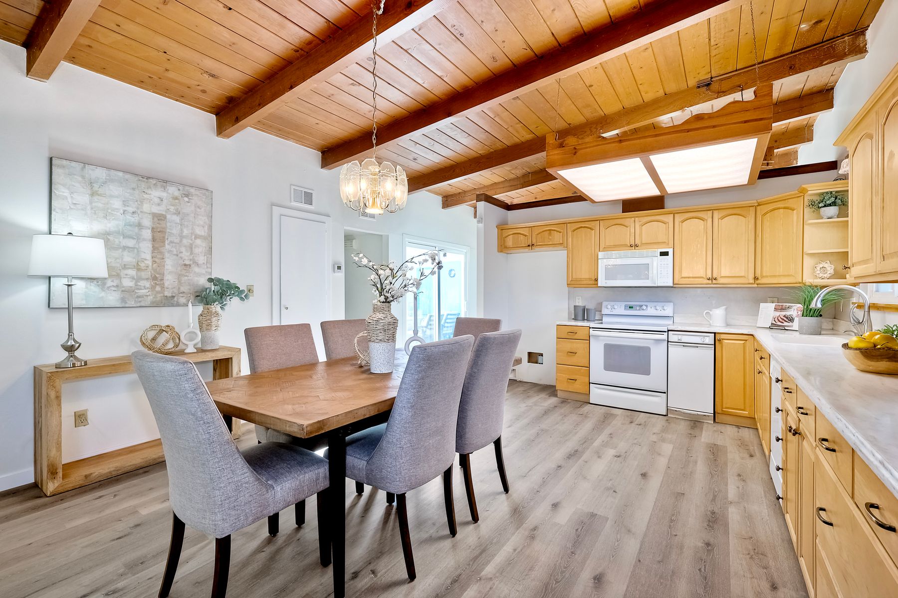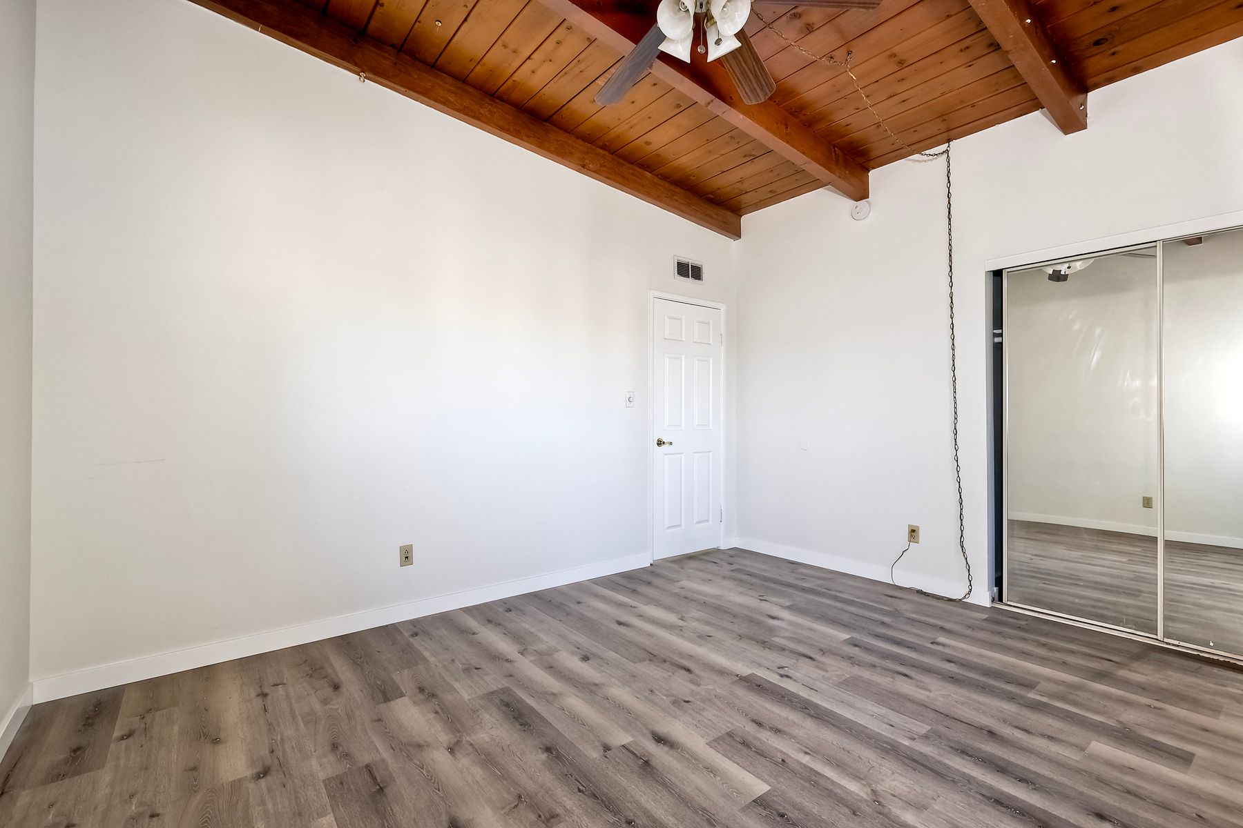 Welcome Home!This charming retreat features a beautifully landscaped front yard with low-maintenance turf and a brick-paved driveway. Inside, fresh paint and luxury vinyl plank floors create a modern yet cozy ambiance. The living room boasts exposed beam ceilings and a fireplace, while the oversized kitchen offers ample counter space, cabinetry, and an eat-in area. All bedrooms showcase charming, exposed beam ceilings. Enjoy outdoor living with a sun-drenched courtyard and enclosed patio. Dual-pane windows add energy efficiency and comfort. Thoughtful updates meet timeless design—schedule your tour today!