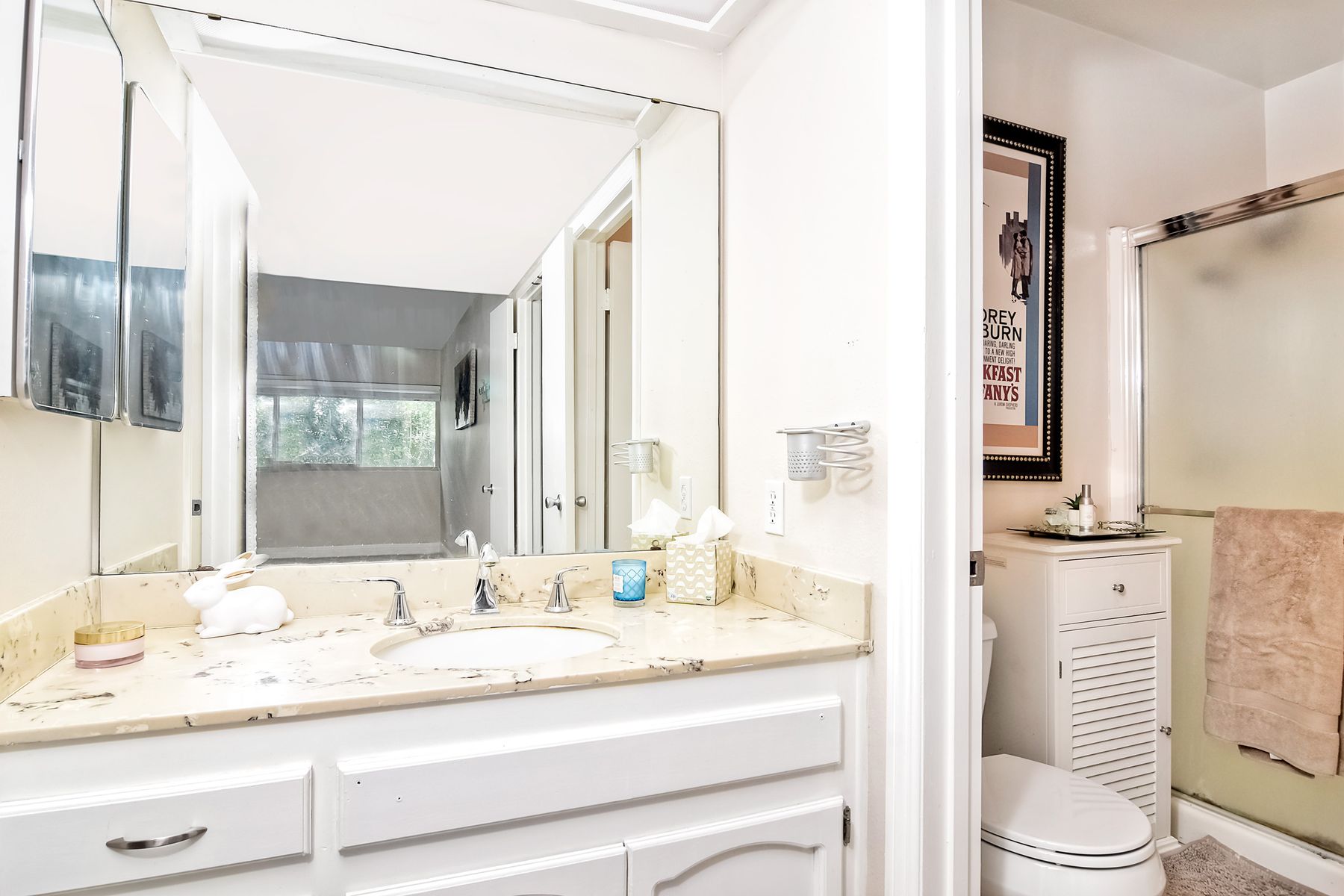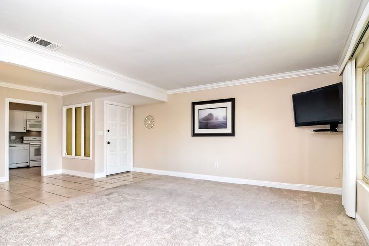 This private, upper level, end unit enjoys a south/east exposure and overlooks a lovely residential neighborhood. Flooded with tons of light, plenty of street parking, shade trees & views of the distant mountains, this is quite possibly the best location in the community! This home features dual pane windows, newer carpet, crown molding, and a beautifully remodeled kitchen with an abundance of cabinets and counter space. The master bedroom is spacious, and the walk-in closet is awesome! Close to schools! Virtual staging used in bedrooms and Living room/dining room photos