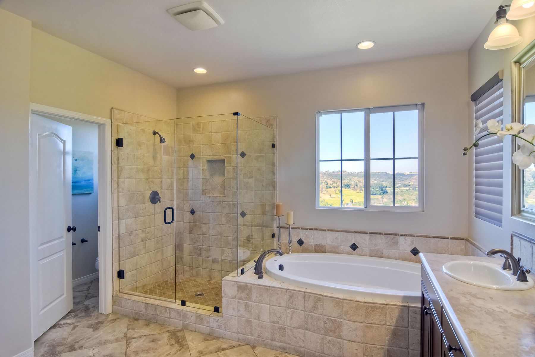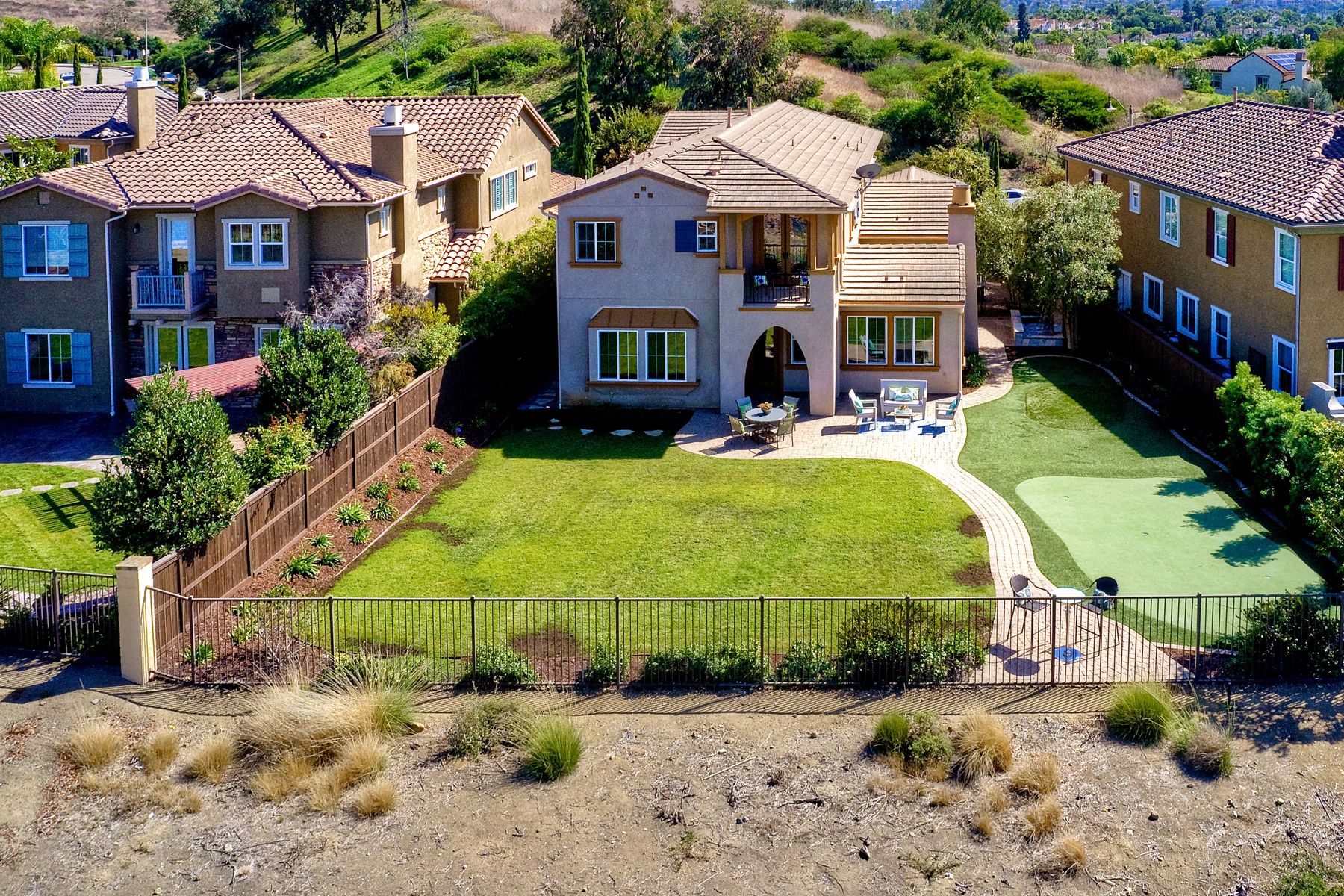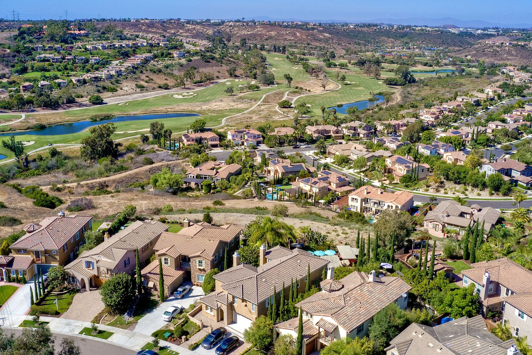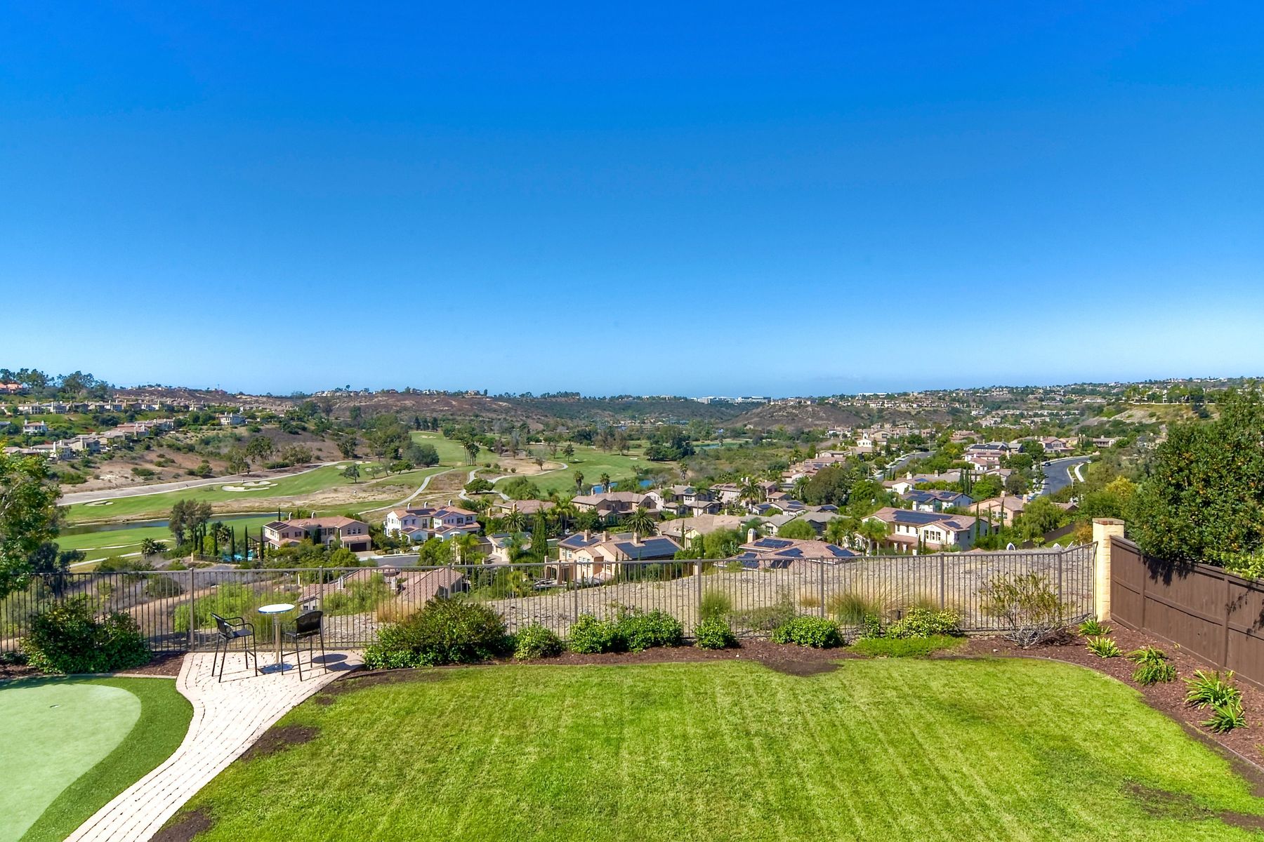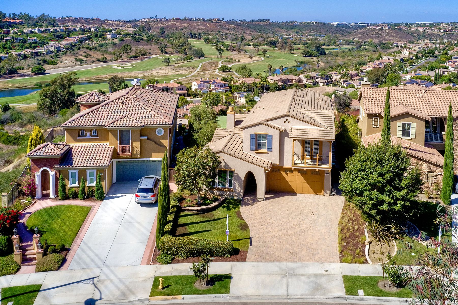 The jewel of La Costa Greens. Large flat pool sized yard, amazing golf course views, model perfect, open floor plan, lots of natural light. Huge chef's kitchen with large island and an eat-in kitchen, Thermador S/S appliances, wine fridge, butlers pantry, downstairs bedroom w/full bath & office, bonus room, spa-like master bath w/soaking tub & walk-in shower, new paint & flooring throughout. Spacious backyard with westerly views of the La Costa Resort golf course. Putting green, courtyard w/ (see supp) fire pit and water feature. Access to The Presidio which offers a 25 meter heated swimming pool, cabanas, hot tub, gym, and a clubhouse that you can rent out for events. Tennis and pickle ball courts, large grassy area with tot lot, HOA hosted seasonal events/parties. Close to Alga Norte Park which features dog park, ballfields, skate park, playgrounds, & aquatic center. Restaurants, shopping, Cinepolis movie theaters close by.. Neighborhoods: LA COSTA GREENS Complex Features: ,,,,,, Equipment: Garage Door Opener Other Fees: 0 Sewer: Sewer Connected Topography: LL