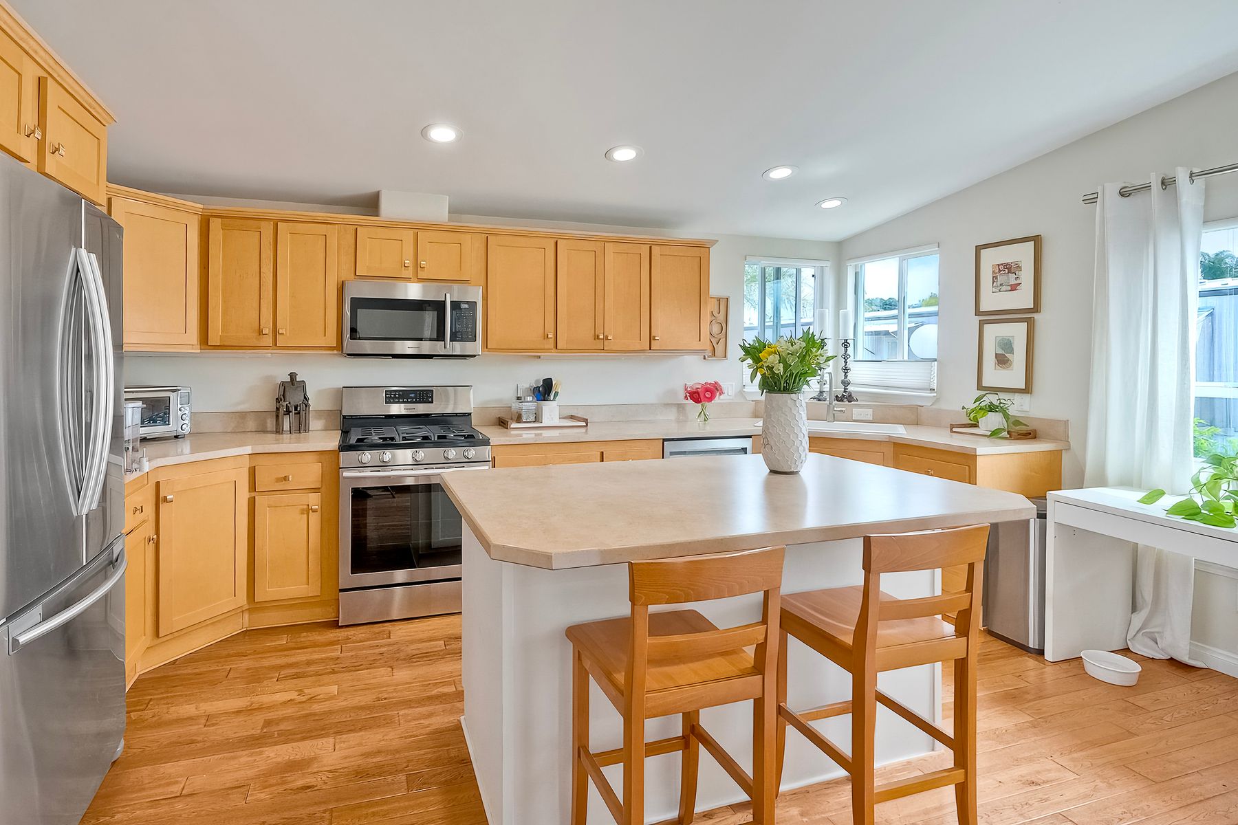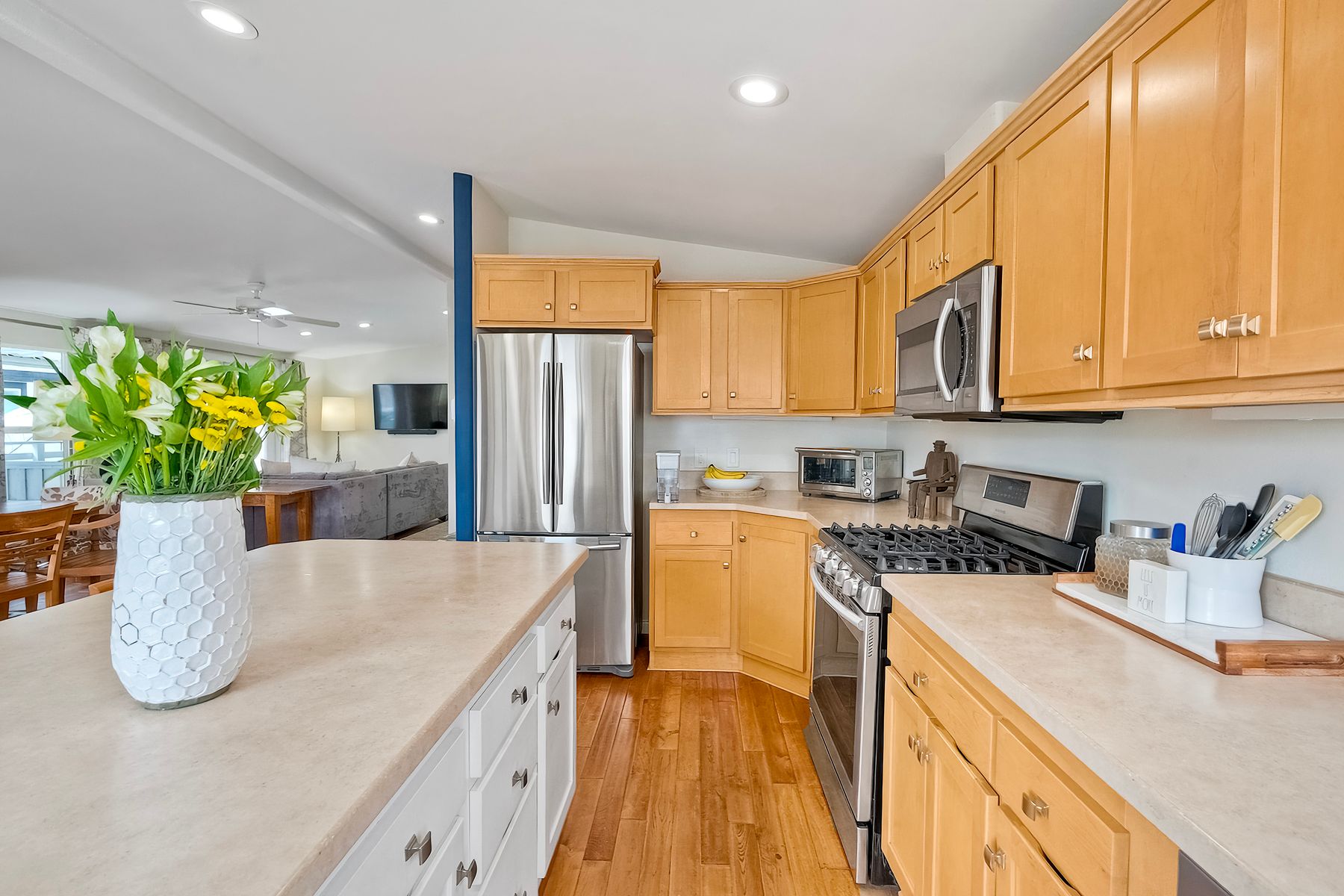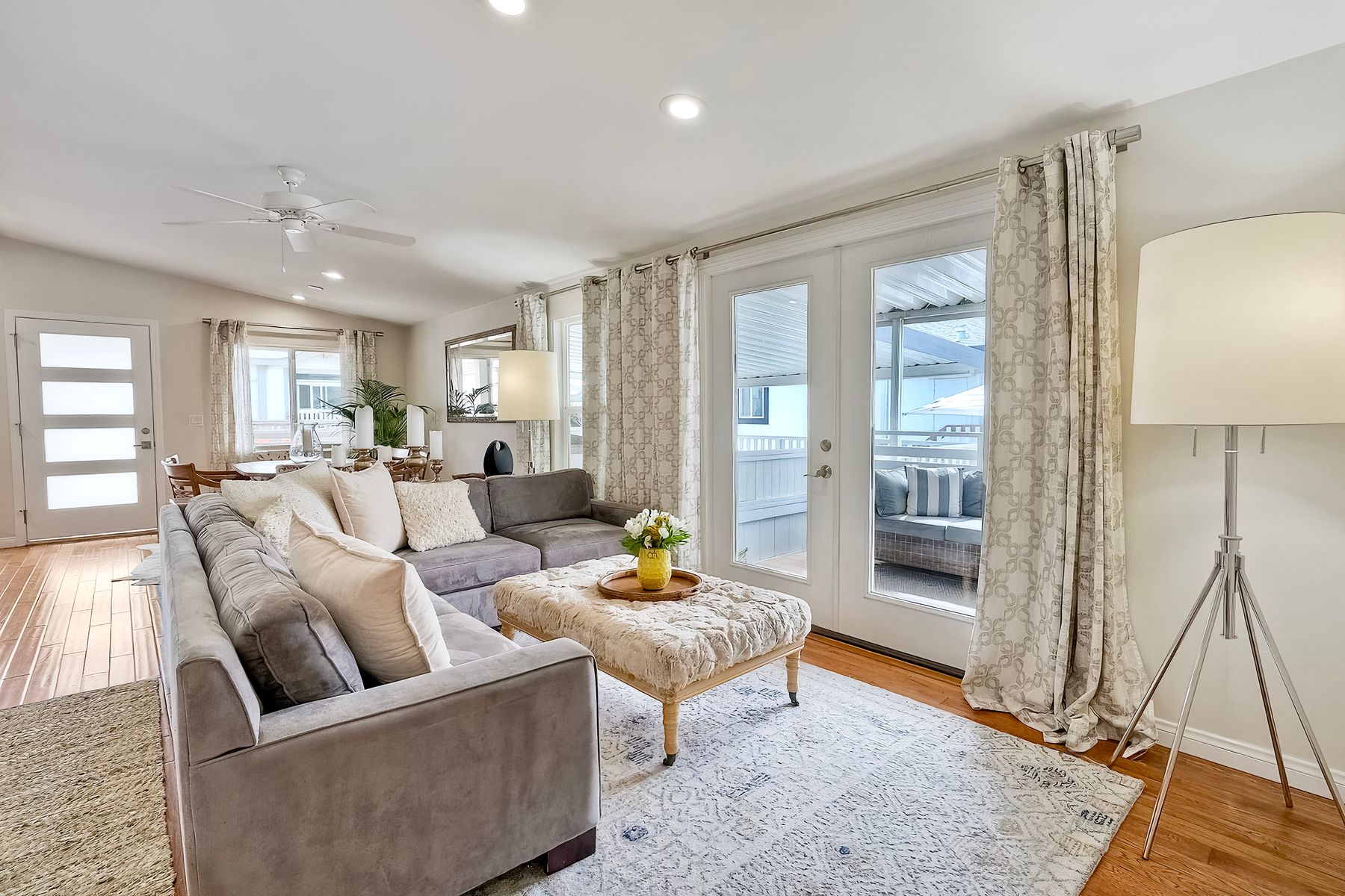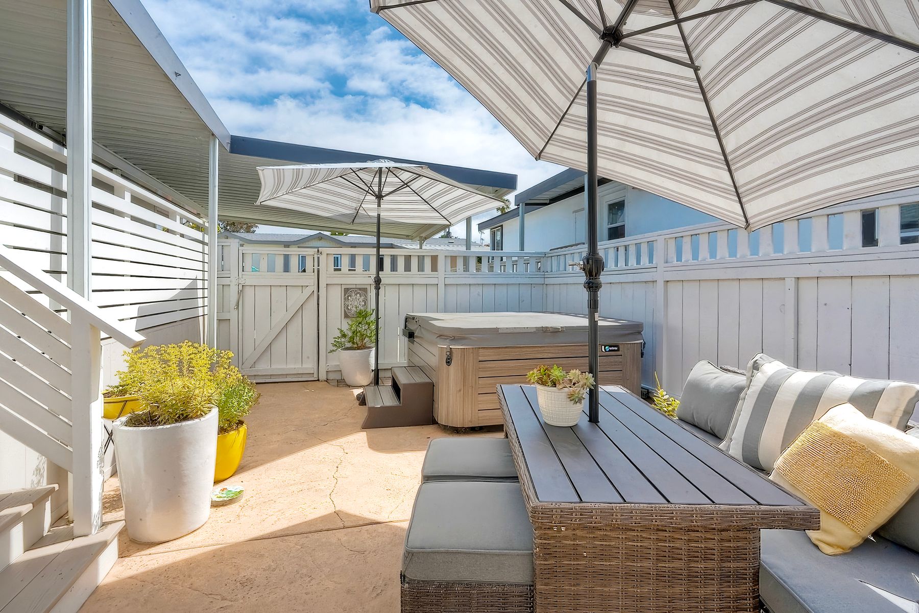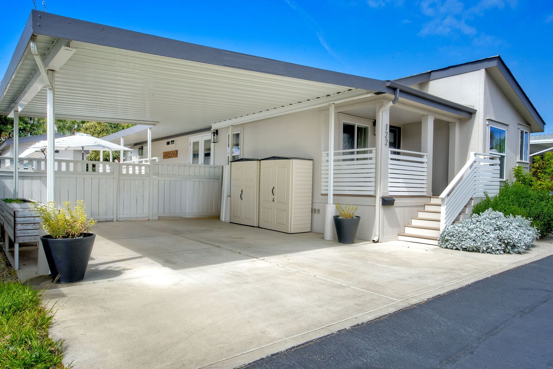 If you are looking for impeccable, look no further! This gorgeous home is spacious, light and bright and nothing short of perfection. This open-concept home combines the kitchen, dining, and living room for a seamless flow. This home features 3 spacious bedrooms and 2 full bathrooms, both complete with upgraded fixtures, sinks, cabinetry, and a custom shower in the master bath. In addition, you have an indoor laundry room with pantry storage cabinets, a sink, and folding counter for added convenience. But it doesn't stop there. .. french doors lead you to an outdoor deck which is perfect for outdoor living and entertaining. This home also sits on a large lot that has a separate finished structure complete with its own electrical panel that can be used as an office, yoga room, storage room or hobby room and a two-car covered carport. Did I mention all this and it is just walking distance to the beaches, schools, Farmer's Market, shopping, restaurants, entertainment and all that the idyllic town of Leucadia has to offer? Community offers a remodeled clubhouse and pool. No traditional property tax or HOA fees. No rentals of any kind allowed. Space rent is $2,900/month.