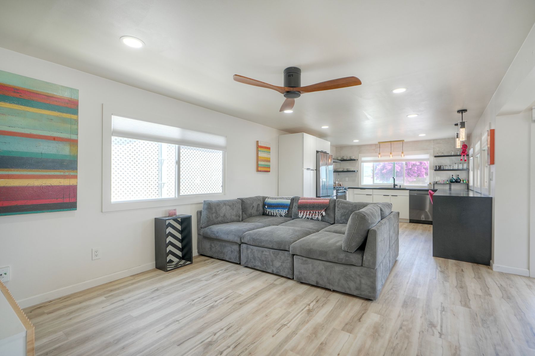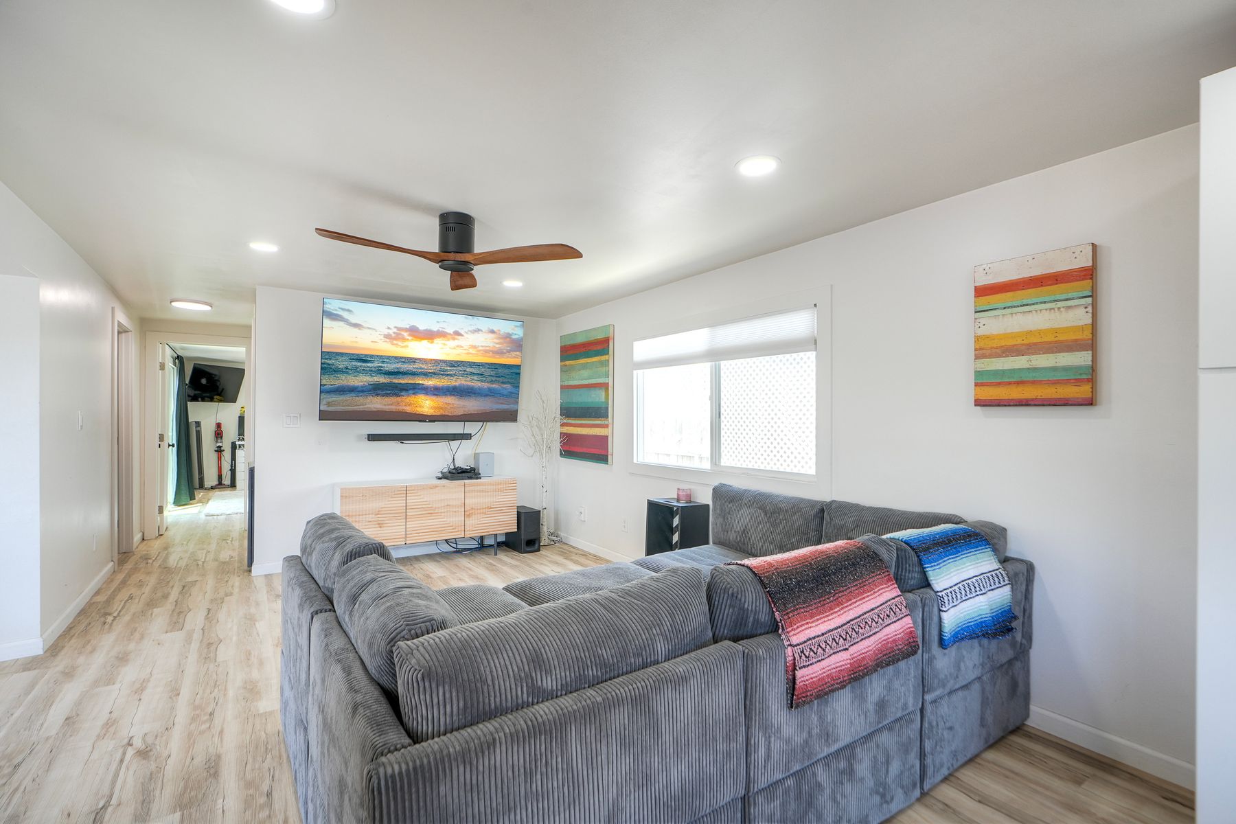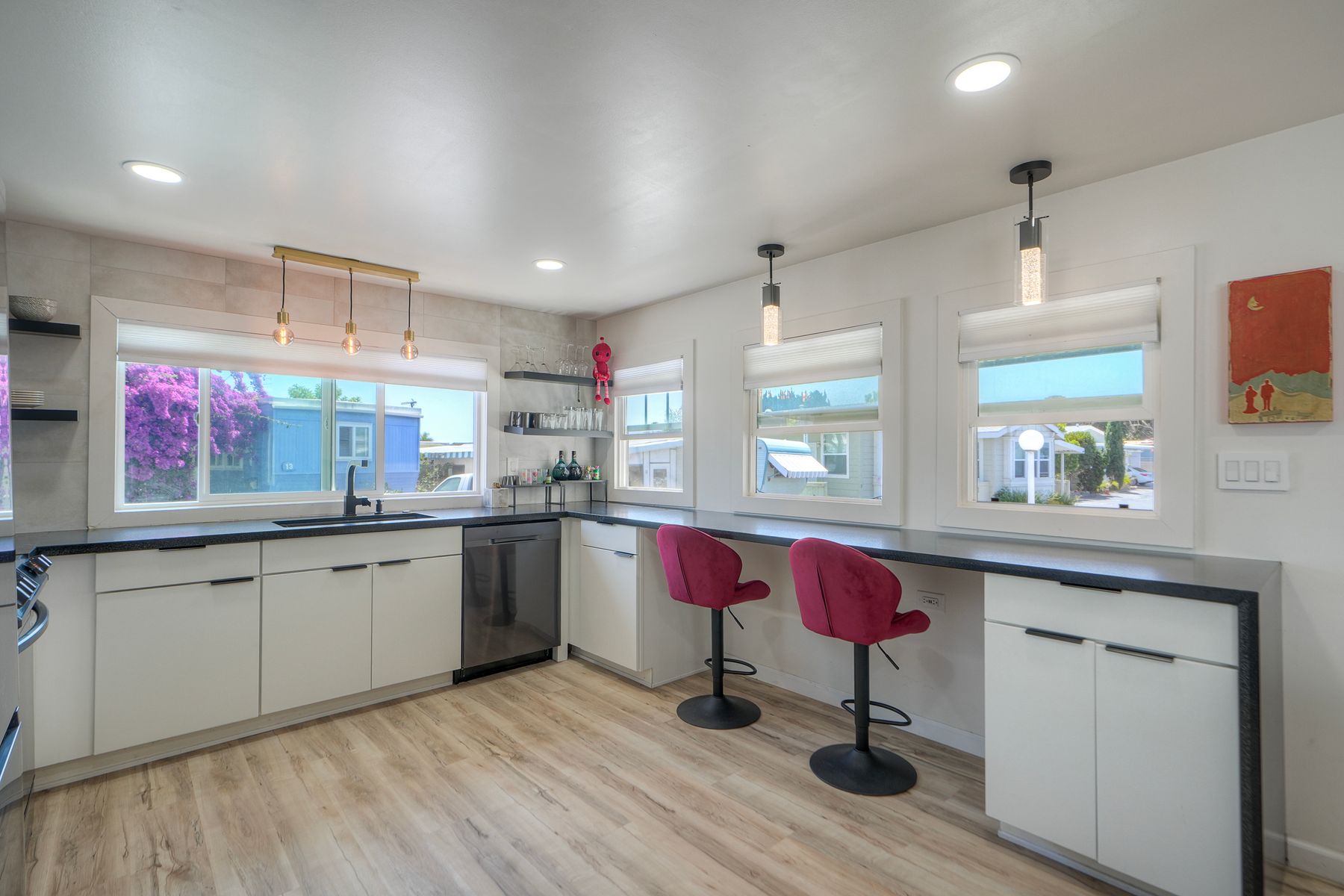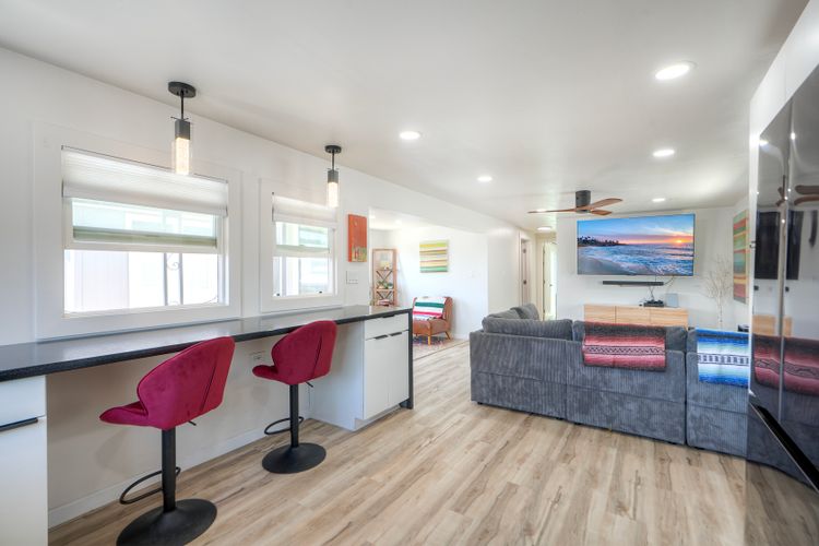 This modernized beach retreat isn’t for everyone, it is for those that understand how to enjoy life! Wake with the sun, stroll barefoot to Beacon’s, or grab coffee at Pannikin before a day of surfing, creating, or simply being. This isn’t just a home—it’s a lifestyle shift. No lawn to mow, no stairs to climb, no wasted walls. Just you, your thoughts, and the ocean breeze. Beautifully remodeled, this spacious 2-bedroom, 1-bath beach house sits on an oversized lot with a fenced yard. The open-concept floor plan is filled with natural light and features new appliances, updated kitchen and bath, fresh flooring, and designer finishes throughout. Located in the heart of Leucadia, you’ll love the community amenities—a sparkling pool and clubhouse—plus the unbeatable walkability to beaches, restaurants, surf shops, coffee houses, the weekly Farmer’s Market, and the new pedestrian/bike crossing. No traditional property tax or HOA fees. Space rent is $1,980/month. No rentals allowed.