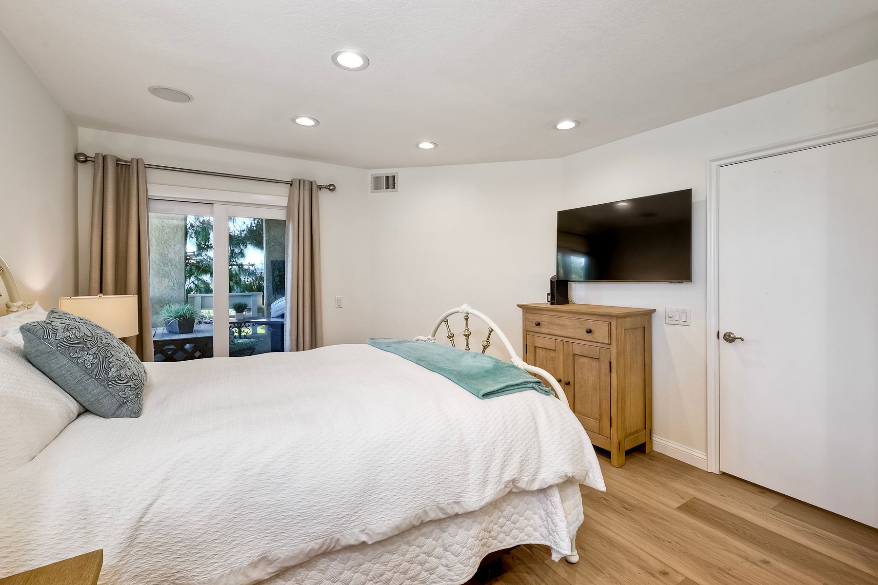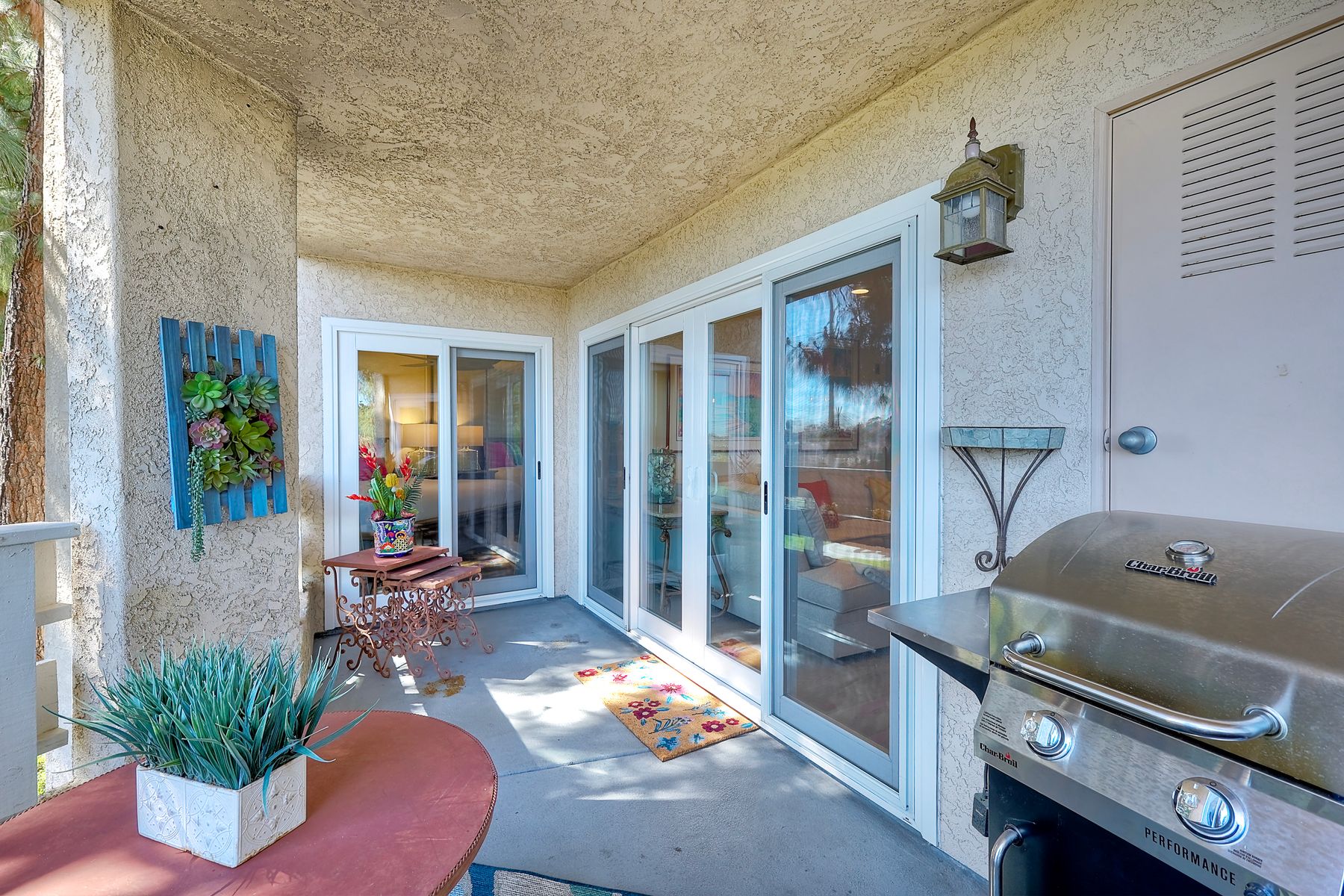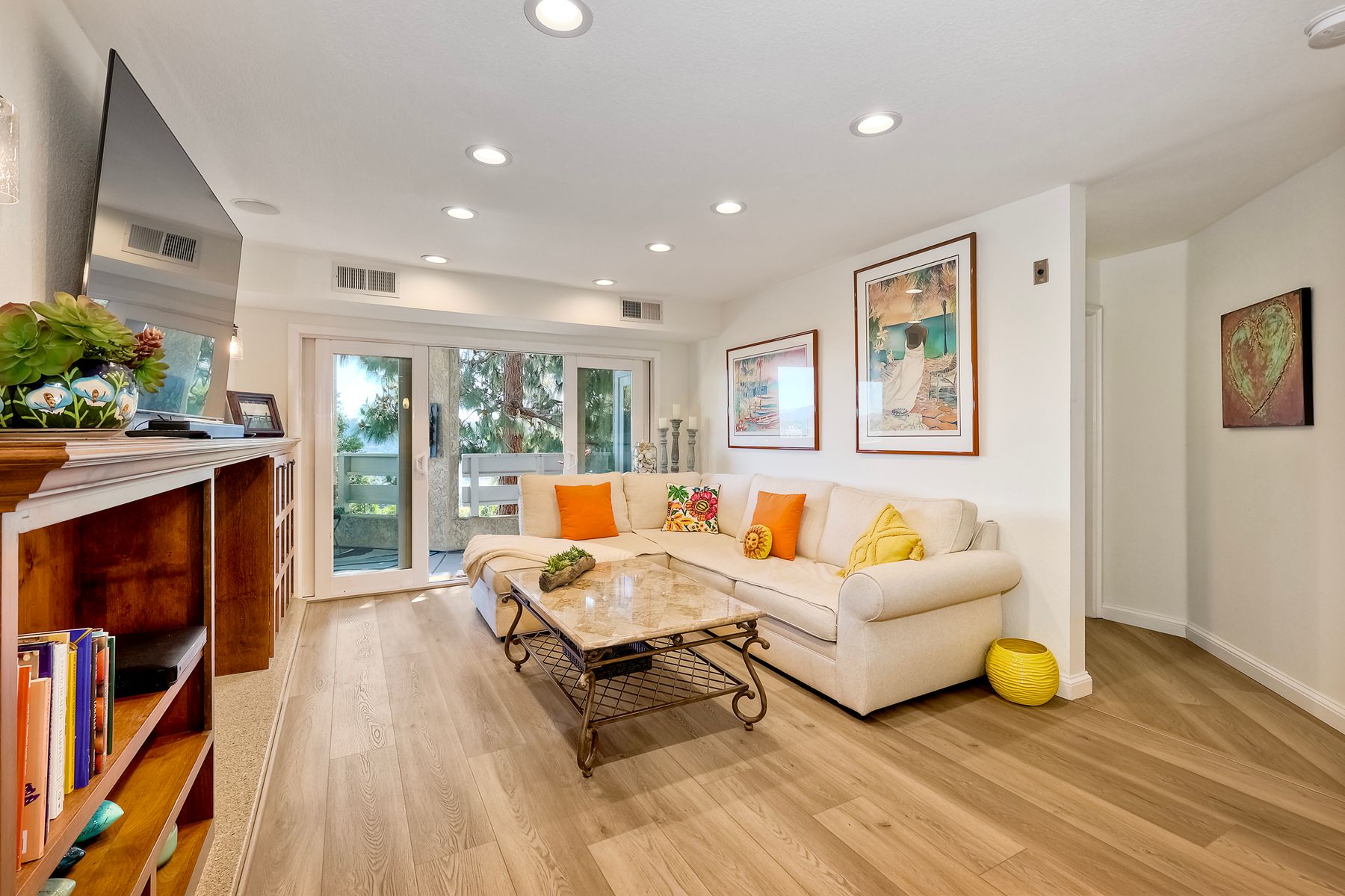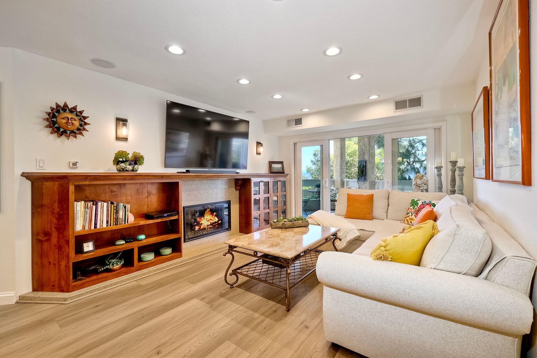 A rare find located in the heart of San Diego. This is a one level, end unit condo w/ no stairs to and from the unit, parking lot and two car tandem garage and yes, it's absolutely gorgeous! There are 3 bed, 2 bath, an open floorplan w/ all rooms leading onto a spacious, covered relaxing patio w/ unobstructed views. The bedrooms are generous in size, triple door closets, luxury vinyl planks throughout, fireplace in living room, new LED recessed lighting, upgraded bath vanities and shower, upgraded kitchen cabinets & Silestone countertops. City Scene complex comes w/ access to pool, spa, BBQ and exercise room and HOA fees include water and trash. Location, Location, Location! Fashion Valley Mall across the street, Snapdragon Stadium, USD, SDSU, Mesa College, Downtown, Beaches, Hospitals, SD Airport all close by.