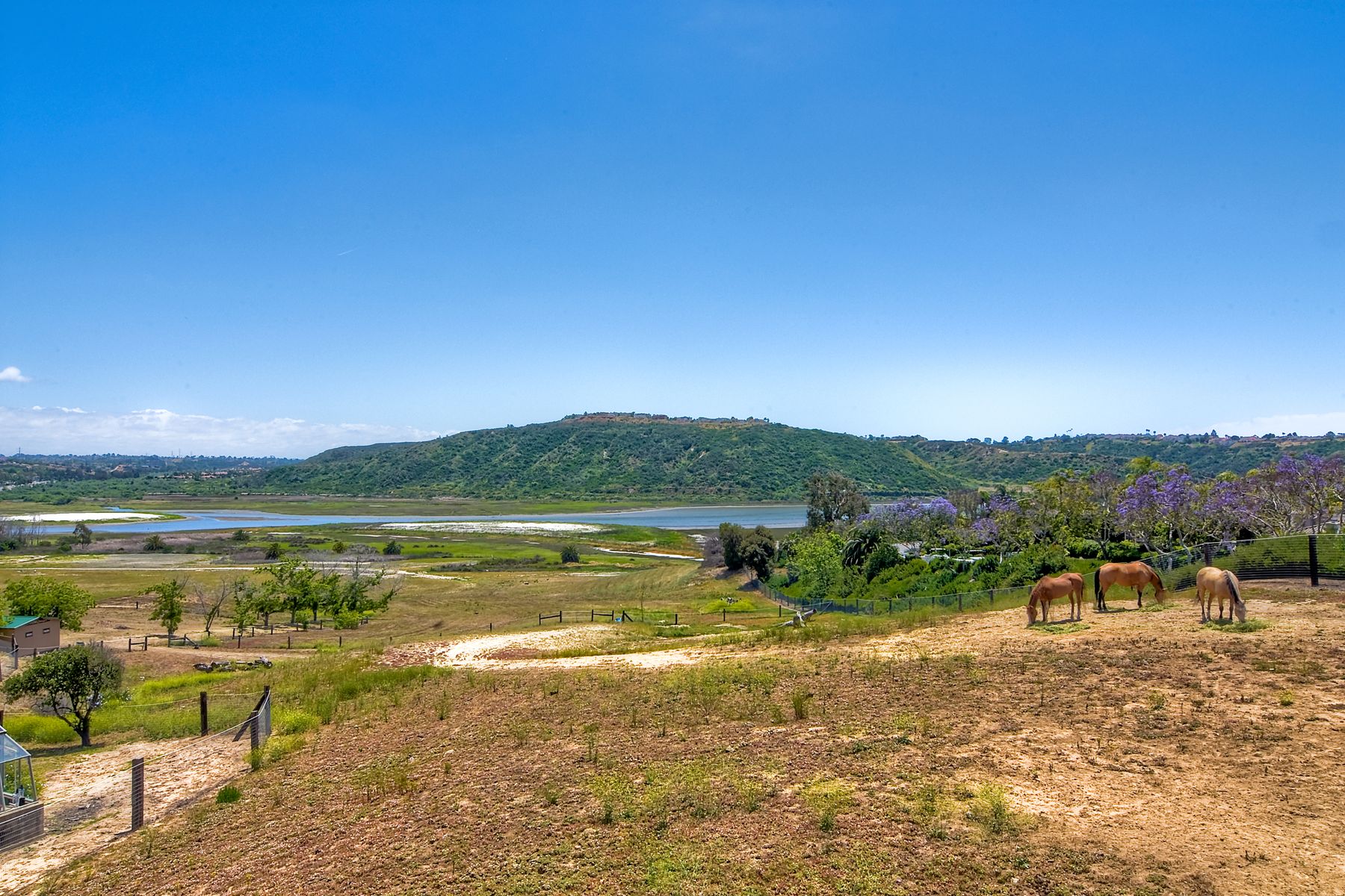 Stunning view home in one of the most highly coveted neighborhoods in Aviara. Desirable floorplan on one of the best lots in Tramonto. Sit down views from living rm, kitchen, master bed & guest room of the Batiquitos Lagoon and a peaceful pasture with 3 beautiful horses grazing just across the fence. An unbelievable country feel in the heart of Aviara. At almost 2,000 sq.ft., this 3 bed/2.5 ba home has undergone extensive upgrading and remodeling. (3rd bedr currently being used as a loft). See supp Rich hardwood floors with distressed accent in living room, dining room and master bedroom and neutral travertine thru out entry, hallway and kitchen. The kitchen is light and bright with fantastic views and features beautiful granite counters & back splash, stainless appliances, Blanco stainless sink with Hansgrohe faucet, insta hot water, new canned lighting, breakfast area, and french door with operable side light windows leading to the patio. The living room has built ins and a cozy fireplace and also has fantastic views. Master Bath has undergone extensive remodel. New over sized walk in shower with arched glass doors, new counter tops, new sinks, faucets, mirrors, and lighting. The large master bedroom features 2 large closets, beveled ceiling, & french door leading to recently rebuilt view deck constructed of Trek deck material. Best place for viewing multiple fire works shows. This home also features new A/C unit, a large upstairs laundry room with utility sink, a generous size 2 car garage with lots of overhead storage, cabinets and brand new hot water heater. The peaceful and private back patio with unobstructed views provides plenty of space for dining el fresco and entertaining. This home is also located very close to the award winning Aviara Elementary and Middle Schools. All of this and walking distance to the Park Hyatt Aviara Resort, the Four Seasons Residence Club, Aviara's own Arnold Palmer signature golf course and Argyle Steakhouse, and miles of amazing walking trails. Minutes to Carlsbad's beautiful beaches, Legoland, La Costa Resort & Spa and all that Carlsbad has to offer. Welcome Home!!
