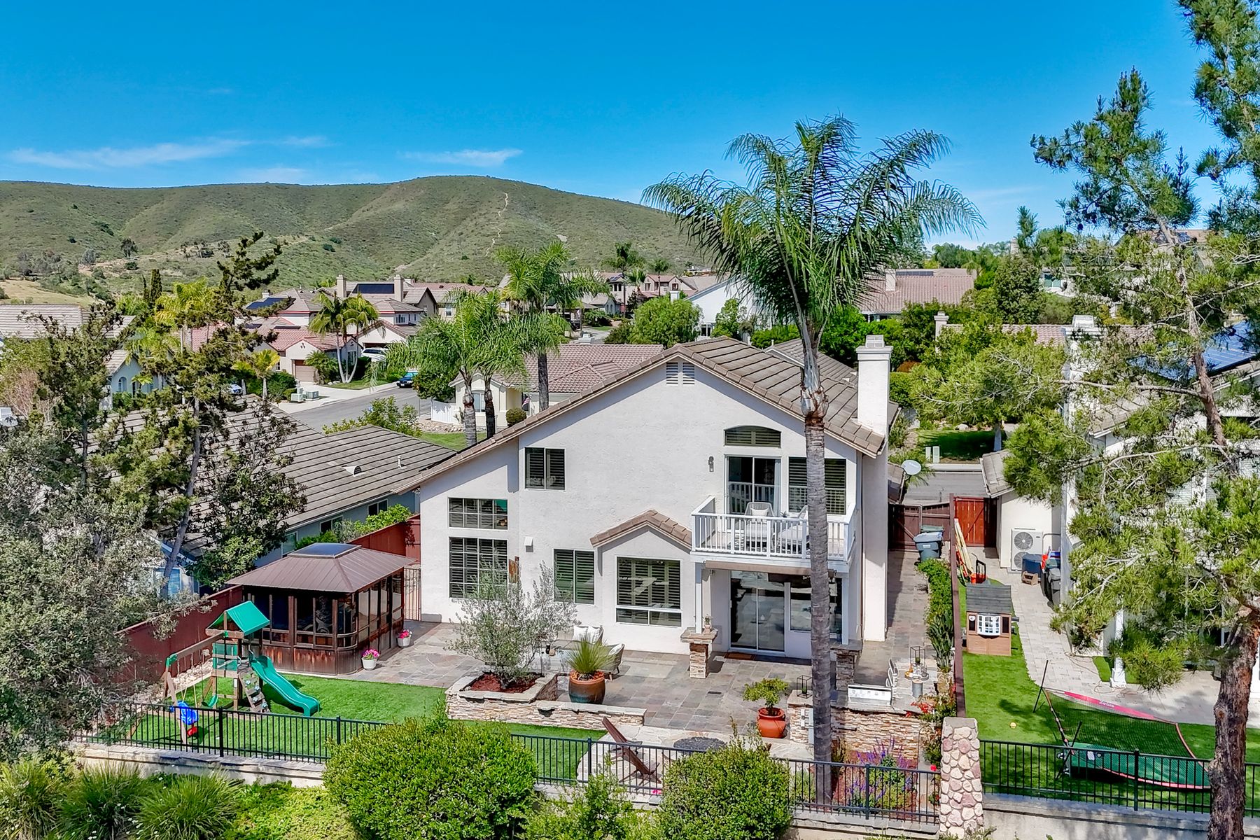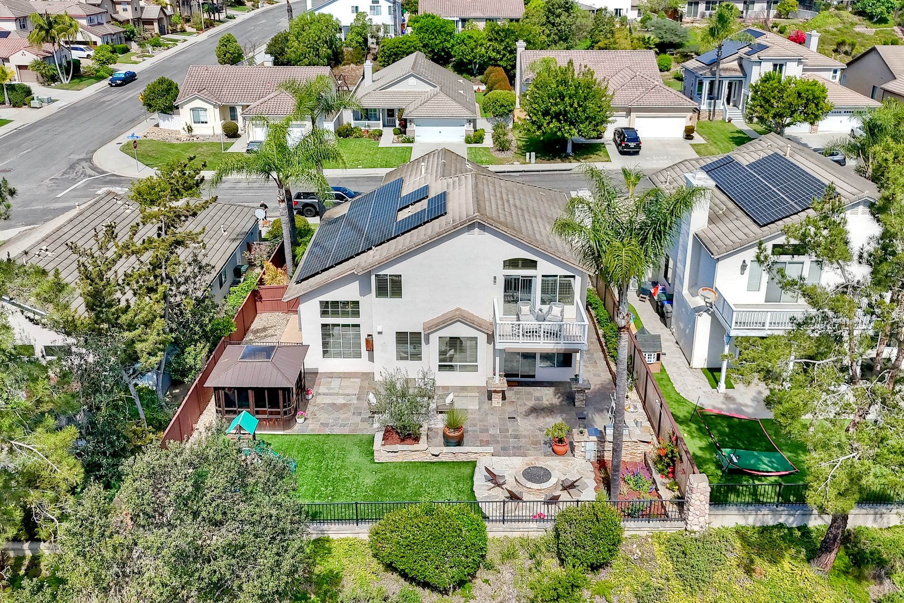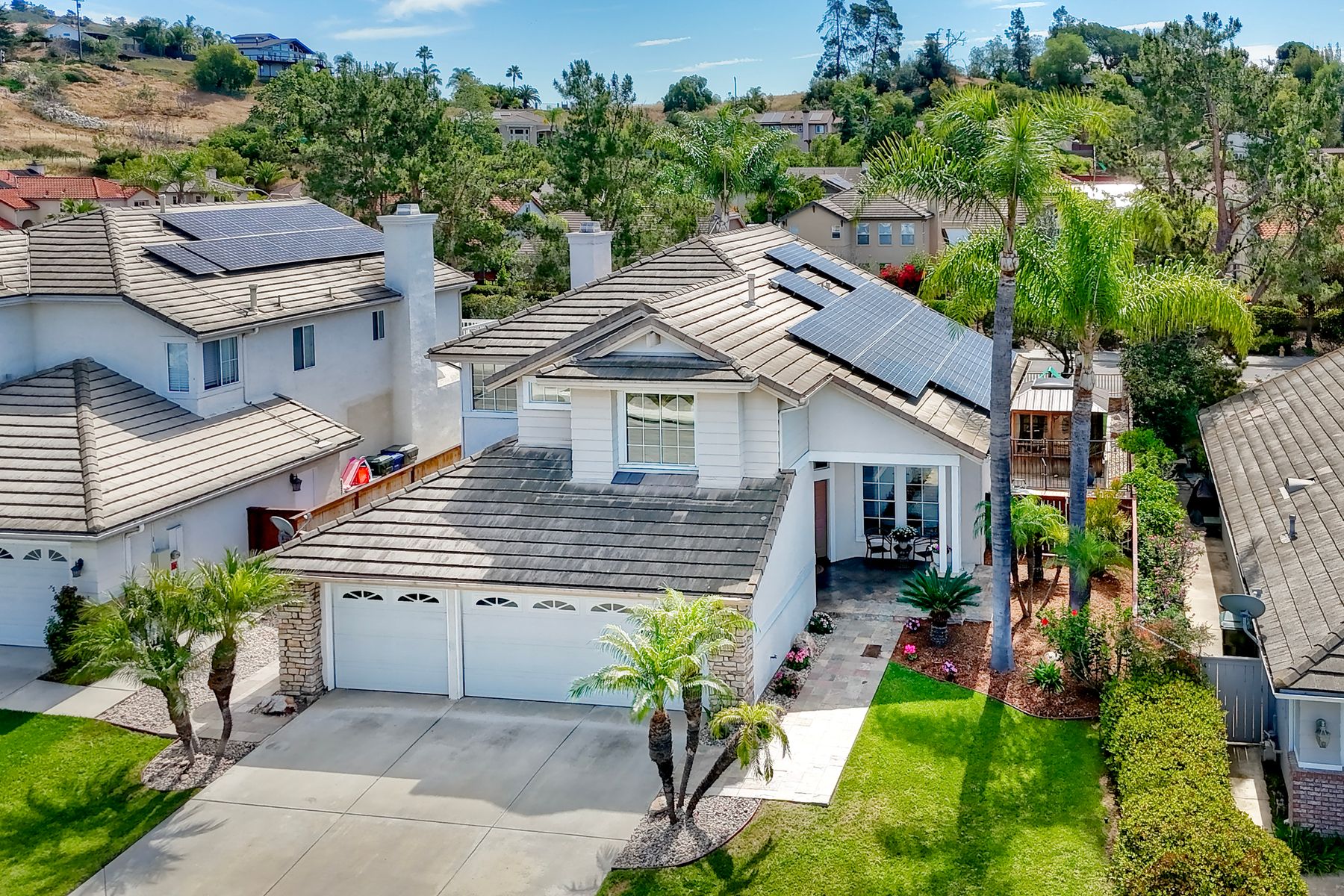 This remodeled 4 bed, 3 bath, 2,313 sq ft Twin Oaks Valley Ranch home delivers updated style, modern convenience, and a top rated San Marcos 92069 lifestyle • Soaring ceilings and warm wood flooring • Remodeled kitchen & bathrooms with freshly painted shaker style cabinets • Main level bedroom + full bath • Primary suite with private deck and spa style bathroom • Fully owned solar + EV charging station • 3-car garage with overhead storage • Entertainer’s backyard: BBQ island, firepit, hot tub in gazebo • Turf, new fencing, and low maintenance landscaping • Community amenities: pool, parks, playgrounds, picnic areas — Very LOW HOA • Top rated youth sports: soccer, basketball, baseball • San Marcos education hub: top-rated schools, CSUSM & Palomar College • North County lifestyle corridor: restaurants, coffee, shops at North City & Lake San Marcos, plus a local winery • Outdoor recreation: two golf courses, lakes, parks, boating, and miles of walking, biking, hiking & equestrian trails • 20 minutes to beaches; close to shopping, dining, and easy freeway access. Remodeled 4 bed, 3 bath, 2,313 sq ft Twin Oaks Valley Ranch home in San Marcos 92069 offering updated style, modern convenience, and a top-rated North County lifestyle. Features include soaring ceilings, warm wood flooring, and remodeled kitchen and baths with shaker style cabinetry. The layout provides a main level bedroom and full bath, plus a spacious primary suite with private deck and spa style bathroom. Fully owned solar, EV charging, and a 3-car garage support energy efficiency and everyday function. The backyard is built for year-round outdoor living with a BBQ island, firepit, hot tub gazebo, turf, and new fencing. Enjoy a very low HOA, community pool, parks, trails, and playgrounds. Minutes to top rated San Marcos schools, CSUSM, Palomar College, North City, Lake San Marcos, golf, dining, shopping, and 20 minutes to North County beaches.
