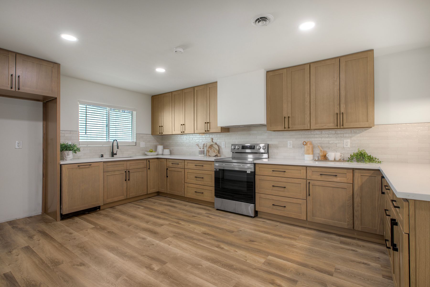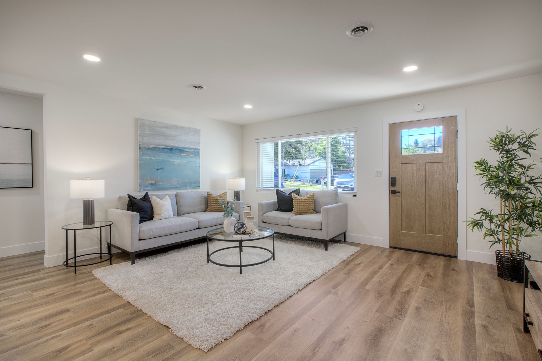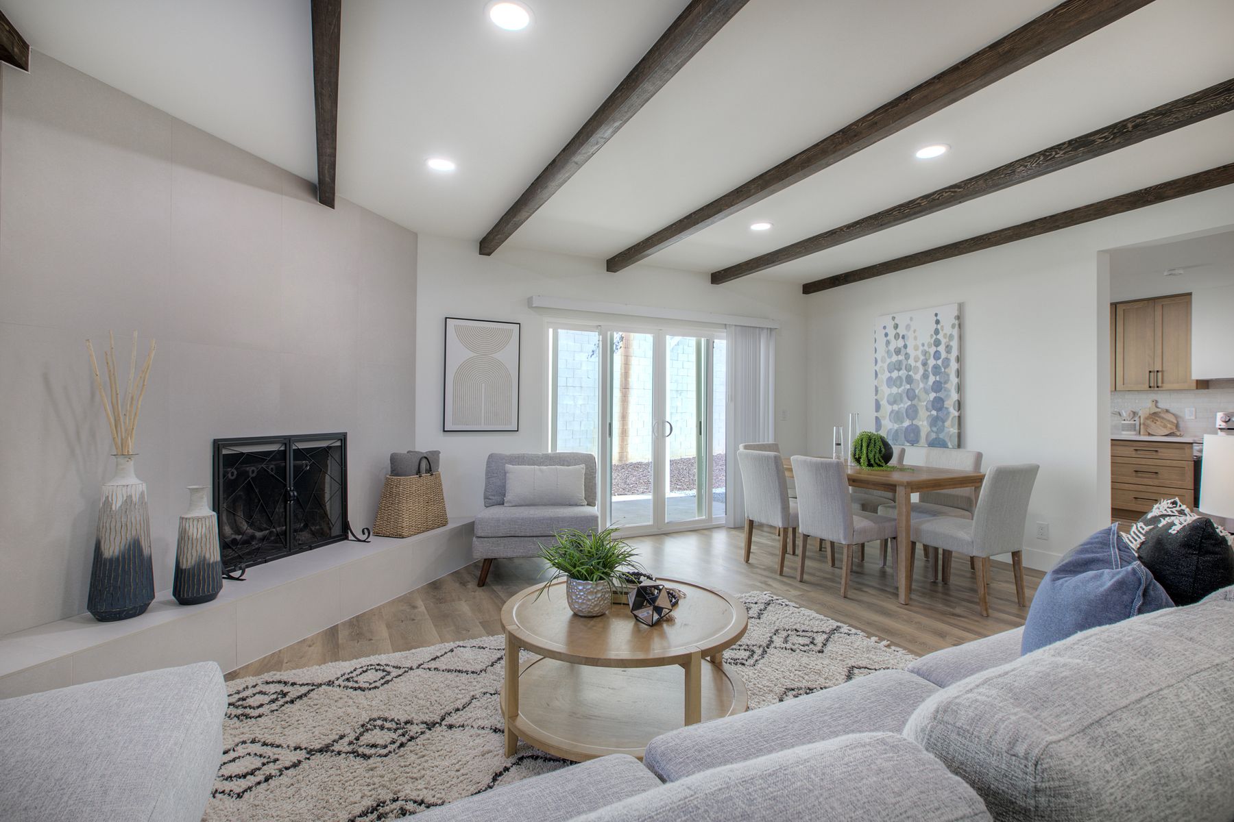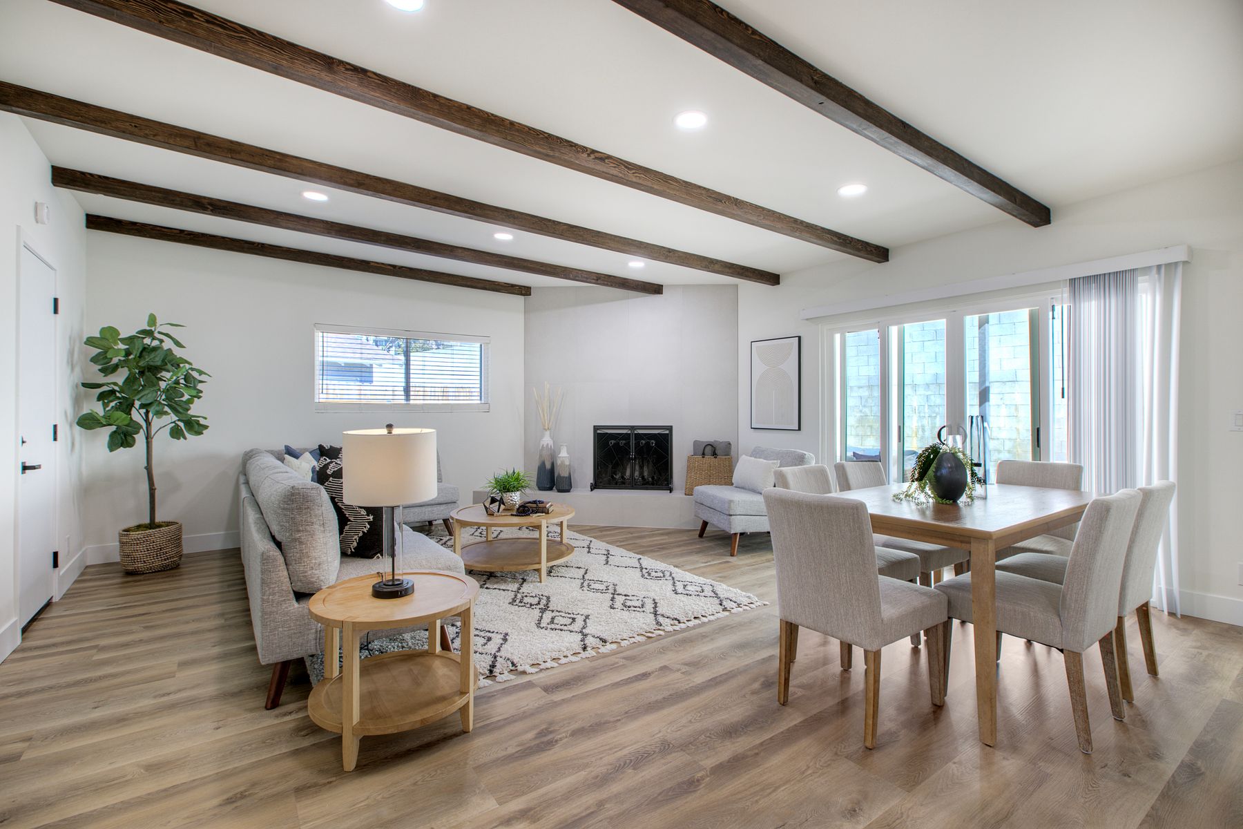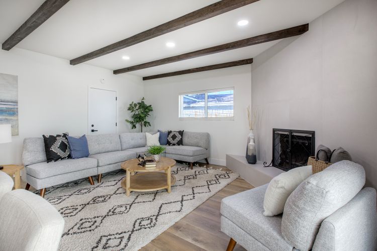 No HOA! Sitting at the end of a cul-de-sac, just minutes from Fallbrook’s town center and shopping, is a stunning single-story detached home that has been fully remodeled and is ready to be called yours! The open-concept kitchen featuring natural oak cabinets and quartz countertops flows seamlessly between the entry living room and the family den which is complete with a cozy wood burning fireplace and wood beamed ceilings. The patio sliders lead you out to a generously sized, pie shaped yard boasting a mature lime tree and plenty of space to create your own backyard oasis on this approximately 7500 square foot lot. Modern luxury vinyl plank flooring runs throughout this 3 bed home, while the 2 bathrooms each feature mirrors with digital defoggers and customizable lighting options for your self care routine. Additional upgrades include a brand new roof, brand new HVAC system, new windows, and epoxy flake flooring in the garage! Make this turn-key single-story stunner yours today!