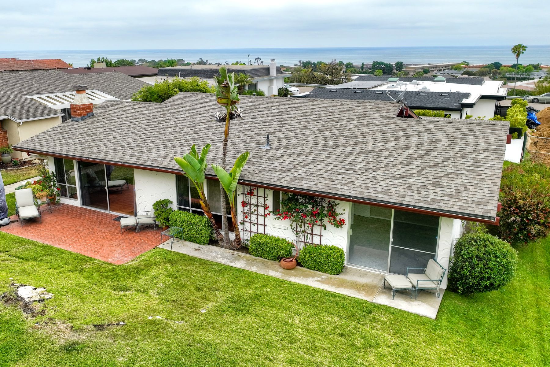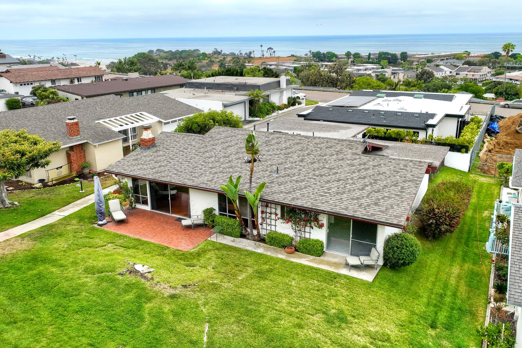 Welcome to Park Del Mar—One of Solana Beach’s Most Desirable Communities. This charming single-level 2 bed, 2 bath home with a bonus den captures ocean breezes, abundant natural light, and a stunning ocean view from the living room. The spacious open floor plan seamlessly connects a generous kitchen, dining area, and family room—ideal for relaxed coastal living and effortless entertaining. Step outside to a tranquil back patio that opens directly onto a lush greenbelt, creating a park-like setting with mature landscaping. Additional features include skylights in the kitchen and office, a whole-house fan, fireplace, and a 2-car garage. Perfectly located just blocks from the beach, Del Mar Racetrack, Cedros Design District, and top dining, this home offers walkable access to the best of the area. Park Del Mar also features scenic trails, a pool, and an ocean-view clubhouse—all in one of the most sought-after neighborhoods on the border of Solana Beach and Del Mar.