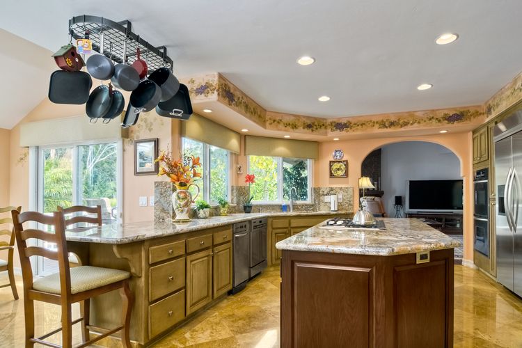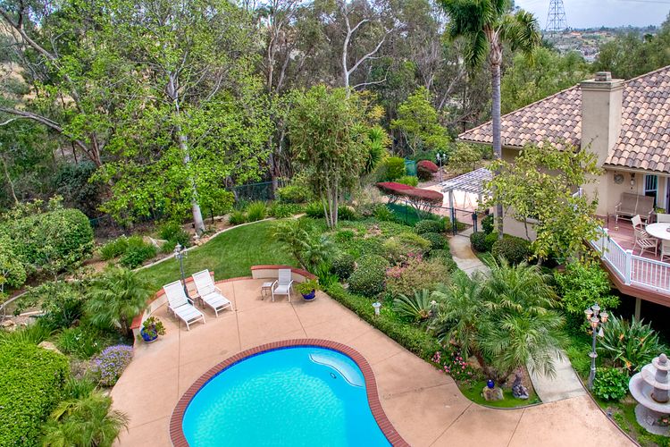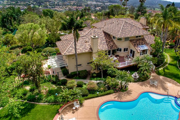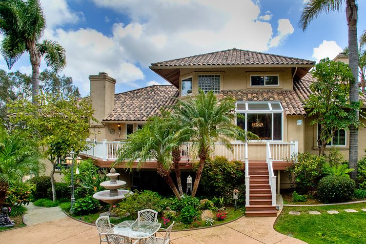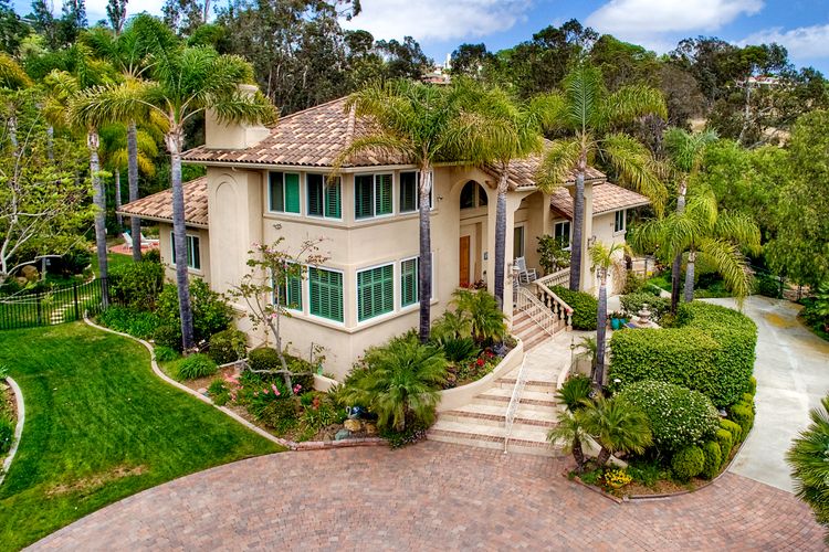 Stunning! Magnificent custom home in desirable la costa estates! Your own private resort at home, at the end of your long & private gated driveway. Over 38,000 esf lot & a fabulous private setting w/ sparkling pool/spa, multiple patios & view decks, surrounded by lush tropical landscaping & palm trees, near la costa resort & spa. This gorgeous light filled property offers 5 bd/4.5 ba/3 car garage & custom upgrades thru/out, incl. Gourmet kitchen, guest quarters w/ separate access, motor court & much more!  Your private oasis awaits! A rare and exclusive setting at the end of your long and private gated driveway, opening up to your private motor court & front courtyard. Entertainer's masterpiece w/ fantastic lot, location, privacy & style. Enjoy the large lot, views, outdoor living area, lush landscaping and wrap-around yard also featuring beautiful views & privacy - exceptional! Custom upgrades & features throughout. This beautiful features an abundance of natural light, crown molding, custom design and paint, was renovated in late 2005, including a spacious new gourmet kitchen with gorgeous granite counter tops, custom cabinets and a butler’s pantry: a chef and entertainer's dream. The kitchen opens up to the family room and the view deck overlooking the pool. It includes a large gourmet island with built-in wolf cook top range, premium stainless steel kitchen aide appliances, including oversized side-by-side refrigerator/freezer, double oven and dishwasher. Beautiful flooring throughout with polished travertine tile, hardwood flooring and premium carpet. Plantation shutters, custom paint, large fiberon wood deck, crown molding, oversized walk-in closets and so much more! Enjoy privacy, peace and panoramic views to the backyard and above, a spacious hardwood flooring family room with fireplace and opening to the large deck overlooking the exterior grounds. The spacious master suite, complete with fireplace, a huge walk-in closet and a private retreat, offers beautiful views as well! The lower level is perfect for guests or nanny flat, offering a large private guest suite with bathroom, and private entrance. You will appreciate the storage room, spacious 3 car side by side garage and convenient motor court with additional parking. A very unique property ready in desirable carlsbad unified school district! Nearby you will also find shopping, restaurants & cineapolis. Close to all and located a short drive to some of san diego's best surfing and family beaches, and la costa resort and spa.