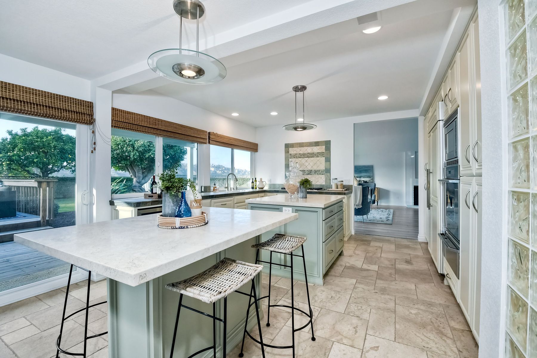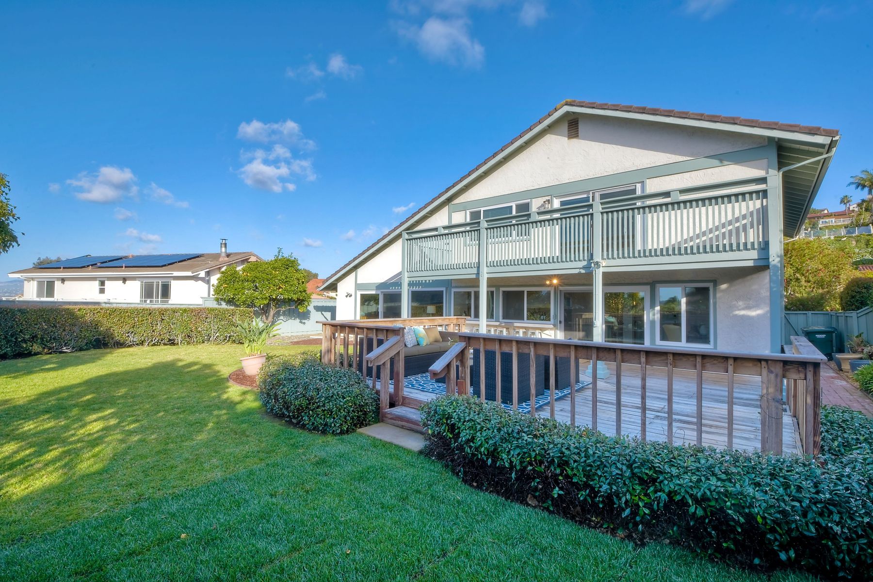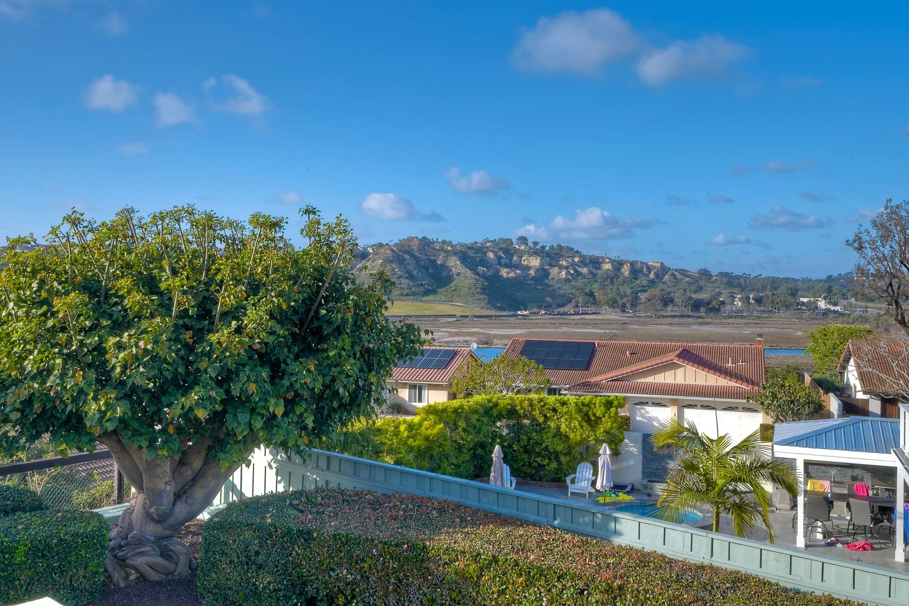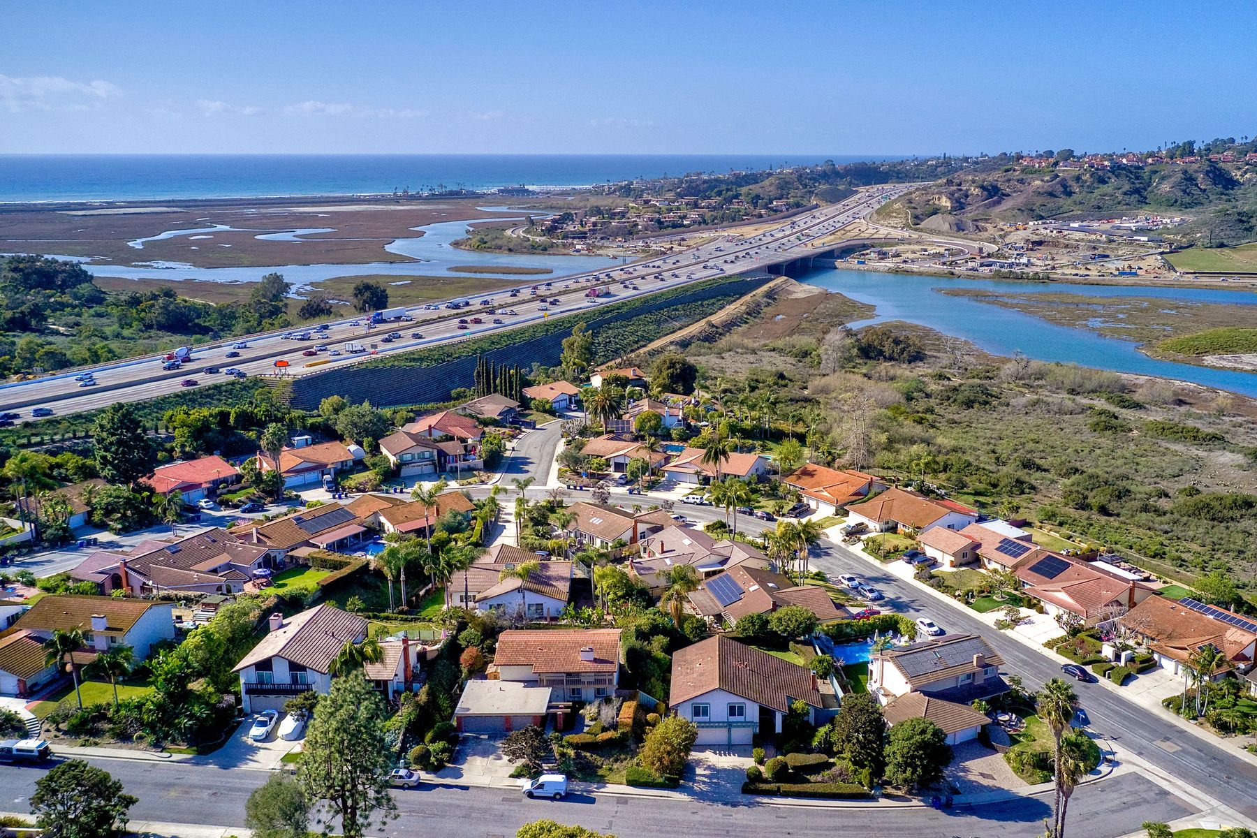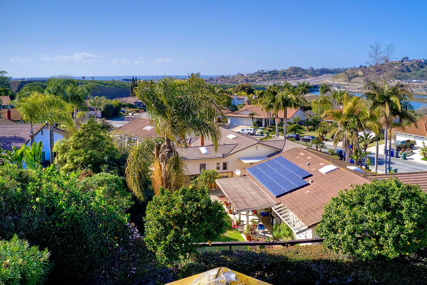 Ocean Views!!! This stunning home is fully remodeled and features all new flooring, paint( walls, baseboards, ceilings and doors) lighting, high end appliances, a wine/beer fridge, windows, ceiling fans, heating and air, a NEST thermostat system, garage door openers with WIFI , electric door locks with WIFI, and bathroom fixtures. The exterior boasts expansive views and privacy. Upgrades include landscaping, irrigation and citrus trees. A rebuilt wooden deck, a resealed upper balcony with upgraded hand rail to current child safety code, and outdoor bar. Located 2 blocks from the entrance to the San Elijo Lagoon Trail and walking distance to Solana Vista Elementary school this home is not to be missed.