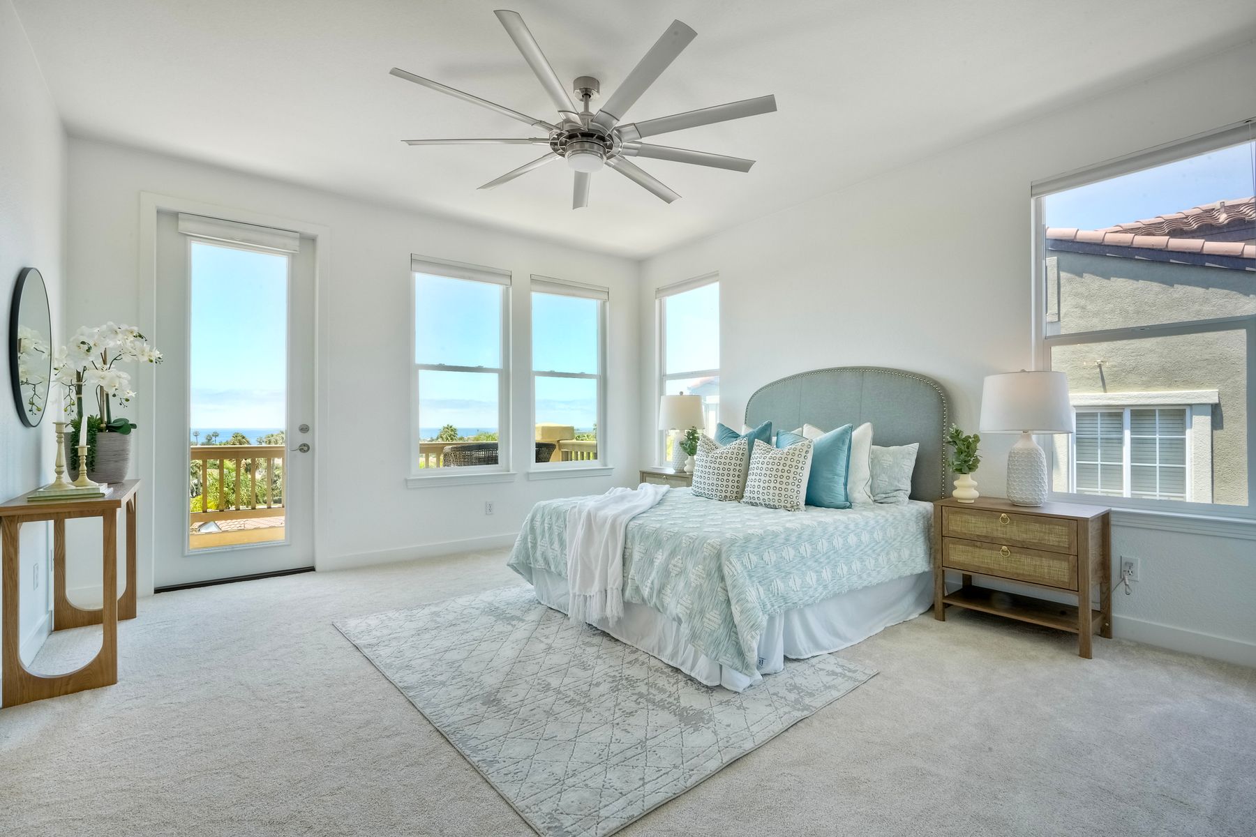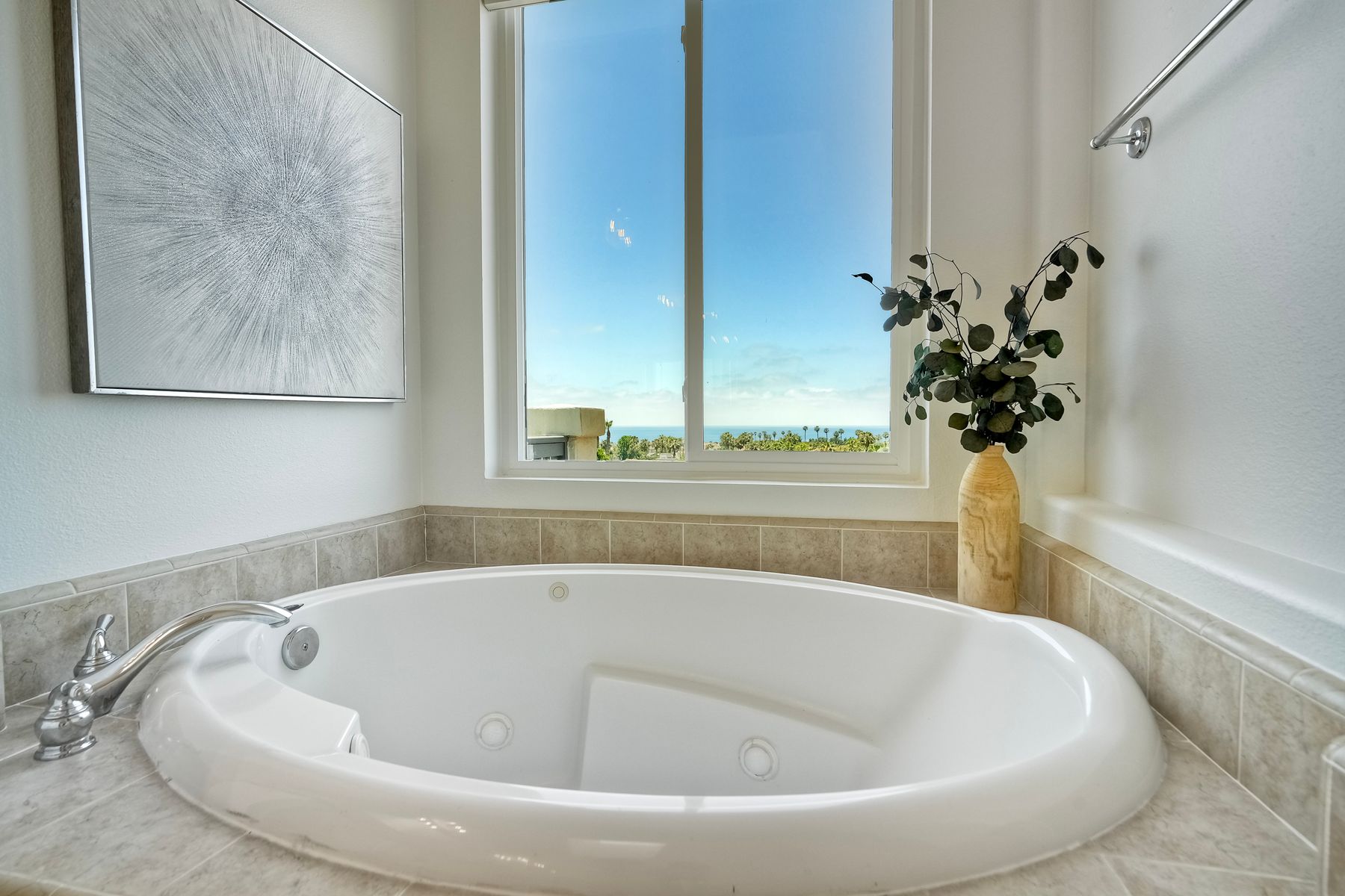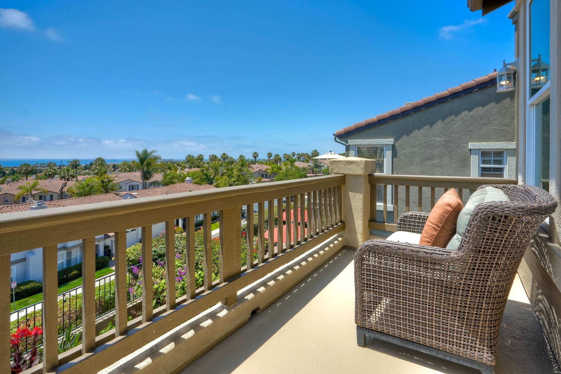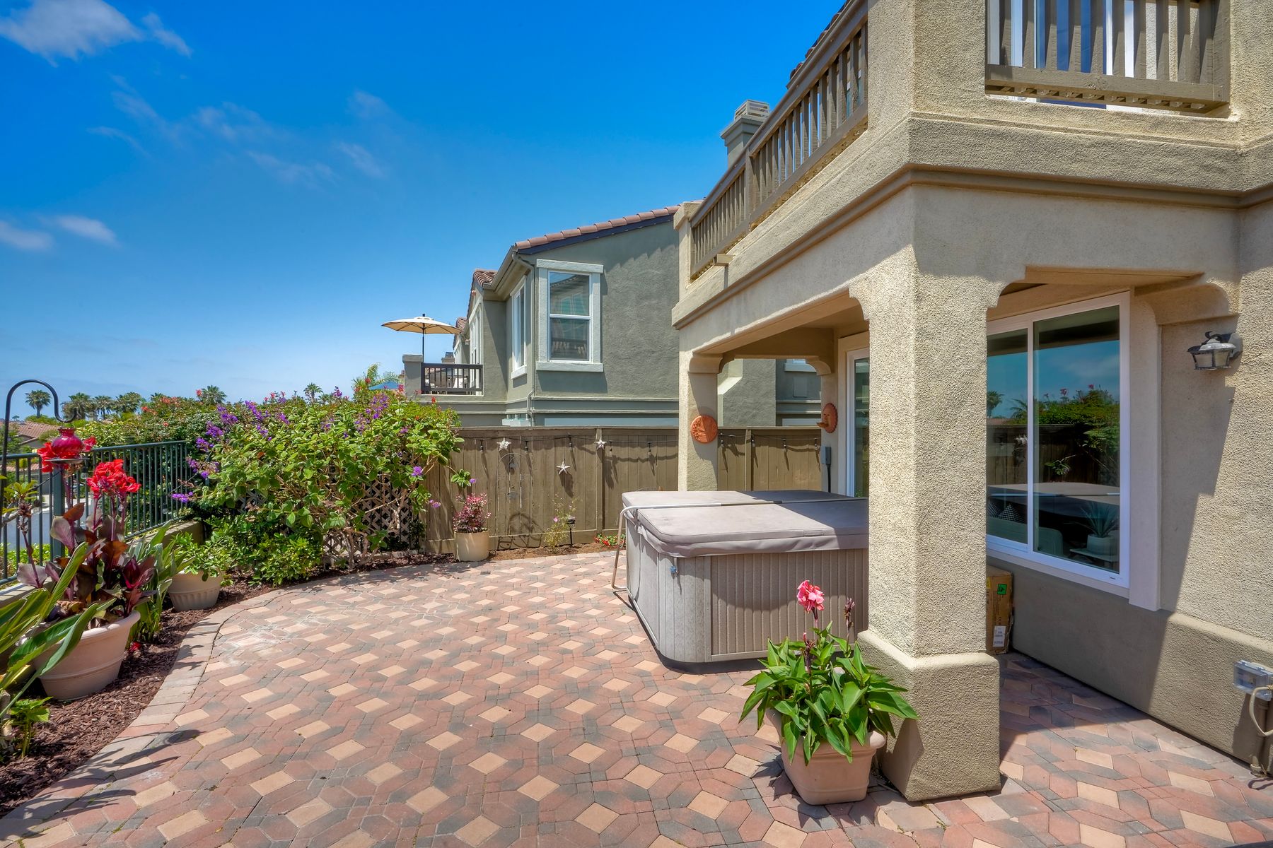 Amazing Panoramic White Water Ocean View Home! The ultimate coastal lifestyle West of I-5, Walk to The Beach! This Prestigious Ocean view beach home is situated in South Carlsbad, within San Pacifico in a private gated community called Santalina. Highly desirable and sought after Plan 2 floorplan, this home checks off all the boxes! West of 5 frwy, 2074 sqft, all 3 bedrooms are upstairs w/optional 4th (Den/Office/Bedroom) on 1st floor. The large master suite has a private balcony with stunning elevated white-water views, an oversized master bathroom with dual vanities, a jacuzzi tub and detached shower. Savor the sounds of crashing waves at night, refreshing ocean air, and amazing sunsets. Built-in tech center/desk, perfect for a home office. Shelved attic space provides valuable extra storage with easy "dropdown" ladder access. Newer AC/HVAC with filtration system, and several windows have been upgraded/replace. Relax outside and enjoy courtyard lounge space with lush landscaping & exotic plants and maintenance free grass. The hardscape boosts colorful pavers with accent landscaping lights and a relaxing therapeutic spa. Garage is equipped with 220V EV JuiceBox Pro charger, upgraded lighting and plenty of storage cabinets. Located next to beautiful walking trails along Pinto Beach. San Pacifico community offers amenities like over-sized pool/spa, tennis courts, basketball counts, volleyball court, RV parking. Walk along Batiquitos Lagoon trails to Ponto Beach for incredible sunsets, surfing, walks on the beach or enjoy concert activities at the Carlsbad Camp Store. This is a true hidden gem.