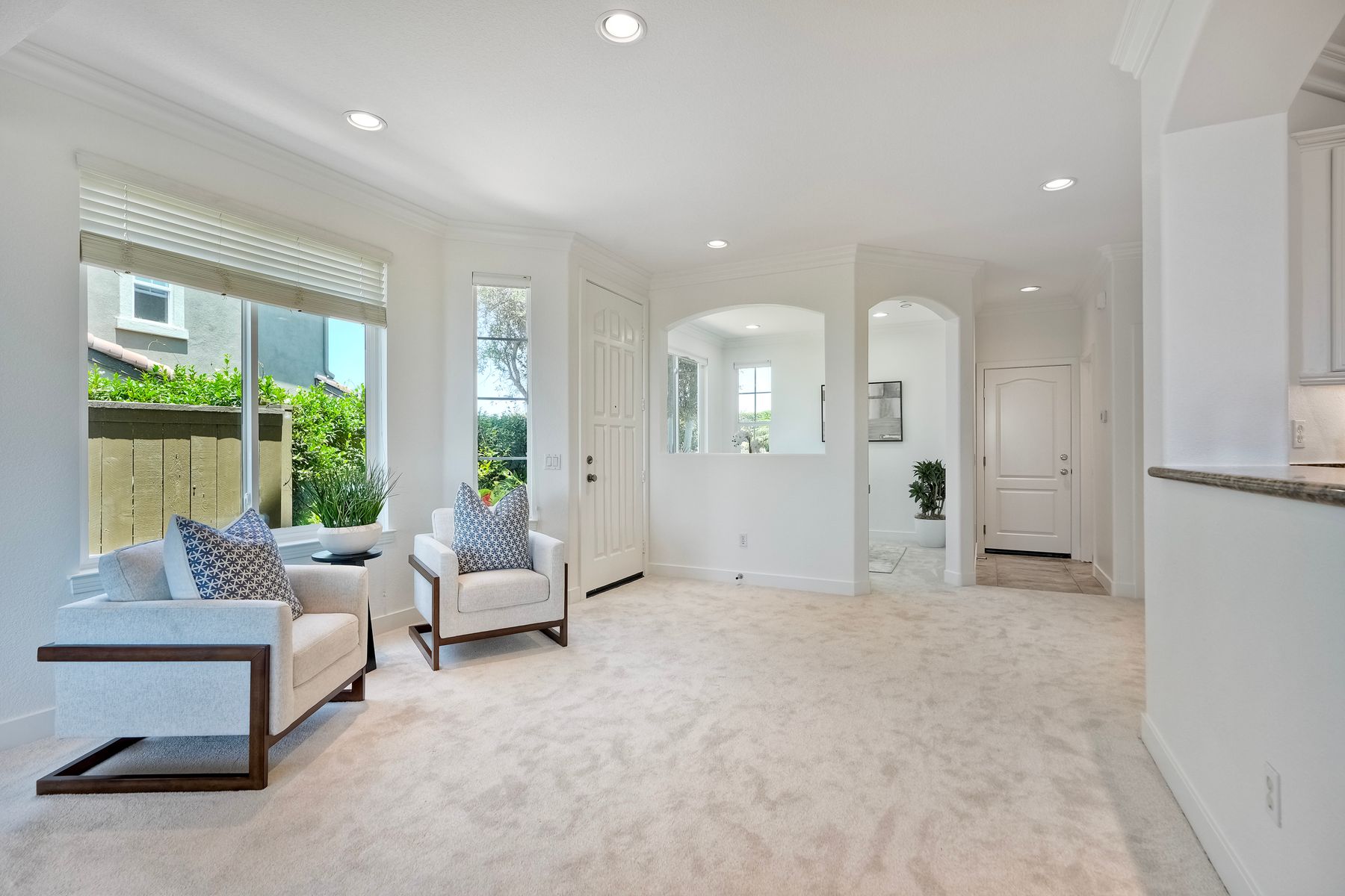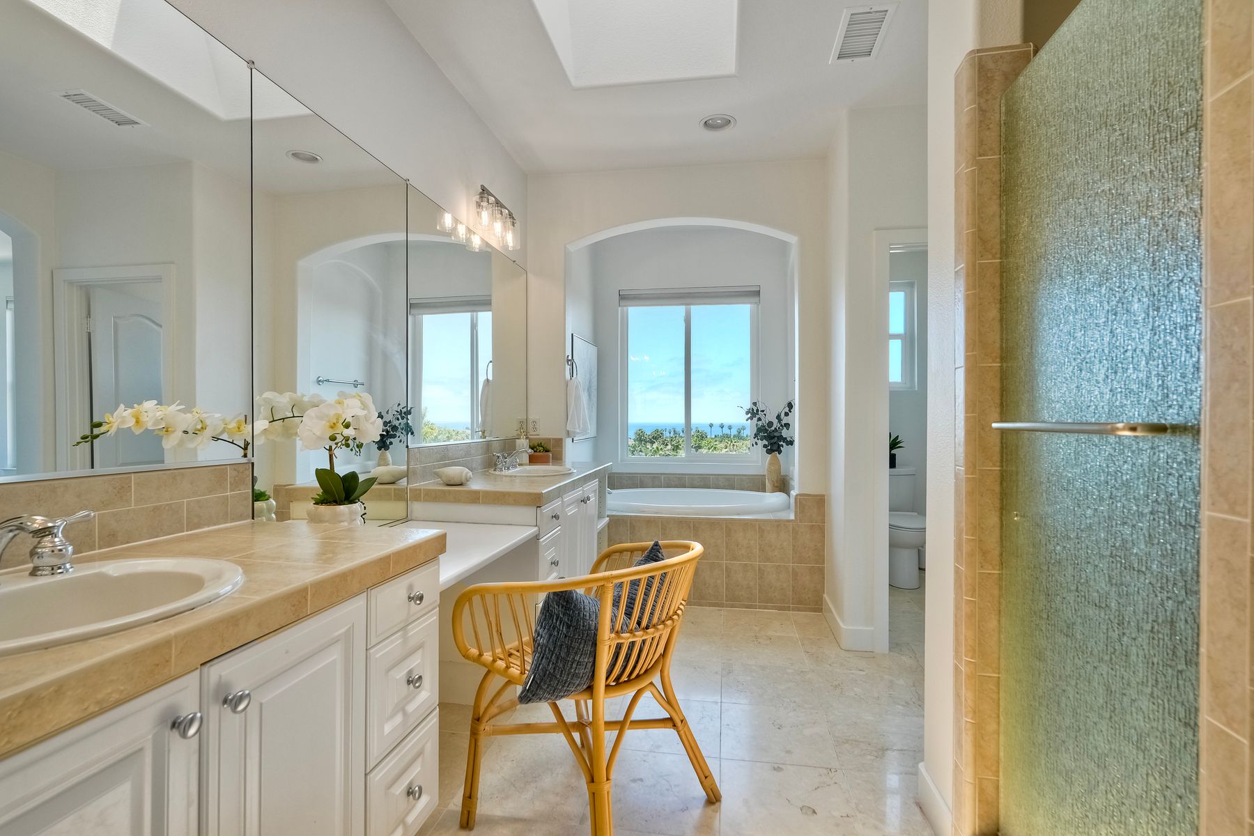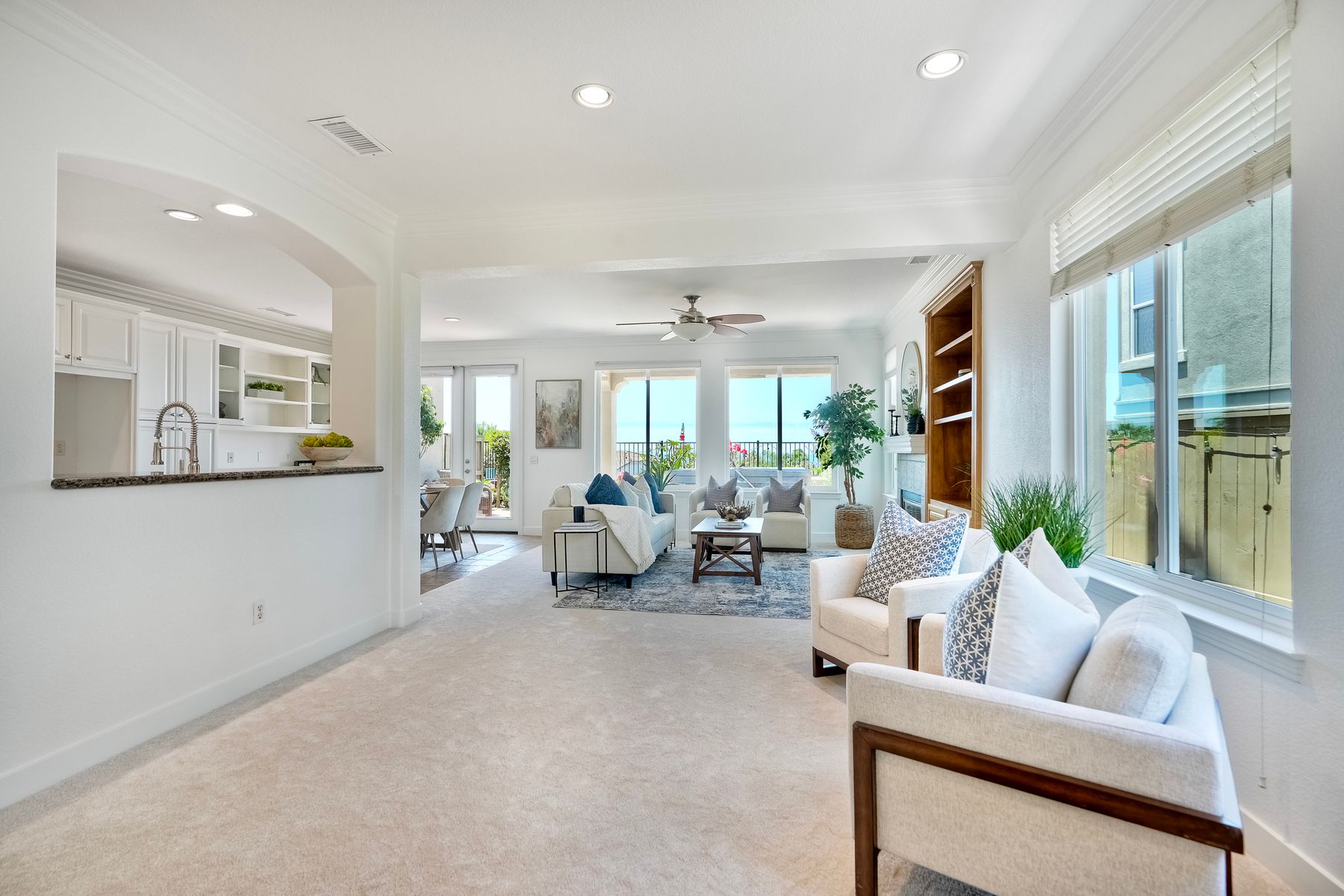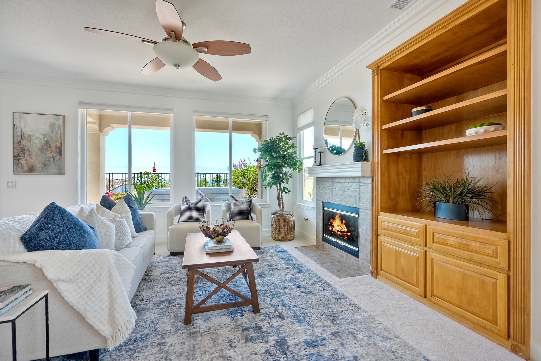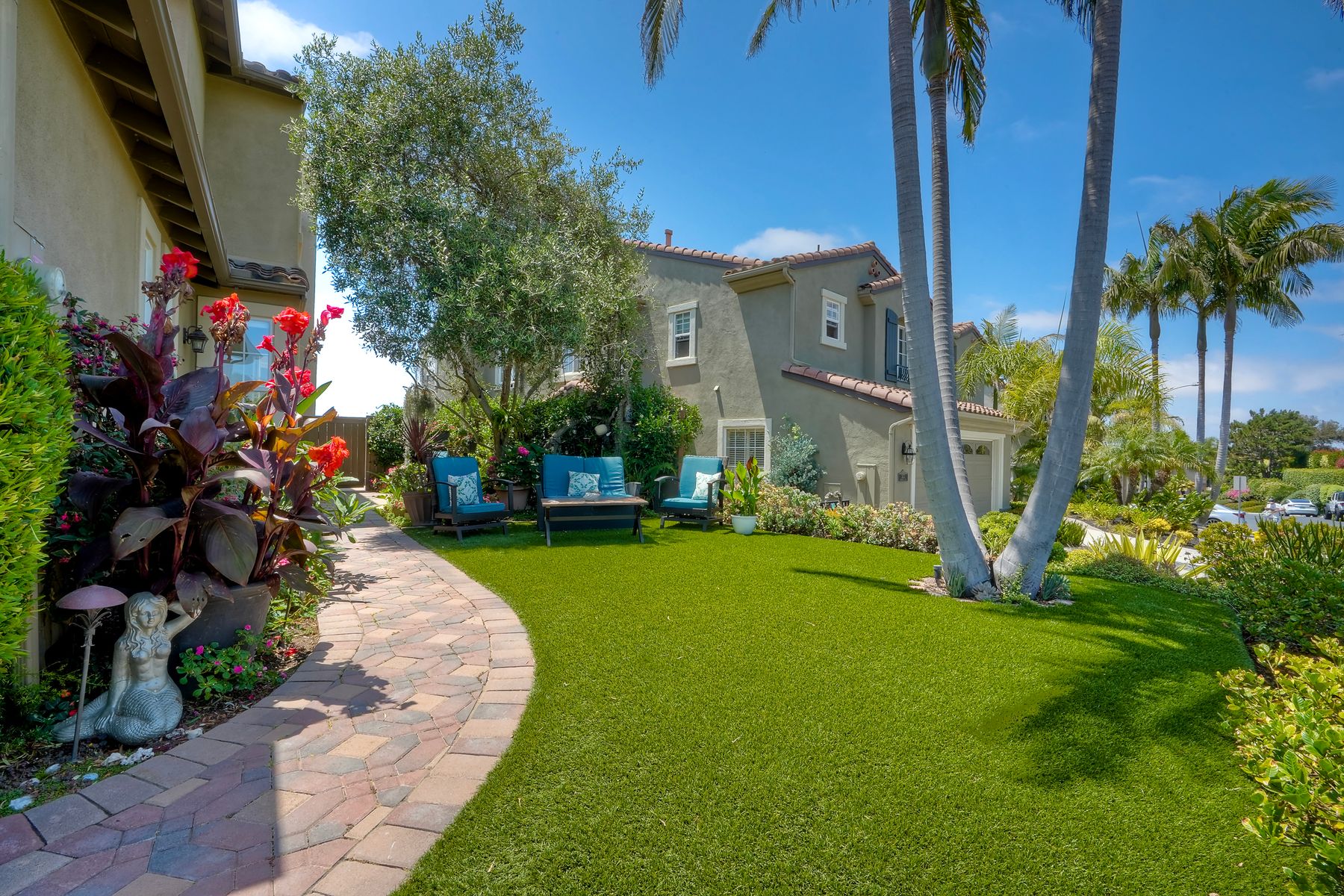 Amazing Panoramic White Water Ocean View Home! The ultimate coastal lifestyle West of I-5, Walk to The Beach! This Prestigious Ocean view beach home is situated in South Carlsbad, within San Pacifico in a private gated community called Santalina. Highly desirable and sought after Plan 2 floorplan, this home checks off all the boxes! West of 5 frwy, 2074 sqft, all 3 bedrooms are upstairs w/optional 4th (Den/Office/Bedroom) on 1st floor. The large master suite has a private balcony with stunning elevated white-water views, an oversized master bathroom with dual vanities, a jacuzzi tub and detached shower. Savor the sounds of crashing waves at night, refreshing ocean air, and amazing sunsets. Built-in tech center/desk, perfect for a home office. Shelved attic space provides valuable extra storage with easy "dropdown" ladder access. Newer AC/HVAC with filtration system, and several windows have been upgraded/replace. Relax outside and enjoy courtyard lounge space with lush landscaping & exotic plants and maintenance free grass. The hardscape boosts colorful pavers with accent landscaping lights and a relaxing therapeutic spa. Garage is equipped with 220V EV JuiceBox Pro charger, upgraded lighting and plenty of storage cabinets. Located next to beautiful walking trails along Pinto Beach. San Pacifico community offers amenities like over-sized pool/spa, tennis courts, basketball counts, volleyball court, RV parking. Walk along Batiquitos Lagoon trails to Ponto Beach for incredible sunsets, surfing, walks on the beach or enjoy concert activities at the Carlsbad Camp Store. This is a true hidden gem.