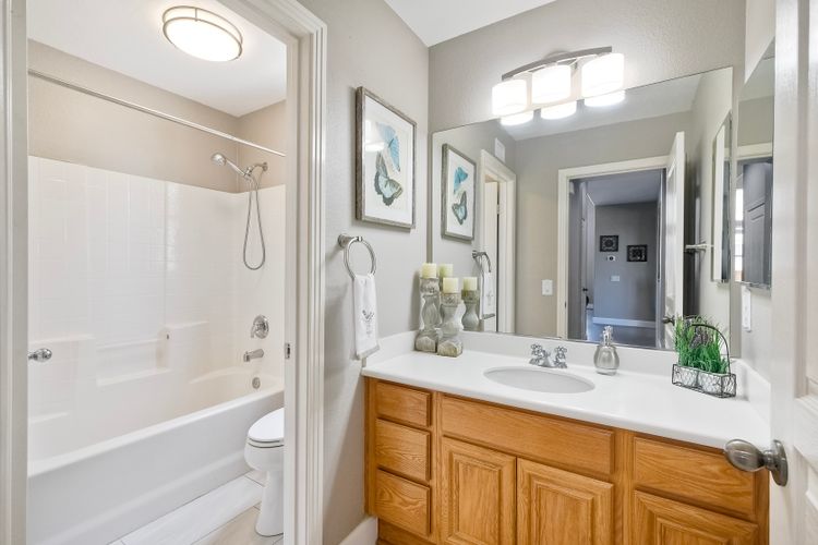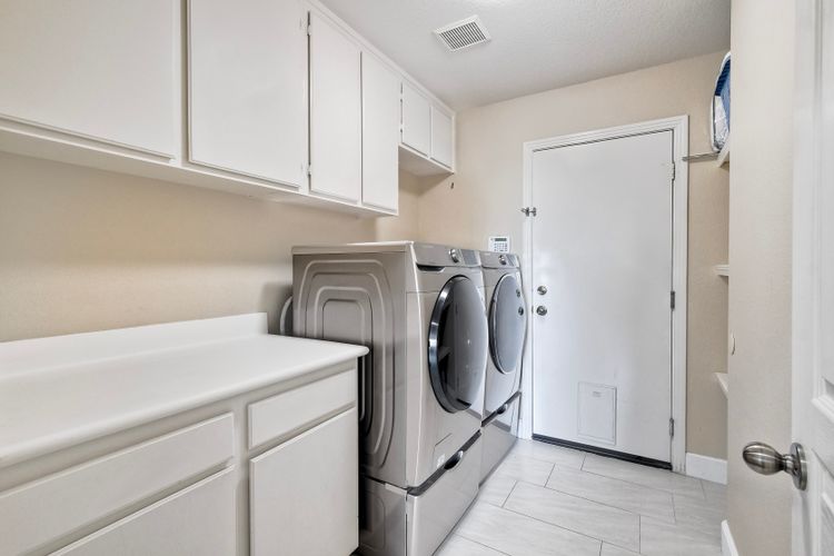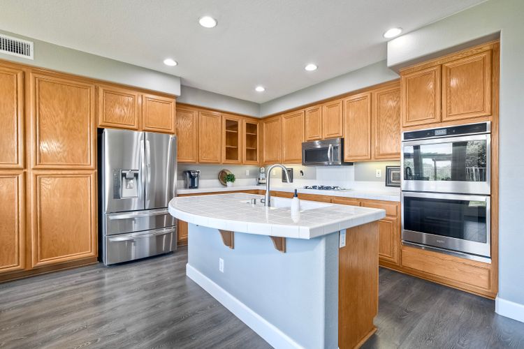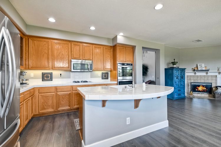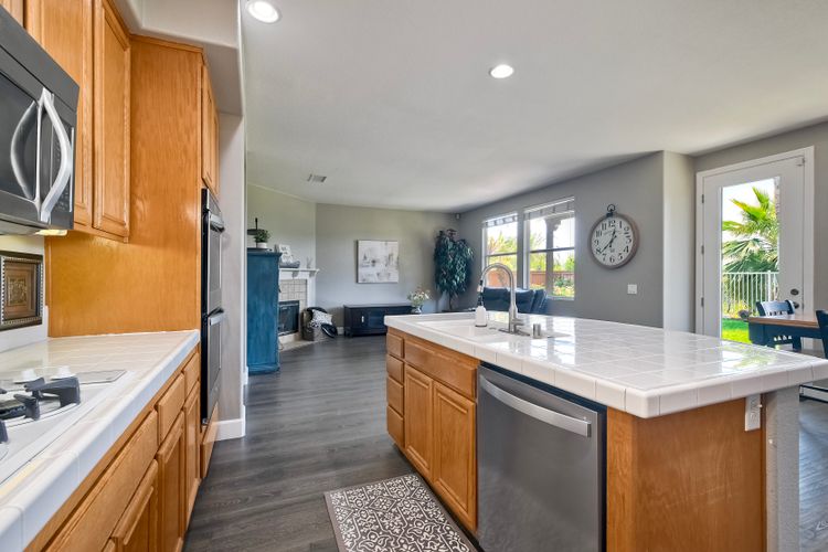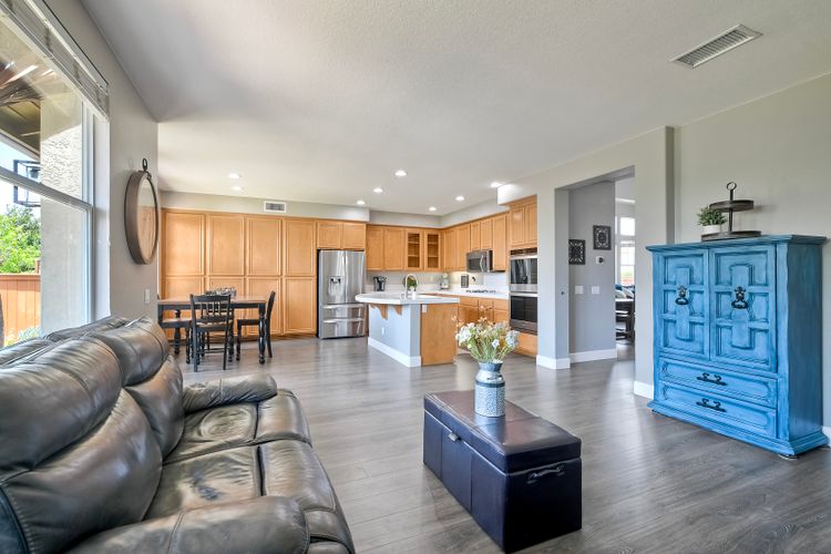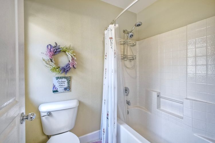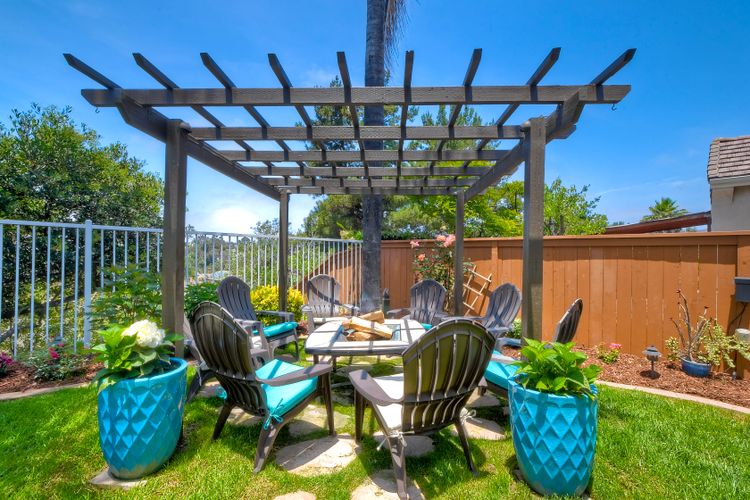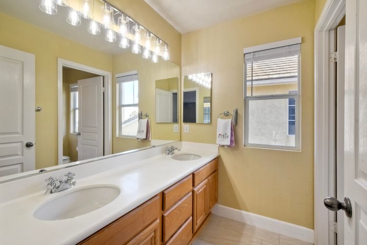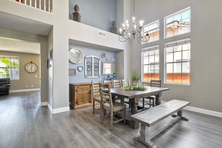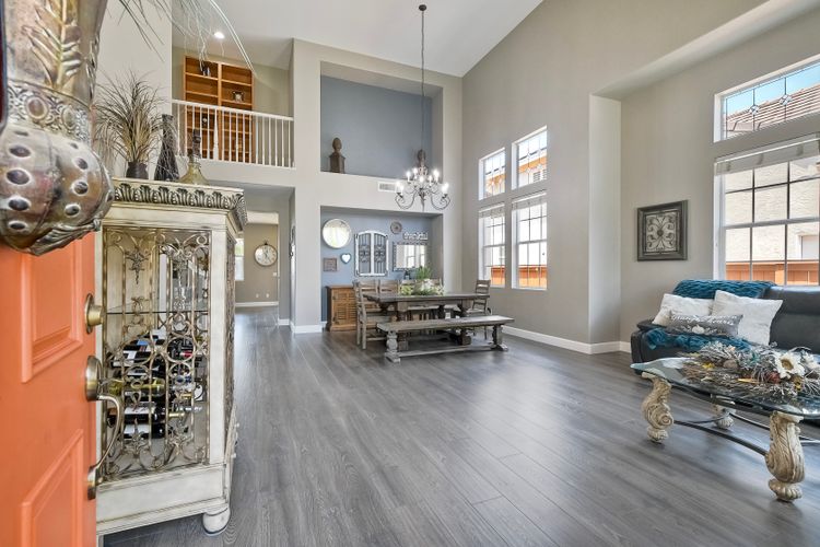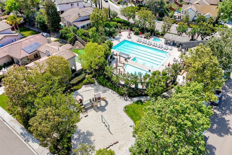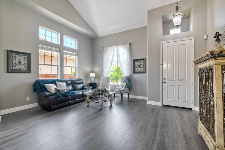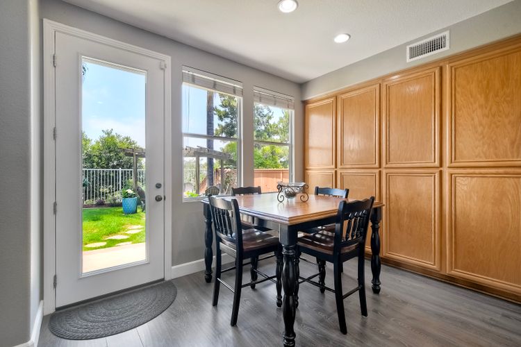 Drop-dead gorgeous Rolling Hills Ranch home with an impeccable curb appeal, an entertainer’s dream backyard, paid solar, and a desirable main-level bedroom with a full bath. This home is move-in ready and perfectly situated for your summer fun in a vibrant community. Enjoy access to multiple resort-style pools, green parks, playgrounds, and a prime location near shopping, dining, and scenic hiking and biking trails. In addition, you're just a short drive from the North Island Credit Union Amphitheatre, where the biggest names in music perform year-round. Step inside to soaring ceilings, abundant natural light, fresh interior paint, crown molding, and beautiful laminate flooring throughout (excluding bathrooms and stairs). The grand, curved staircase is a showpiece of this home, and the surrounding living room is the perfect place to entertain friends and family. The spacious kitchen is a chef’s dream. It features a center island with bar seating, a cozy breakfast nook, stainless steel appliances, and an entire wall of storage cabinets for all of your supplies, plus an open sightline to the cozy family room with fireplace. Upstairs, all bedrooms have their own private balconies, including the primary suite which offers breathtaking sunset views. Its ensuite bathroom boasts beautiful cabinetry, dual sinks, a soaking tub, and a separate walk-in shower. Enjoy San Diego’s amazing weather as you step outside to your ultra-private tropical backyard, complete with lush green trees, mature palms, grass, gazebo, and patio. No visible neighbors behind you! Offering unobstructed panoramic views and cool breezes, it's a true entertainers paradise. Updates include newer cabinetry in the primary suite, updated bathroom fixtures, newer A/C and HVAC systems, and a pressure gauge. A wired security system and home alarm with ADT provides peace of mind. Ceiling fans and A/C keep you comfortable. The spacious garage includes ceiling-mounted pulley racks to maximize your storage potential. No Mello-Roos and low HOA! Paid solar! Excellent local public schools. Make this spectacular home your San Diego oasis before it's gone!