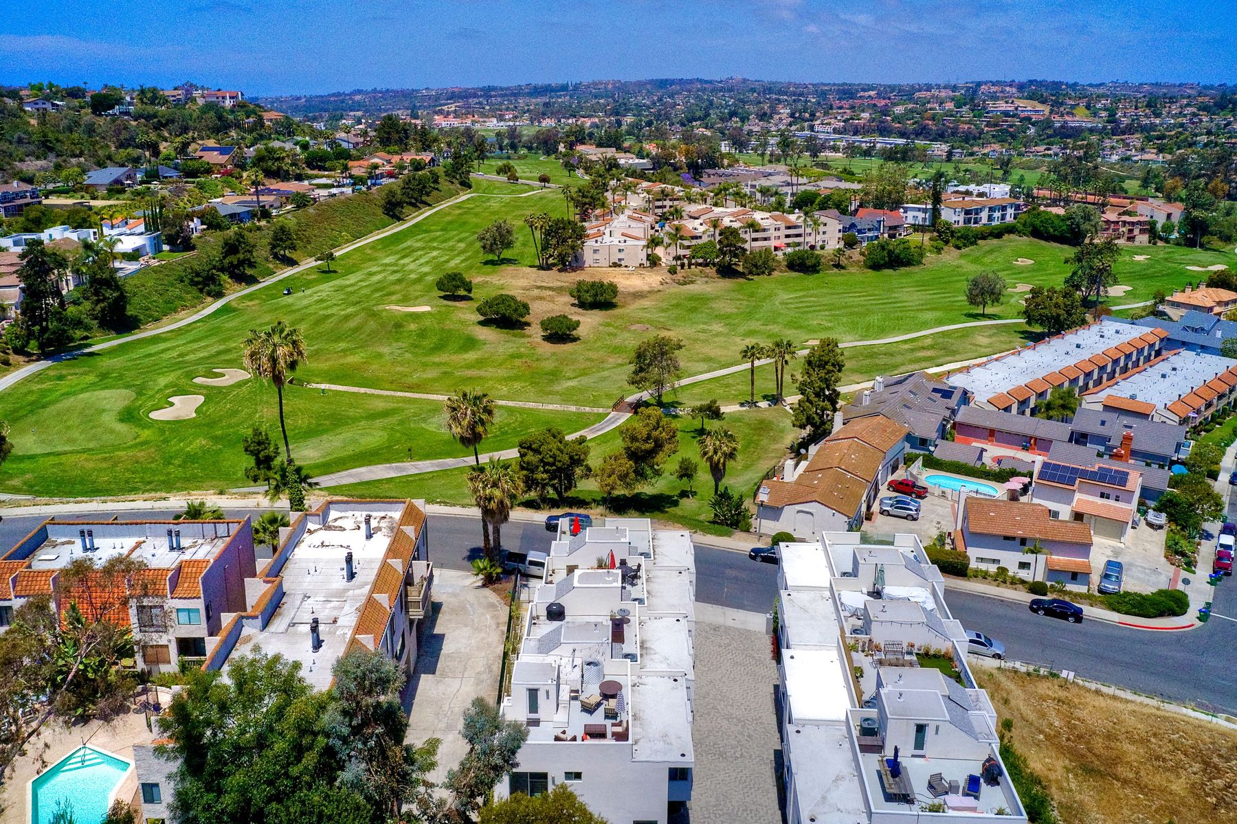 Back up offers will be considered. Welcome to Carlsbad where the sun meets the surf. Location is everything and this one is placed adjacent to the world famous La Costa golf course and resort and just minutes to the beach. On the main floor you have the kitchen and living room with oversized patio areas as this is the end unit and much more private than other units. Downstairs you have the garage and an optional 4th bedroom or office as well as a full bath. On the 2nd floor you have the 2 large guest rooms that share a full bath as well as the Master bedroom & bath. Don't forget the little slice of heaven that is the 3rd floor roof deck with amazing sunset views overlooking the 5th hole of the golf course. Don't blink, or you will miss out on this one!