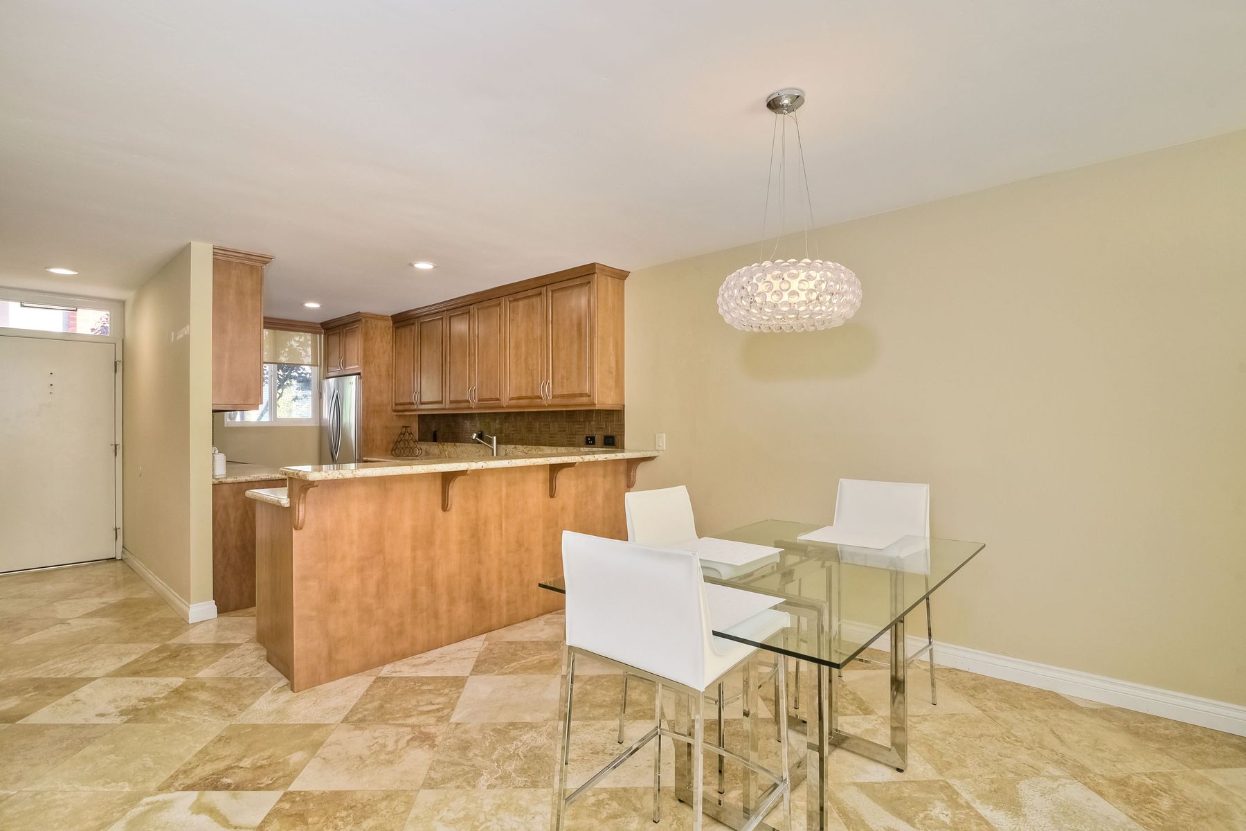 Live right in the HEART of La Jolla Village at a GREAT price! Quaint shops, nice restaurants, coffee shops and La Jolla Cove just around the corner! Completely upgraded townhome offers new windows/slider; new carpet; decorative tile throughout, updated kitchen w/ granite countertops; stainless appliances; tile flooring; new faucets & fixtures; new heating/AC units, closet organizers & more! Open floorplan w/ plenty of natural sunlight in the unit & on the private patio. Quiet complex w/only 12 units. This unit is located on the sunny side of the development with the larger patios. Last two model match closed sales in the complex were at $729,000 and $730,000. This is a great opportunity for someone who wants to live in the beautiful seaside village of La Jolla. The unit is turn key and ready to move into.