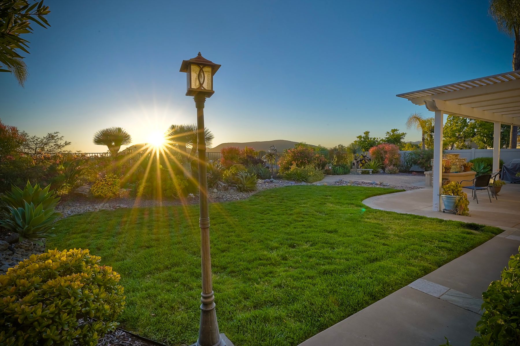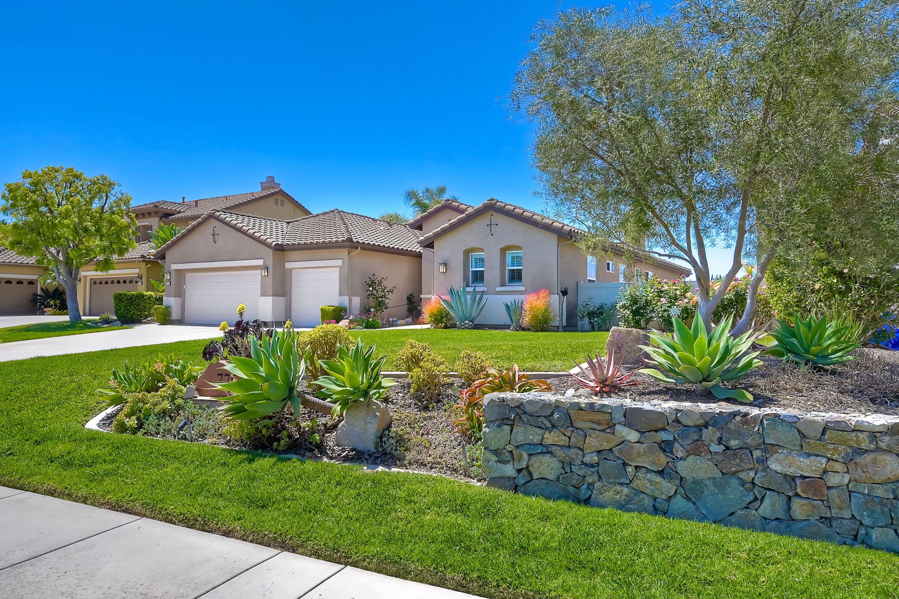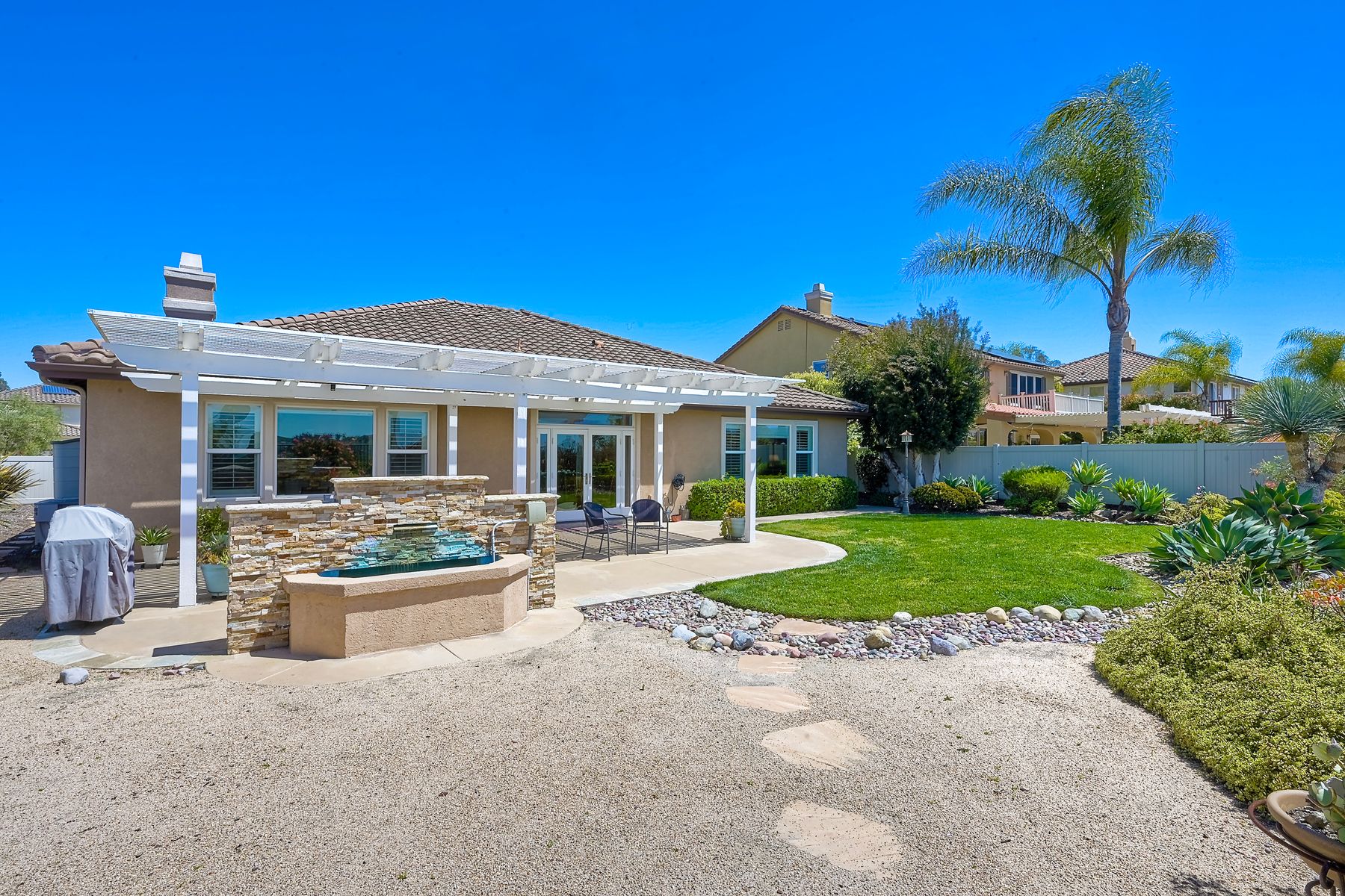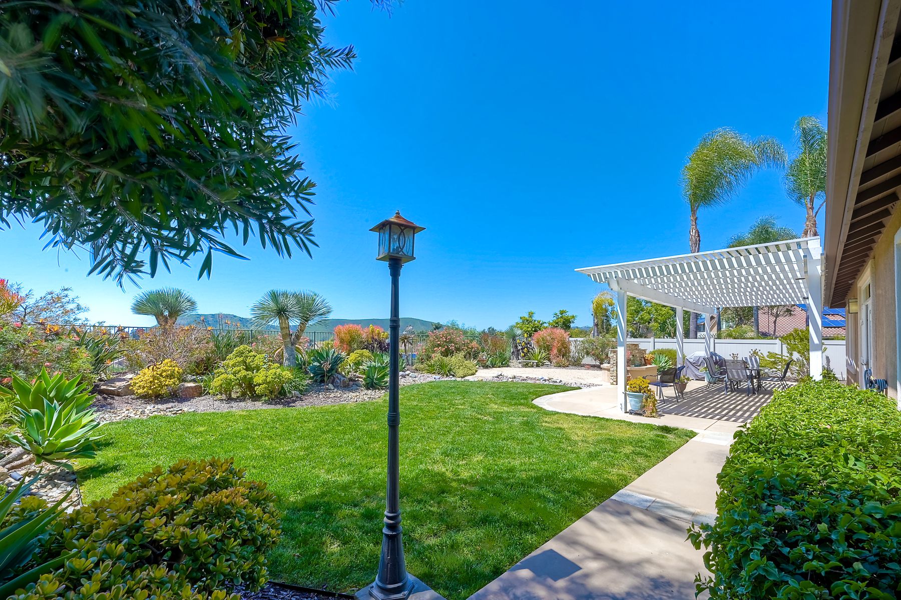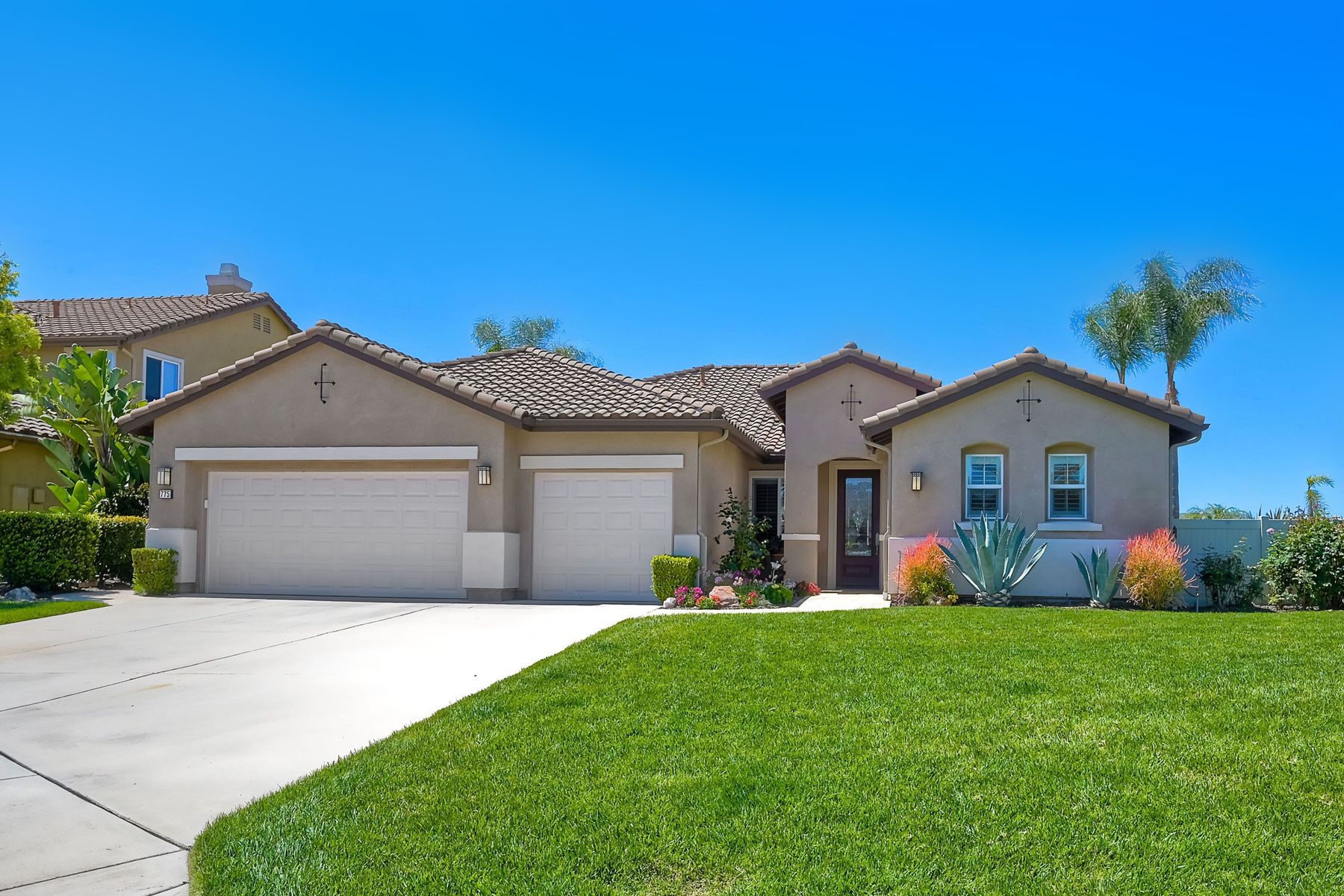 Turnkey single story Olive Hills Estates home tucked into a quiet cul-de-sac location and perched on an elevated lot with glorious West facing views. A highly desired floorplan that has only been available 5 times in the last 4 years and is sure to make someone over-the-top happy for years to come. Original homeowners worked for Standard Pacific and were given choice of lot so you KNOW it is fabulous! Over the last 5 years ~ an amazing kitchen remodel, equally awesome primary bath remodel and landscape renovations sure to please those with an appreciation for fine gardening. Kitchen: Granite counters, DuraSupreme wood cabinets, all upper end stainless steel appliances, a warming oven, walk-in pantry, pasta arm, copper tile backsplash and spice rack are just a few of the many features. Primary bath renovation with quartz counters and shower surround, an expansive walk-in shower and separate soaking tub. Primary BR also offers a customized closet that won't disappoint. Open floorplan with so many thoughtful finishes including 16" ceramic tile floors in main living areas, plantation shutters, crown molding in several rooms and spacious 3-car garage (including a safe). Olive Hills Estates is within 15 minutes of Cal State San Marcos, Palomar College, the new Kaiser Hospital and a plethora of dining opportunities that are peppered along the 78 corridor!