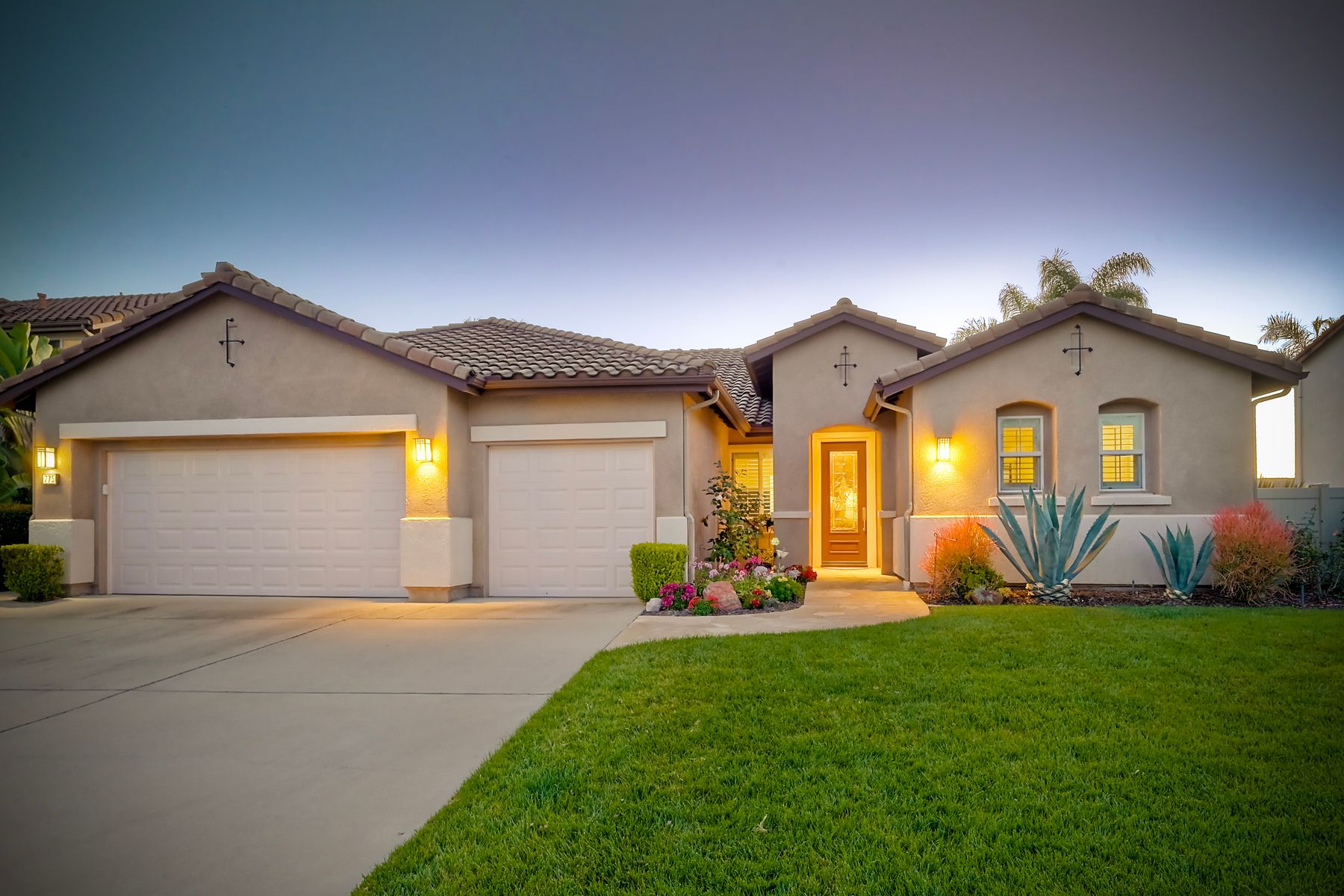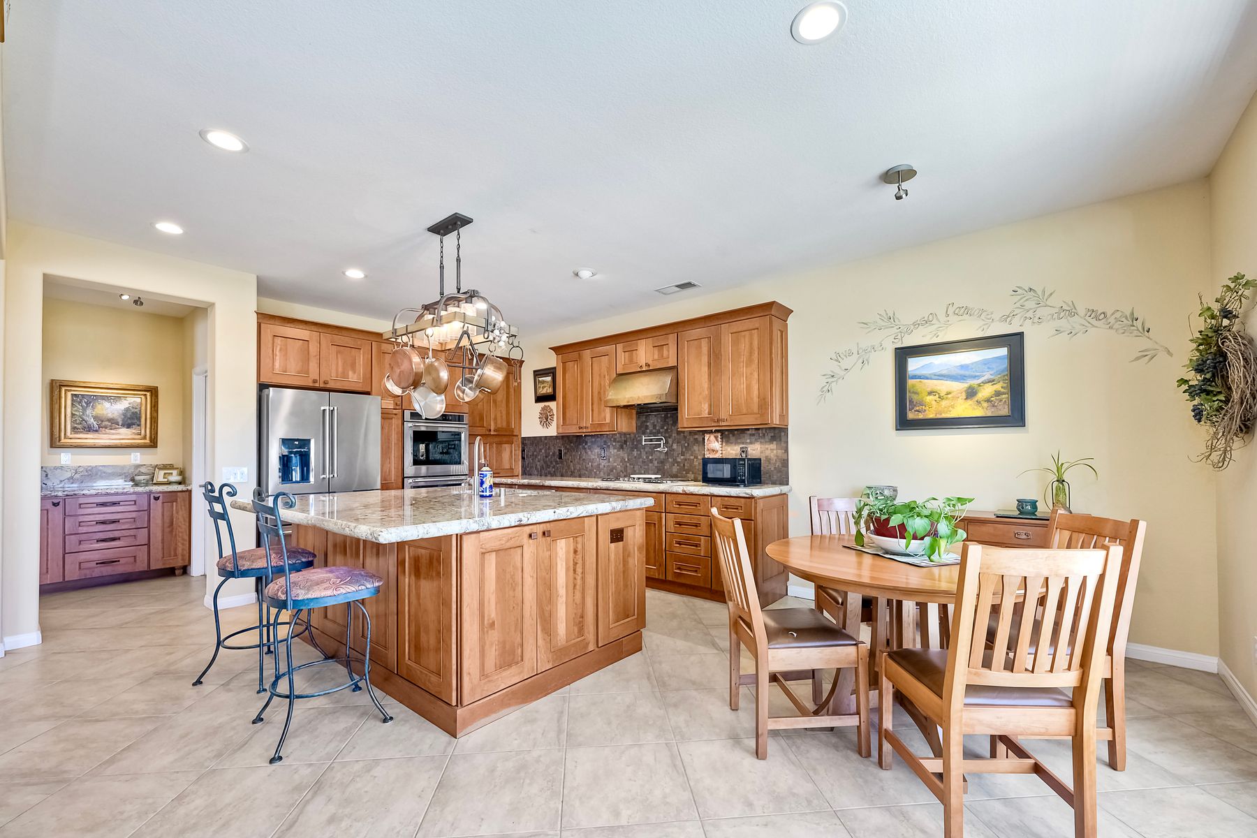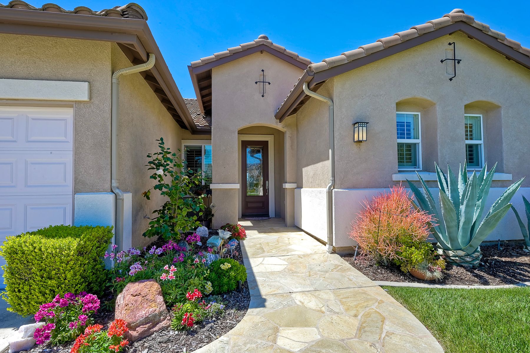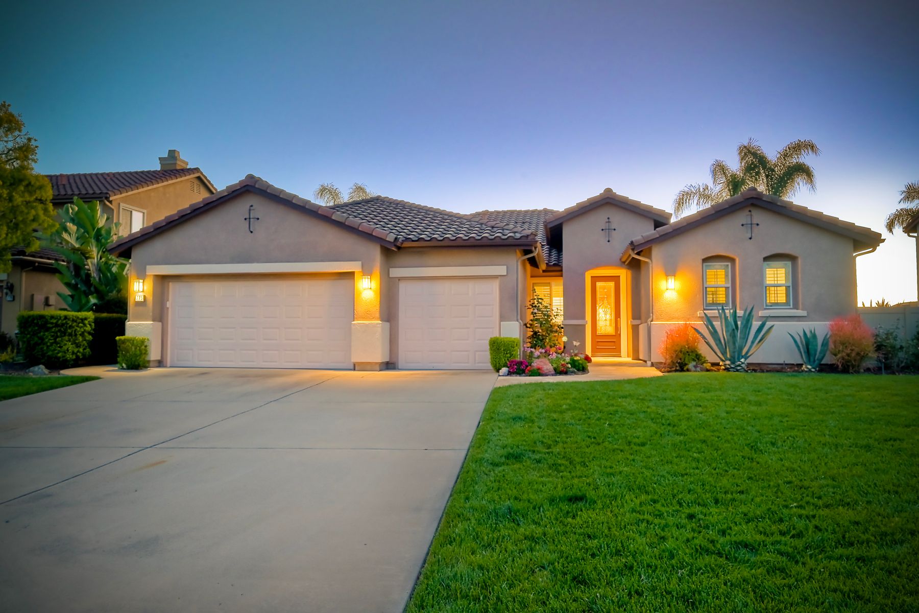 Turnkey single story Olive Hills Estates home tucked into a quiet cul-de-sac location and perched on an elevated lot with glorious West facing views. A highly desired floorplan that has only been available 5 times in the last 4 years and is sure to make someone over-the-top happy for years to come. Original homeowners worked for Standard Pacific and were given choice of lot so you KNOW it is fabulous! Over the last 5 years ~ an amazing kitchen remodel, equally awesome primary bath remodel and landscape renovations sure to please those with an appreciation for fine gardening. Kitchen: Granite counters, DuraSupreme wood cabinets, all upper end stainless steel appliances, a warming oven, walk-in pantry, pasta arm, copper tile backsplash and spice rack are just a few of the many features. Primary bath renovation with quartz counters and shower surround, an expansive walk-in shower and separate soaking tub. Primary BR also offers a customized closet that won't disappoint. Open floorplan with so many thoughtful finishes including 16" ceramic tile floors in main living areas, plantation shutters, crown molding in several rooms and spacious 3-car garage (including a safe). Olive Hills Estates is within 15 minutes of Cal State San Marcos, Palomar College, the new Kaiser Hospital and a plethora of dining opportunities that are peppered along the 78 corridor!