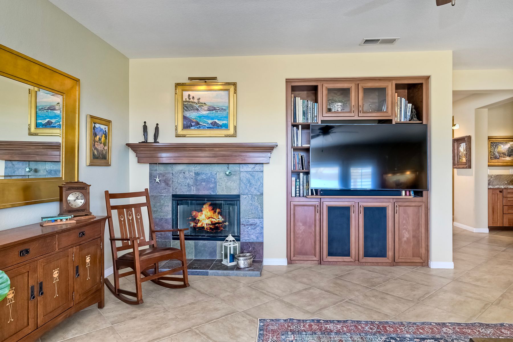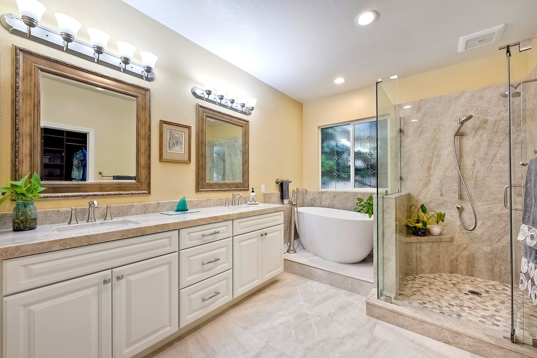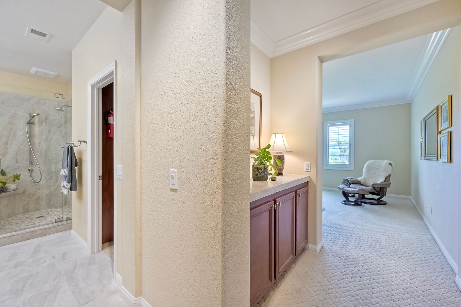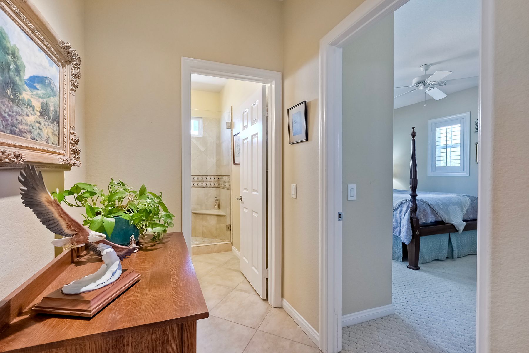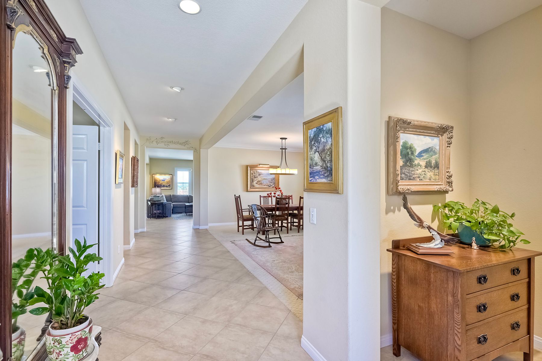 Turnkey single story Olive Hills Estates home tucked into a quiet cul-de-sac location and perched on an elevated lot with glorious West facing views. A highly desired floorplan that has only been available 5 times in the last 4 years and is sure to make someone over-the-top happy for years to come. Original homeowners worked for Standard Pacific and were given choice of lot so you KNOW it is fabulous! Over the last 5 years ~ an amazing kitchen remodel, equally awesome primary bath remodel and landscape renovations sure to please those with an appreciation for fine gardening. Kitchen: Granite counters, DuraSupreme wood cabinets, all upper end stainless steel appliances, a warming oven, walk-in pantry, pasta arm, copper tile backsplash and spice rack are just a few of the many features. Primary bath renovation with quartz counters and shower surround, an expansive walk-in shower and separate soaking tub. Primary BR also offers a customized closet that won't disappoint. Open floorplan with so many thoughtful finishes including 16" ceramic tile floors in main living areas, plantation shutters, crown molding in several rooms and spacious 3-car garage (including a safe). Olive Hills Estates is within 15 minutes of Cal State San Marcos, Palomar College, the new Kaiser Hospital and a plethora of dining opportunities that are peppered along the 78 corridor!