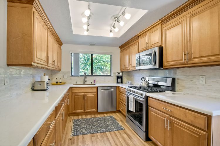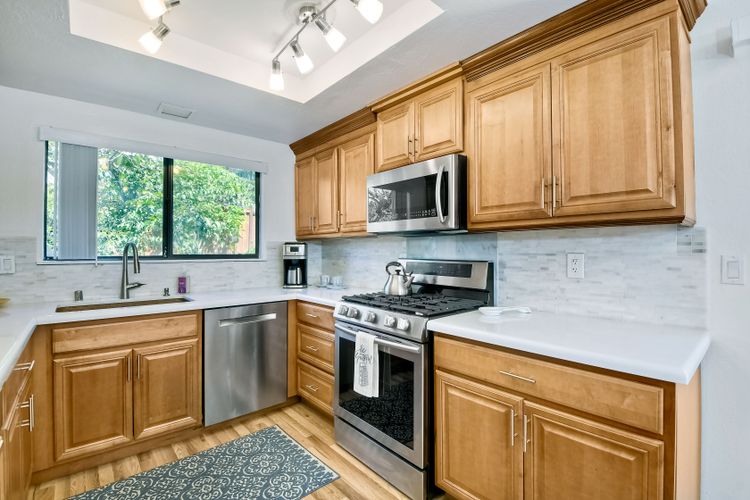 Super clean & updated 1 Sty home you all have been waiting for is here... You won't be disappointed.Over 7000 sq. ft. lot with tons of fruit trees.. Vaulted ceilings in living room.Light,Bright and open kitchen has beautiful cabinets,counter tops/backsplash.Cute Side bar in Kitchen,great SS appliances too.Master Bedroom has Barn door to master bath with amazing walk in shower, double sinks and good size walk in closet off of bathroom. Close to everything. Discovery Lake and school, shopping, restaurants.