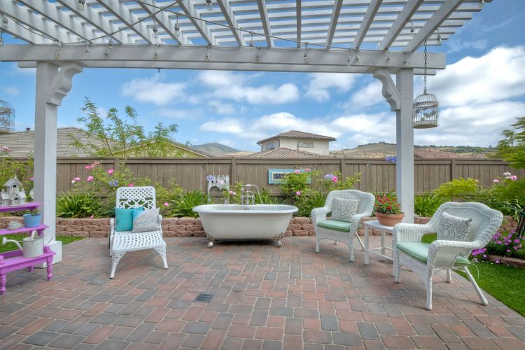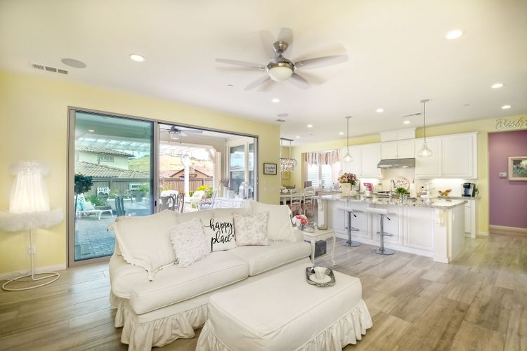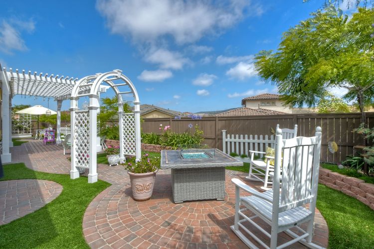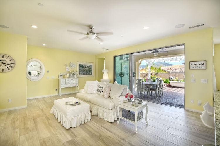 Single-level Villa in the 55+ gated Auberge Community! Premium lot! Enjoy the dream Great Room Lifestyle! Gourmet KitchenAid appliances, dramatic island, roll-out drawers, shutters, tile floors, special lighting & decor! Stacking glass doors extend the living space to your outdoor room and a vibrant garden! Two master suites + den & half bath! Custom paint throughout (Seller offering $1500 credit to buyer to select your paint colors). Paid Solar! Tankless water heater, Security System, AC, Ceiling Fans! Del Sur is a lifestyle! Gated Auberge residents have their own amenities with the "Club" offering resort-like pool and spa, Clubhouse with library and Gathering and meeting rooms plus kitchen, three pickle ball courts, fitness center, Bocce Ball courts, Dog Parks, and a variety of clubs and organized activities. Auberge residents also enjoy the amenities of Del Sur which offers 12 Parks, 18 miles of hiking trails, a rec center, 11 solar heated pools throughout the community and the "Ranch House" a center for many activities throughout the year!. Neighborhoods: Del Sur Equipment: Garage Door Opener Other Fees: 0 Sewer: Sewer Connected Topography: LL